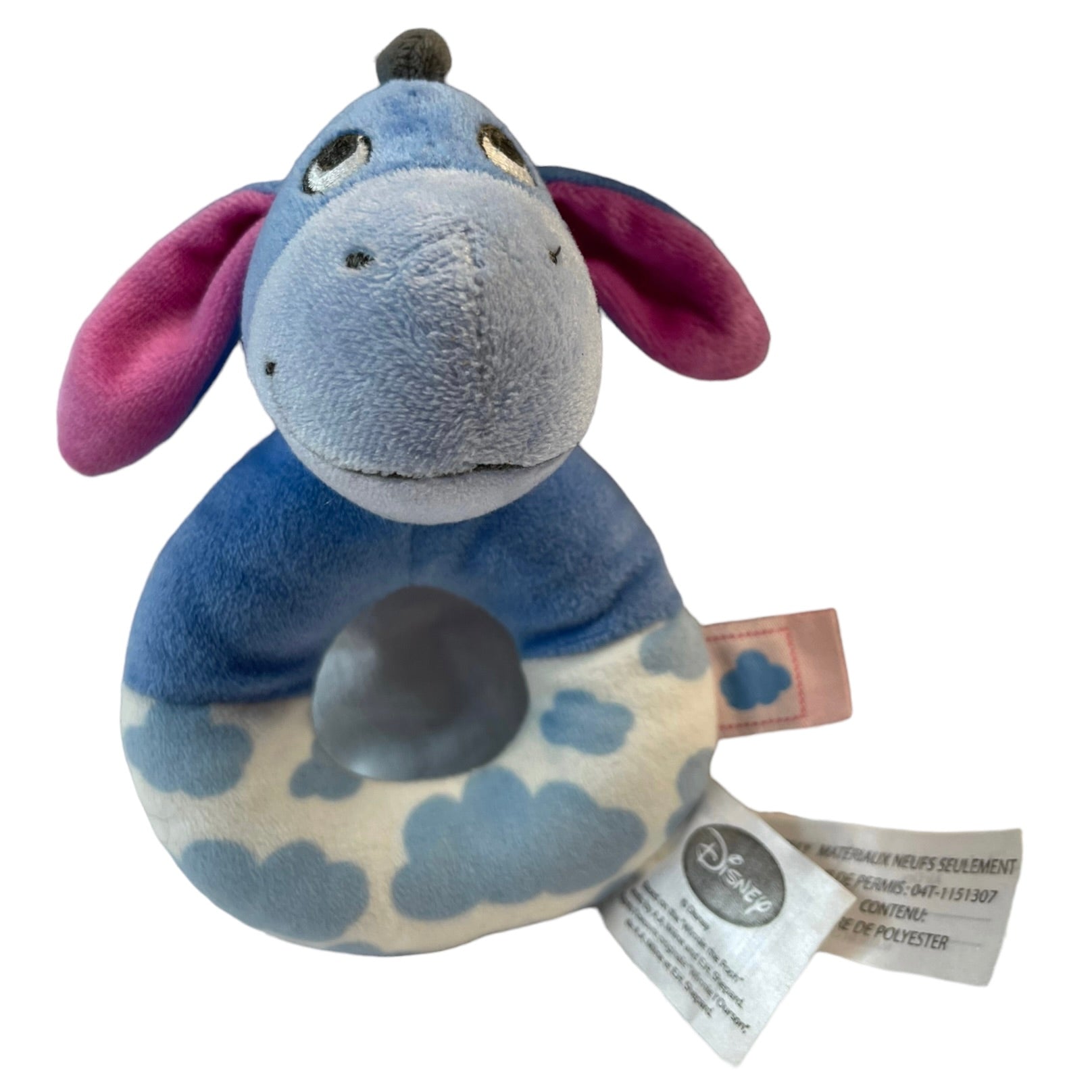Disney Eeyore Plush Ring Rattle with Embroidered Face Bright Pink Ears