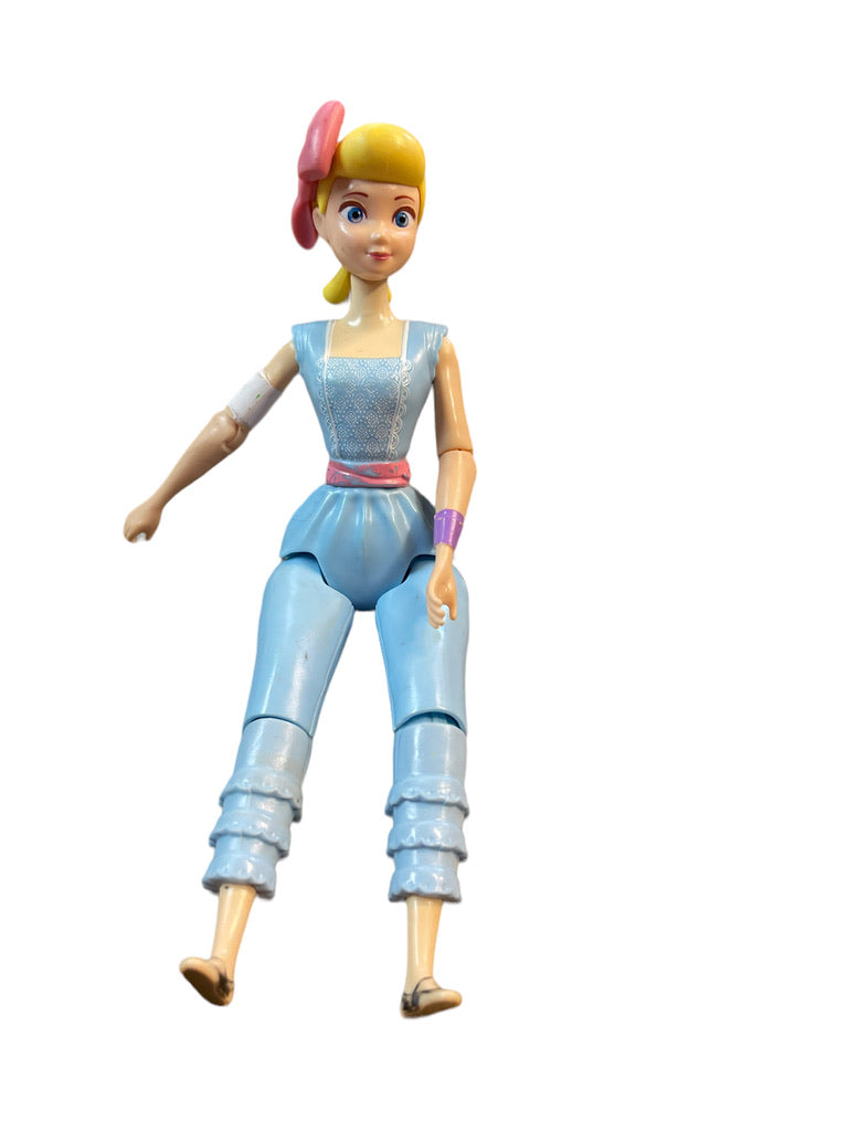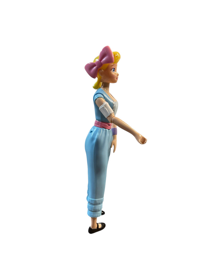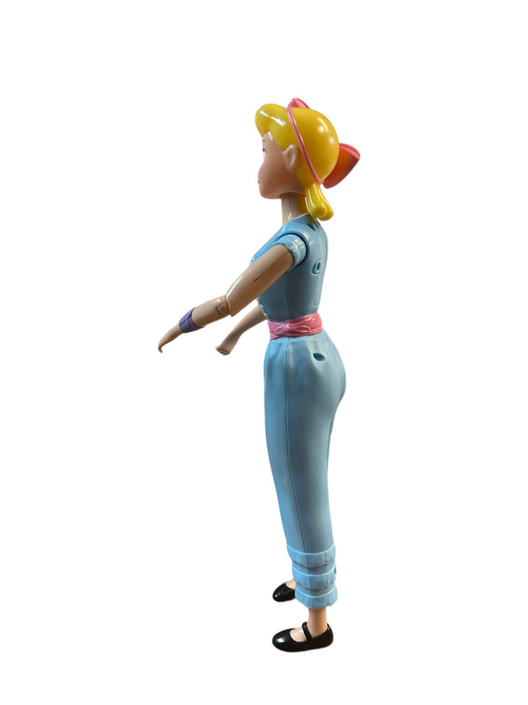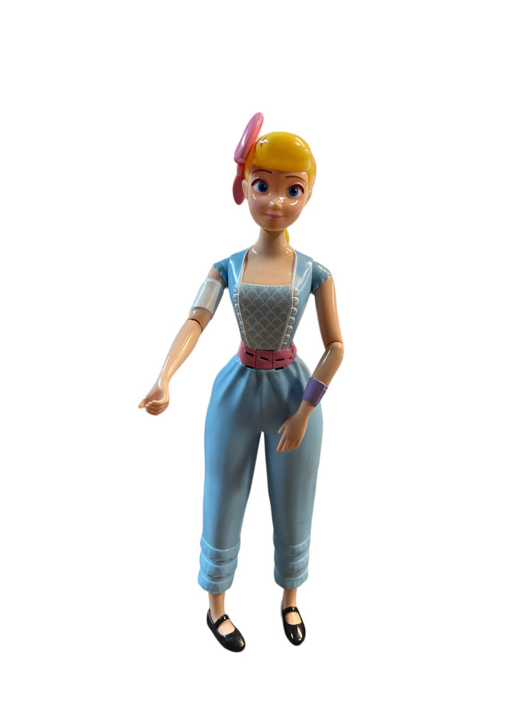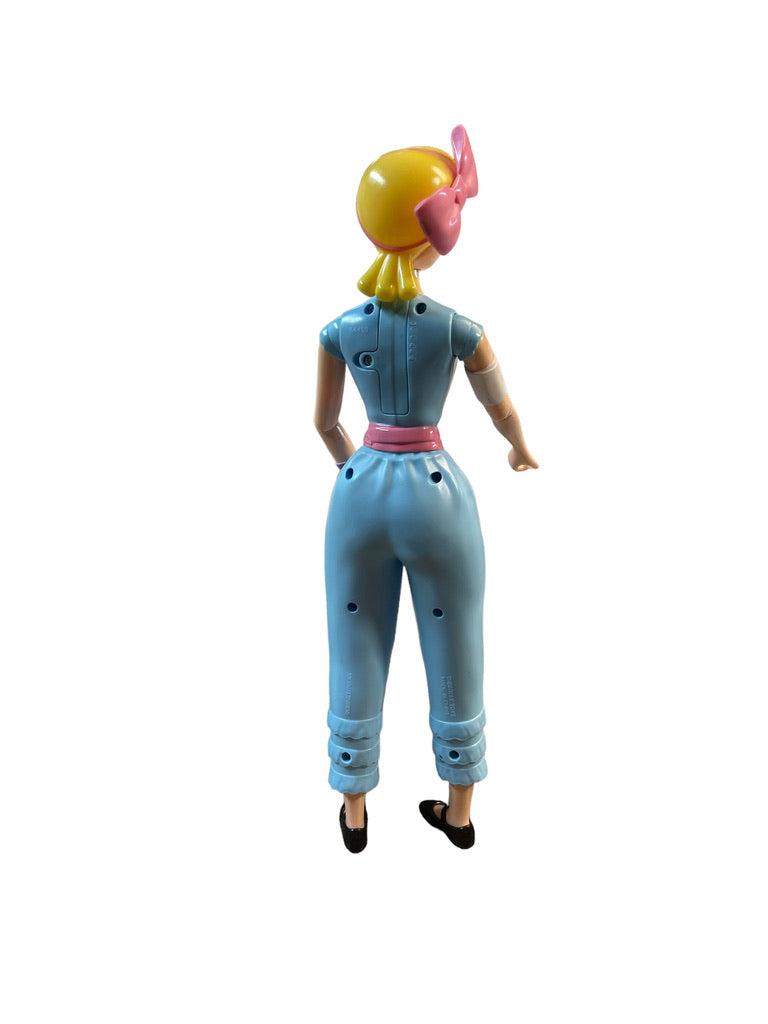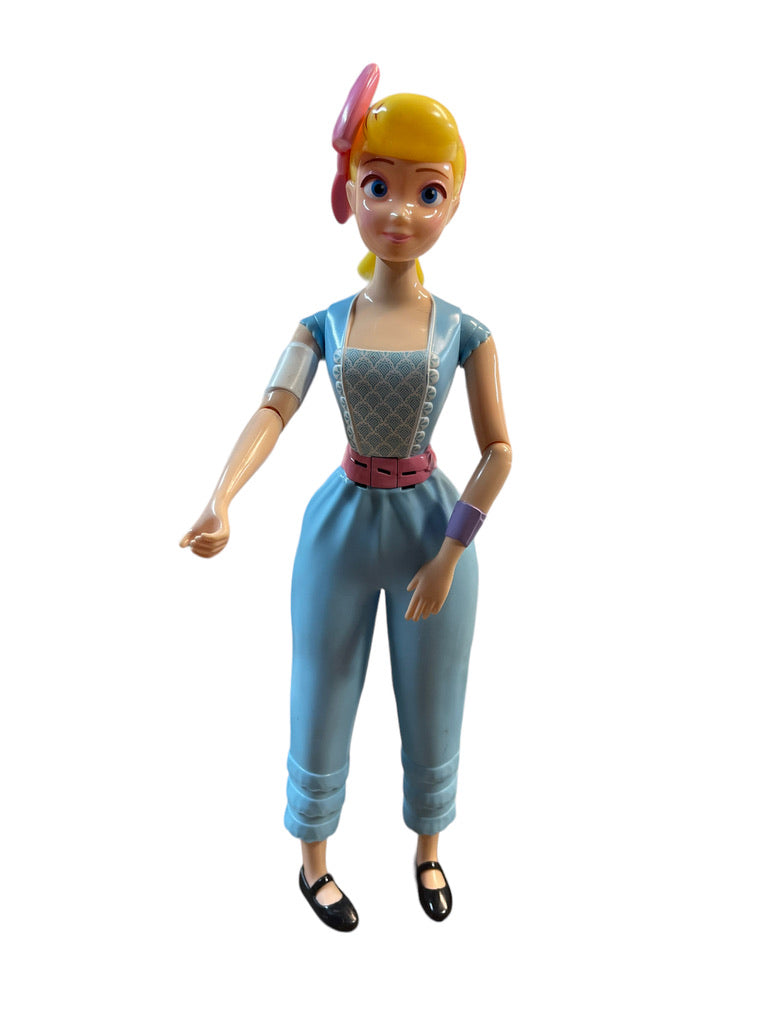 Beautiful Preloved Toy Story 17" Talking Bo Peep, in pretty blue jumpsuit, black shoes, blond hair, and a big pink bow! Just press her pink belt and she says a variety of phrases. Very Cute! In excellent, preowned condition.