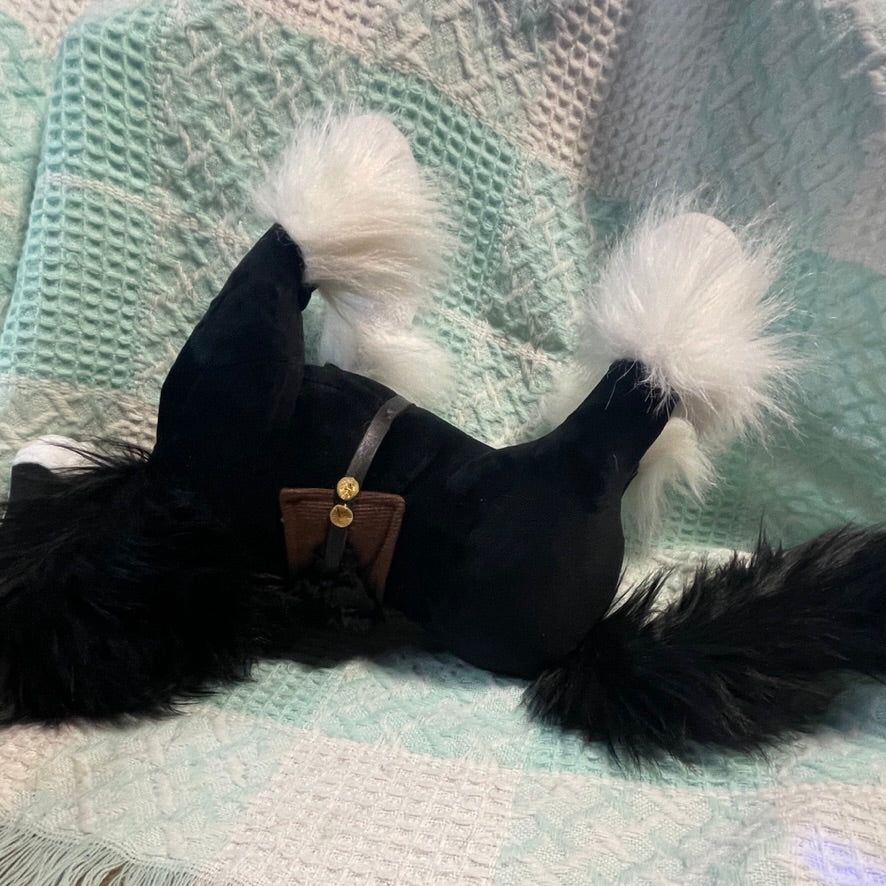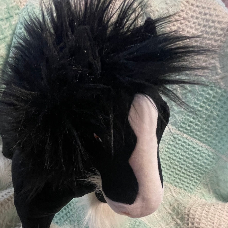 Gorgeous Blqck & White Clydesdale Horse from the movie, 'Brave'. Luxurious black mane and tail and fluffy white feet. This big boy is 17" from nose to tail and 15" tall. A really lovely Authentic Disney Store Original. Great preowned condition.