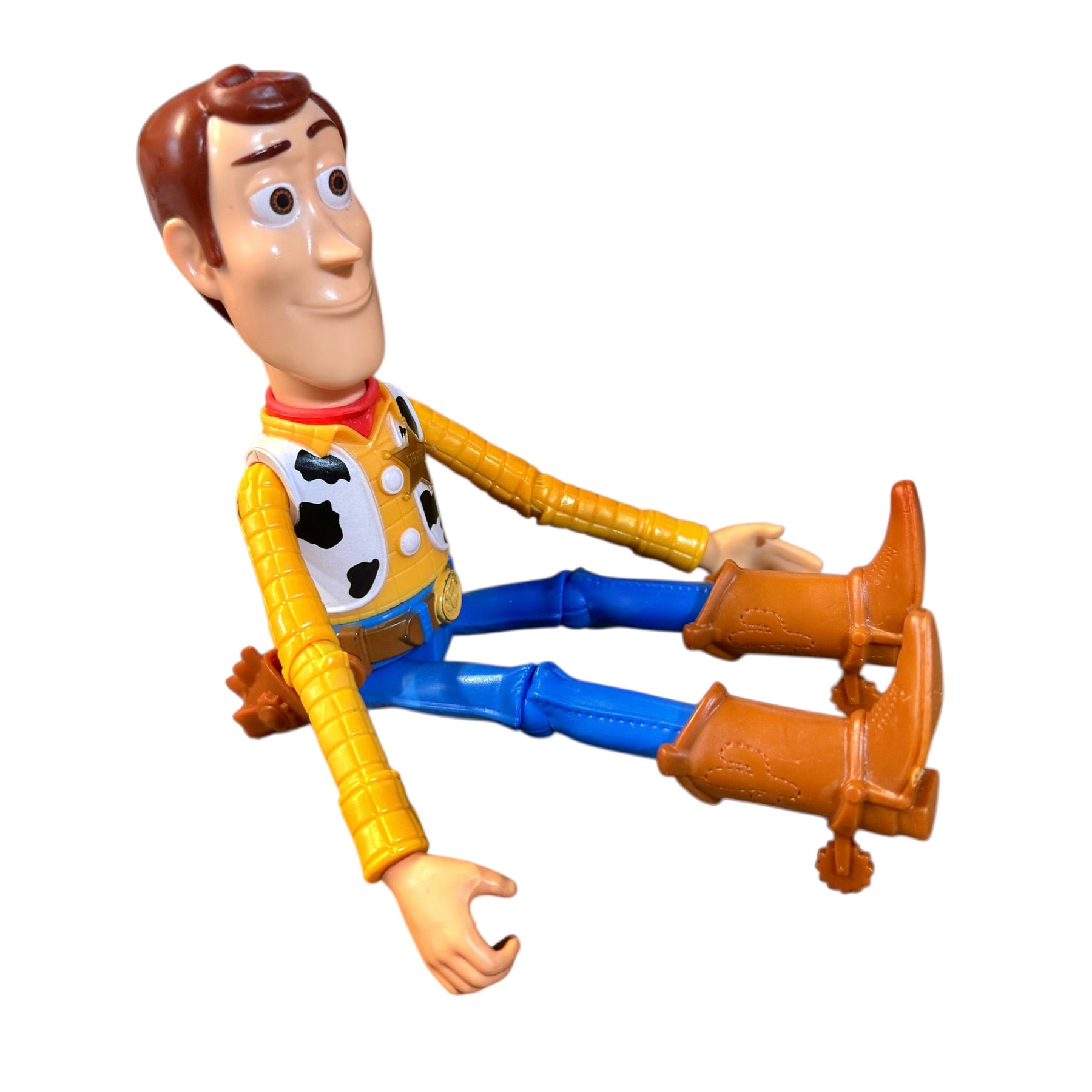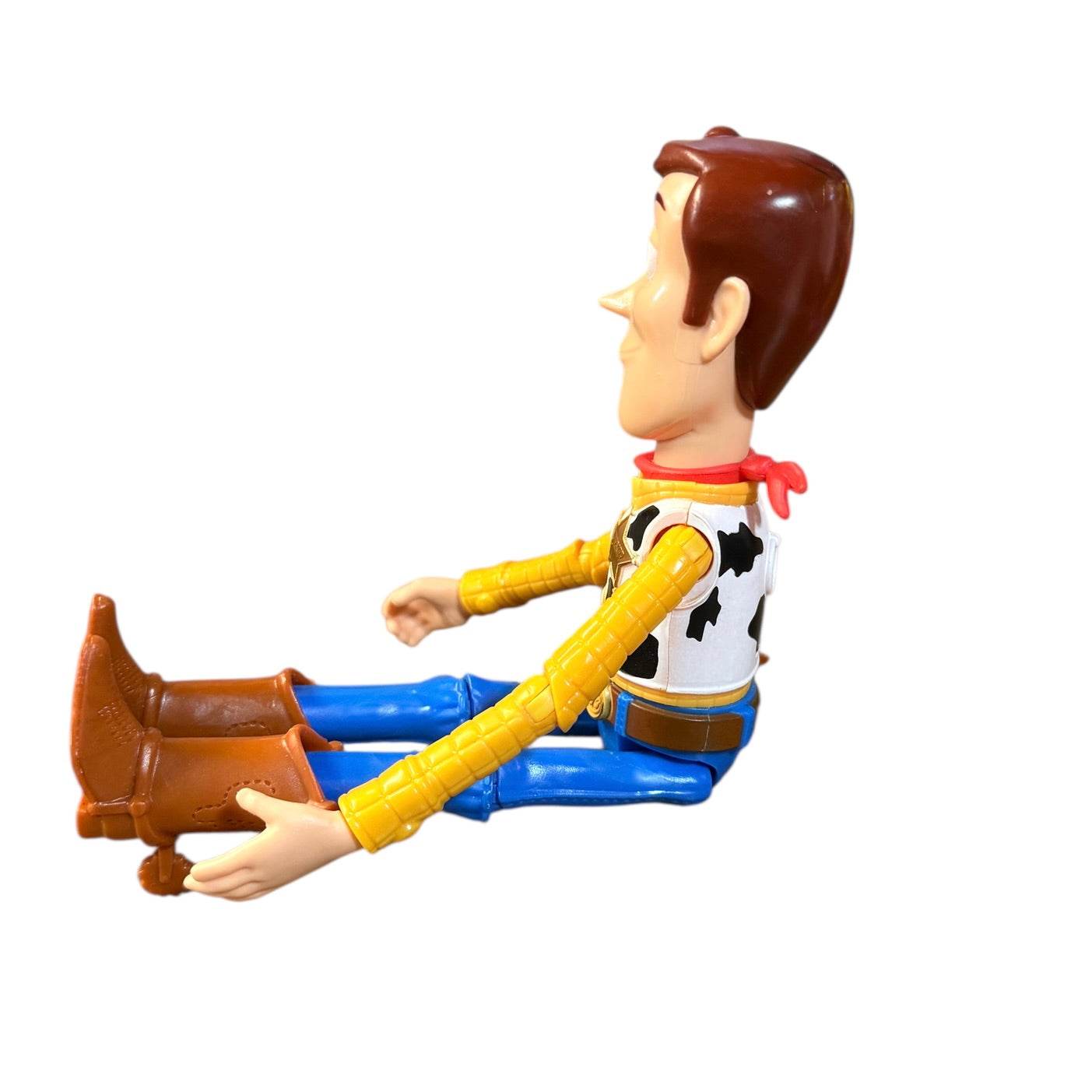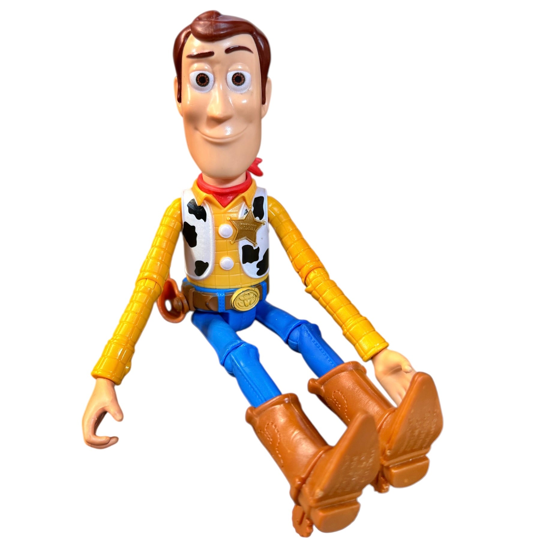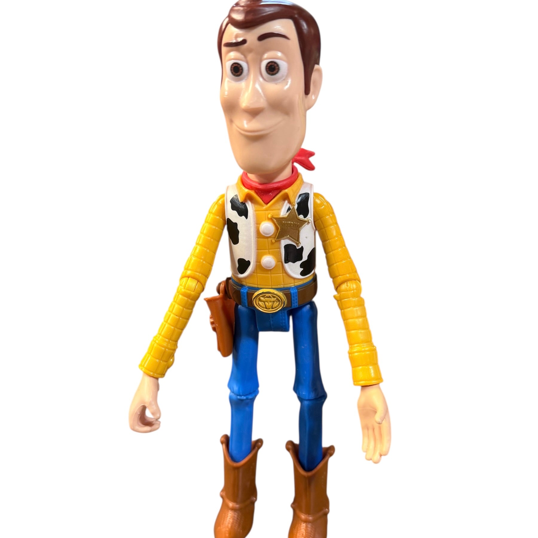 Sheriff Woody 9" toy action figure in good preowned condition. Complete with bandana, holster, and boots. Missing hat