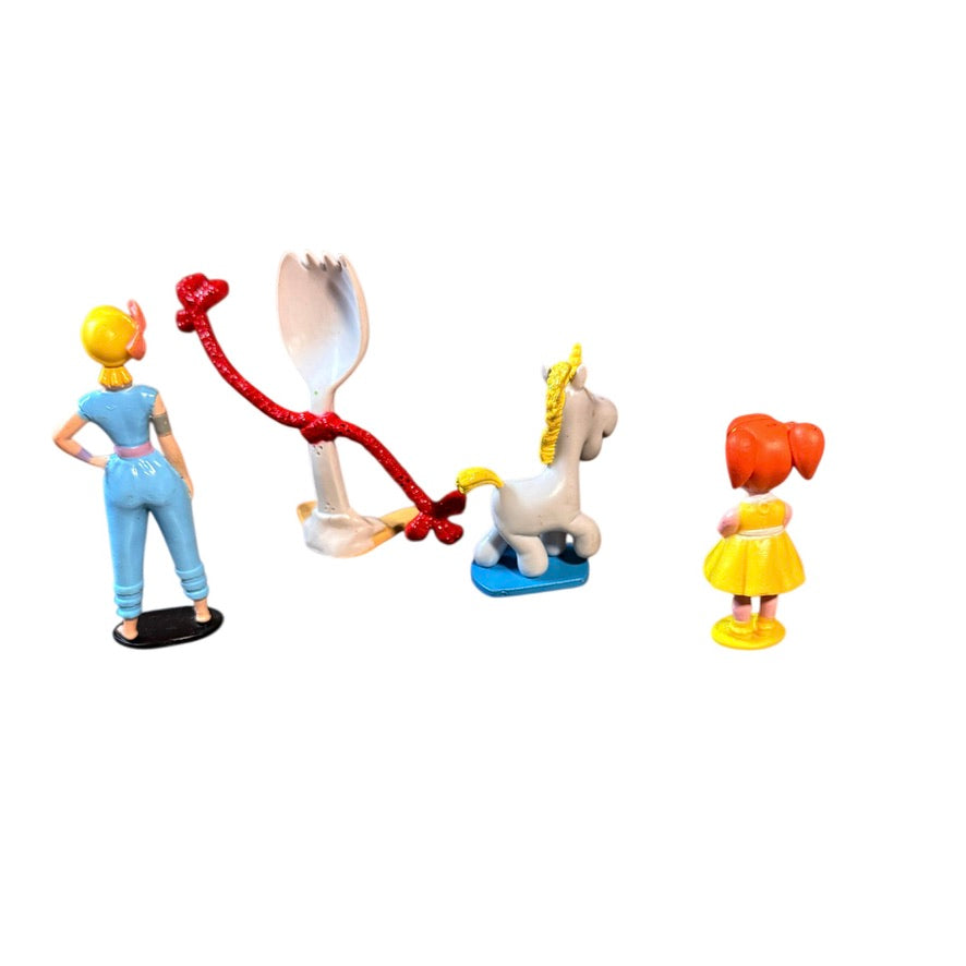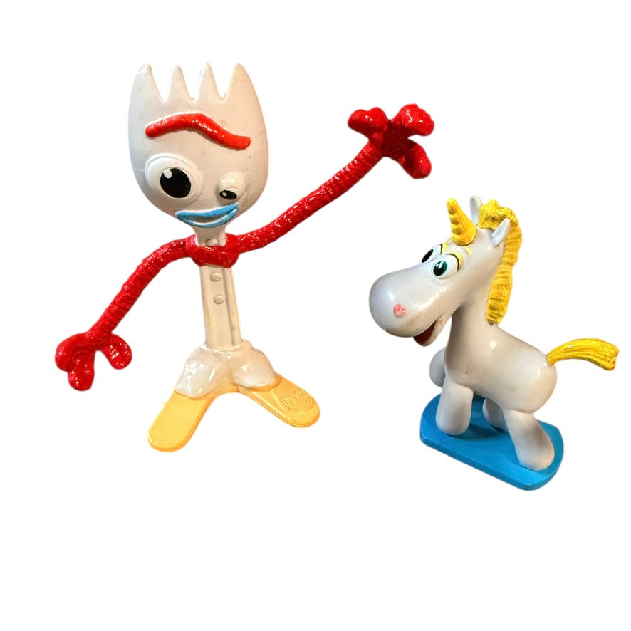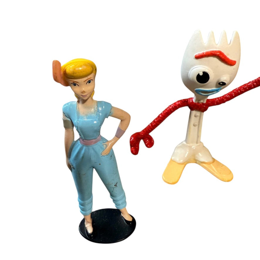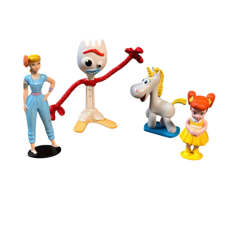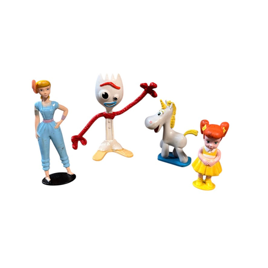 Forky, Little Bo Peep, both 4" figures, and Gabby Gabby and Buttercup each 3" figures all in good preowned condition. A fun mixed lot for your play room, birthday cake or collection!