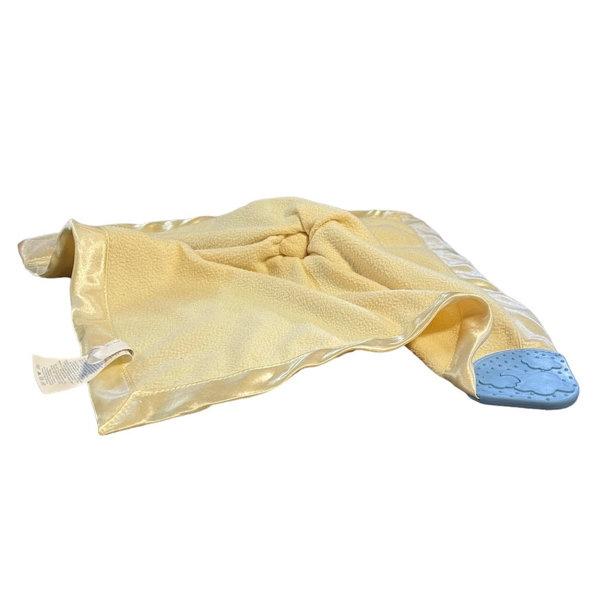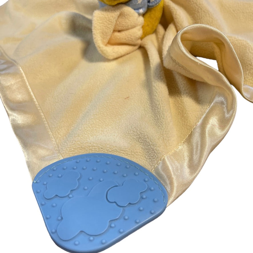 Disney Winnie the Pooh Security Lovey Blanket Yellow Satin Edged with Blue Teether