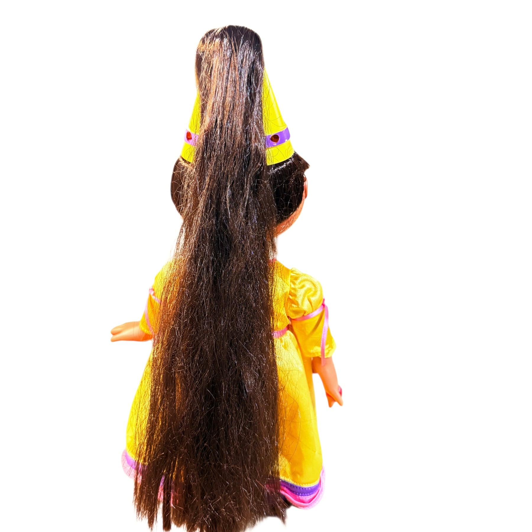 Vintage Hair Fisher-Price Magic Hair Dora Doll Yellow Princess Gown & Hat with Large Pink Jewel
