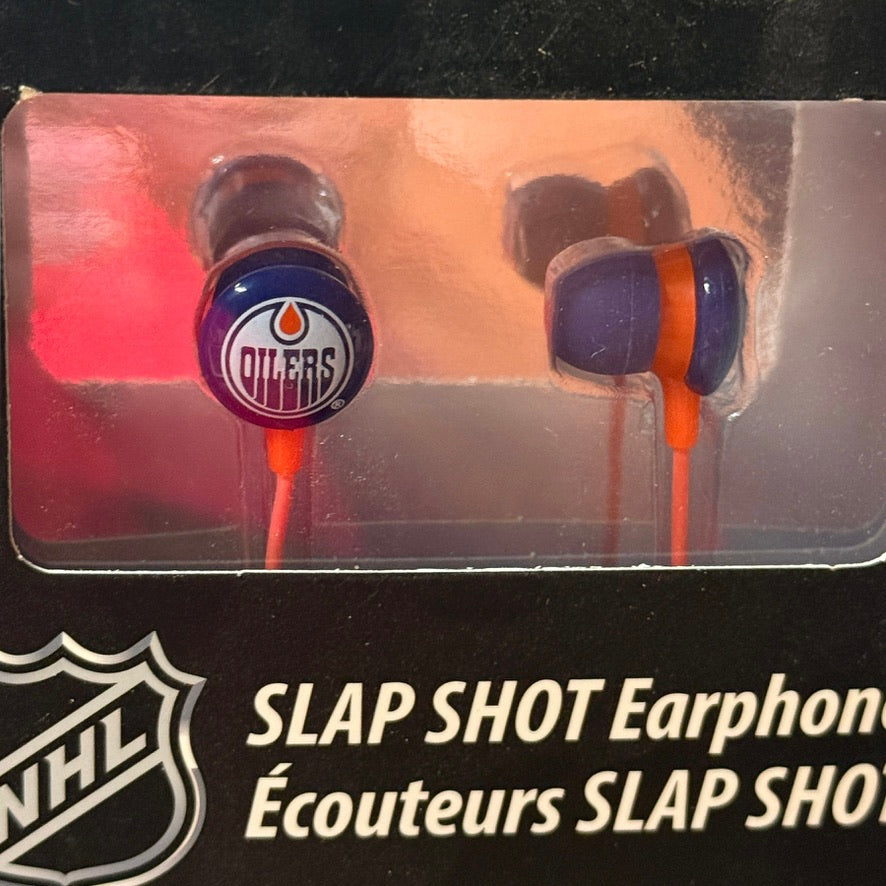 Classic Oiler Slap Shop NHL Earphones. Preowned but unused in the box