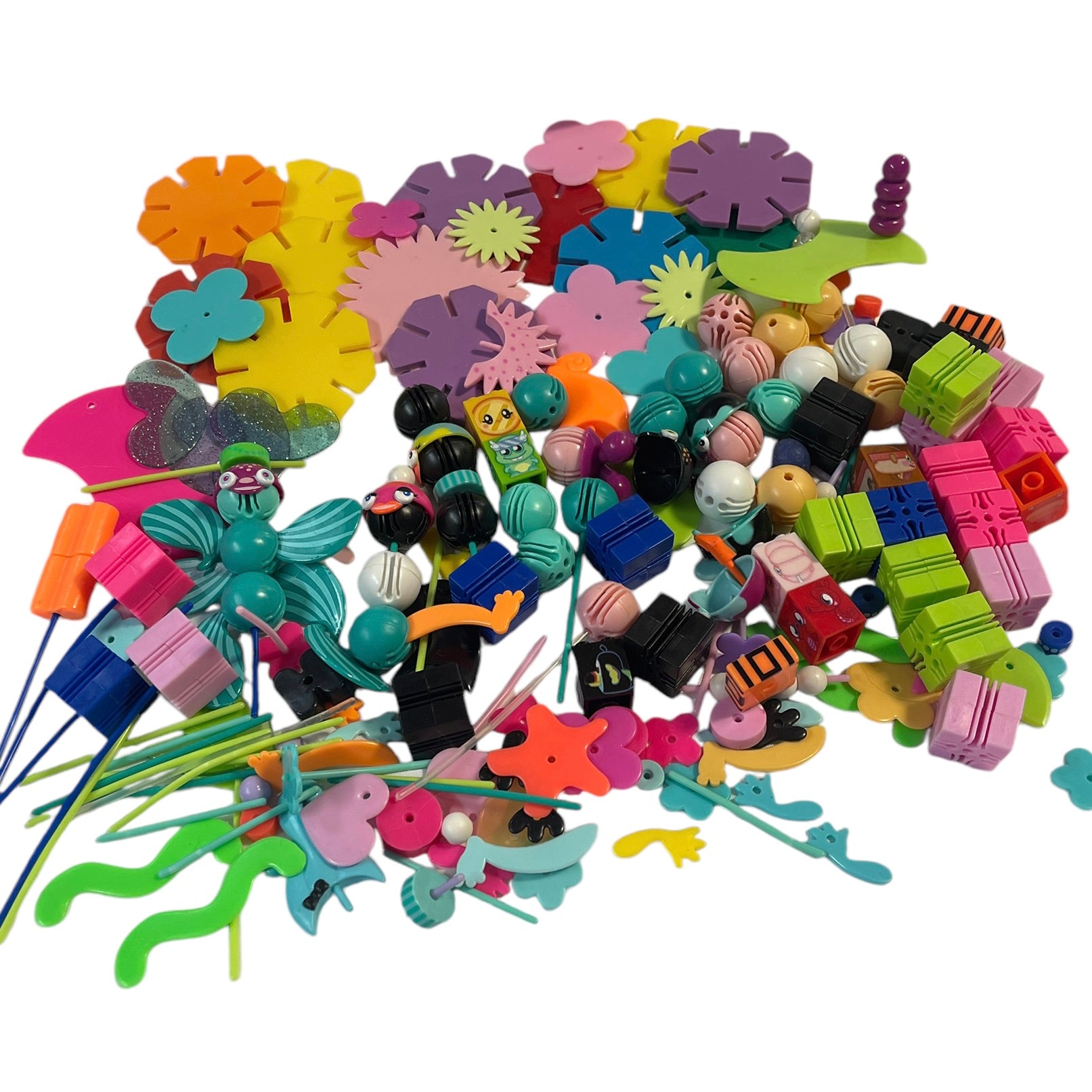 Ello Connectables building toys in excellent preowned condition. Over a pound of brightly coloured Mattel Ello Connectible pieces for hours of creative fun.