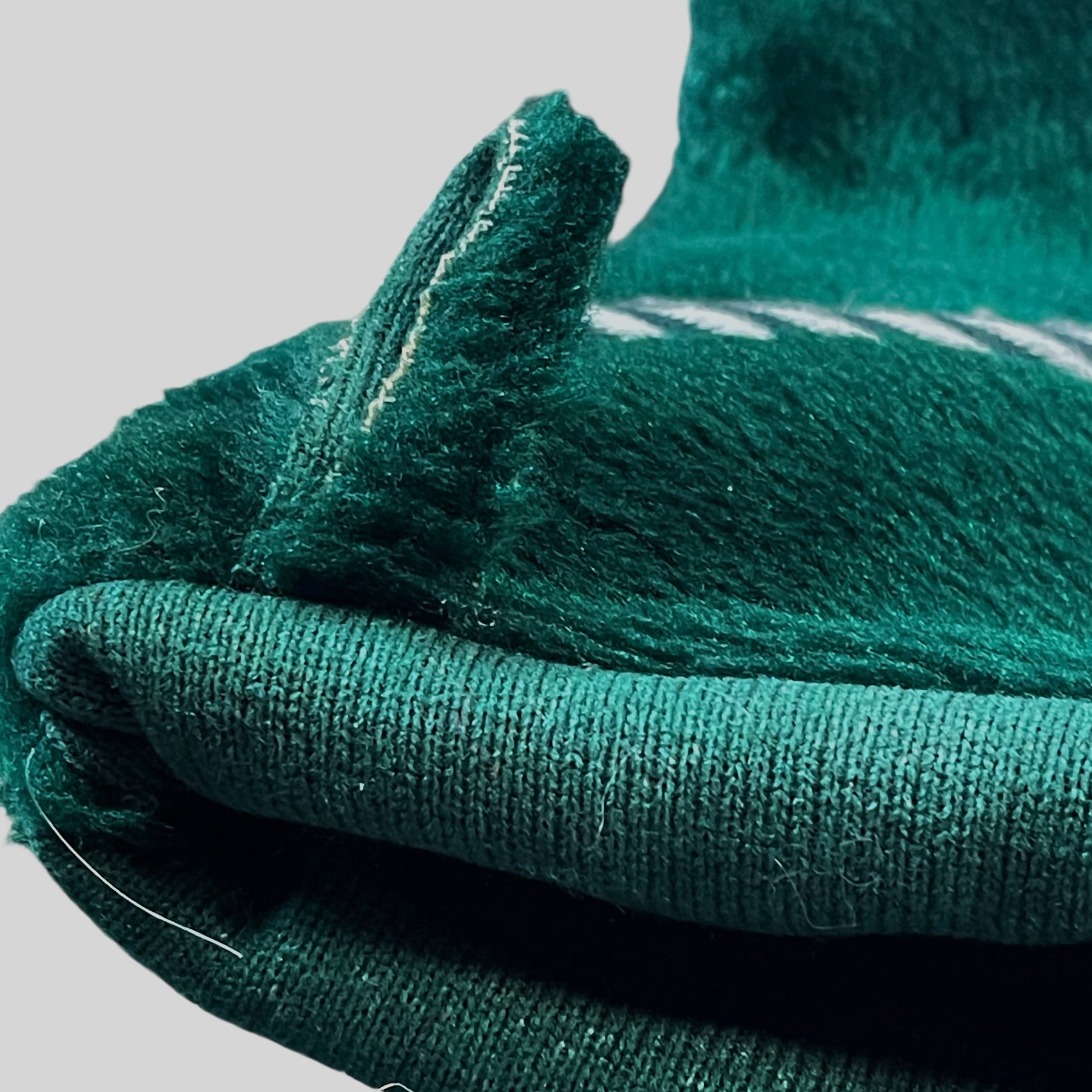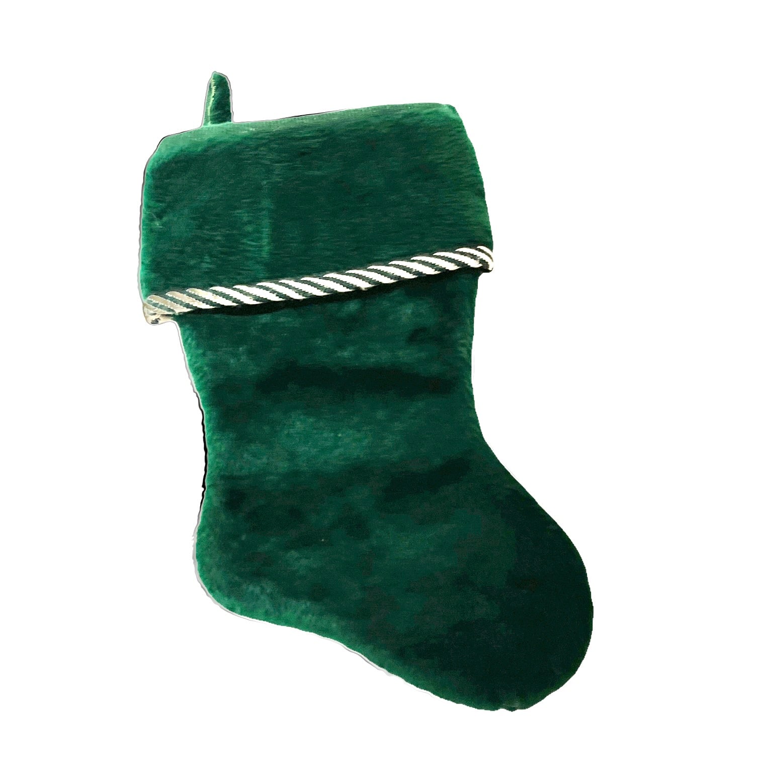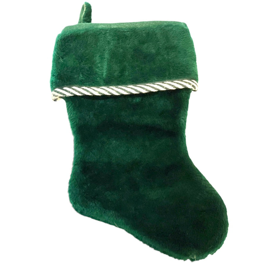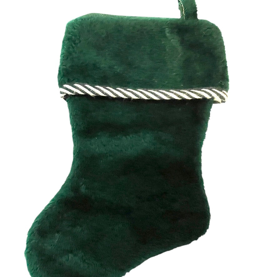Emerald Green Furry Plush Christmas Stocking with Green & White Trim 14" Tall, 8" Foot