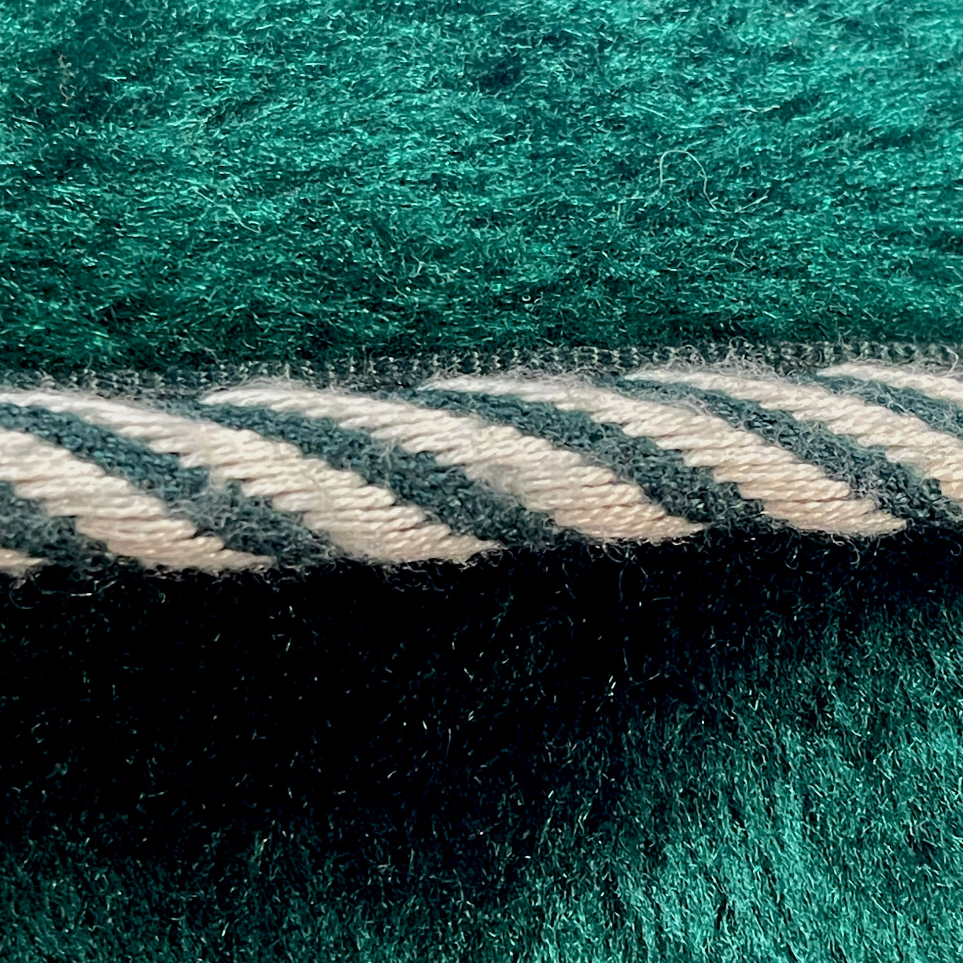 Lovely, Fuzzy Emerald Green Christmas stocking with green and white trim, in excellent preowned condition.