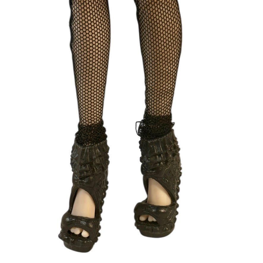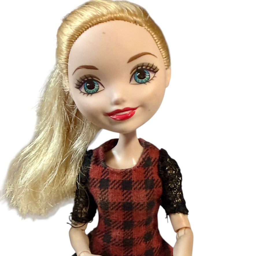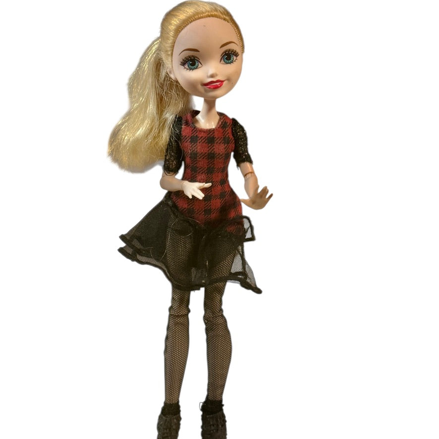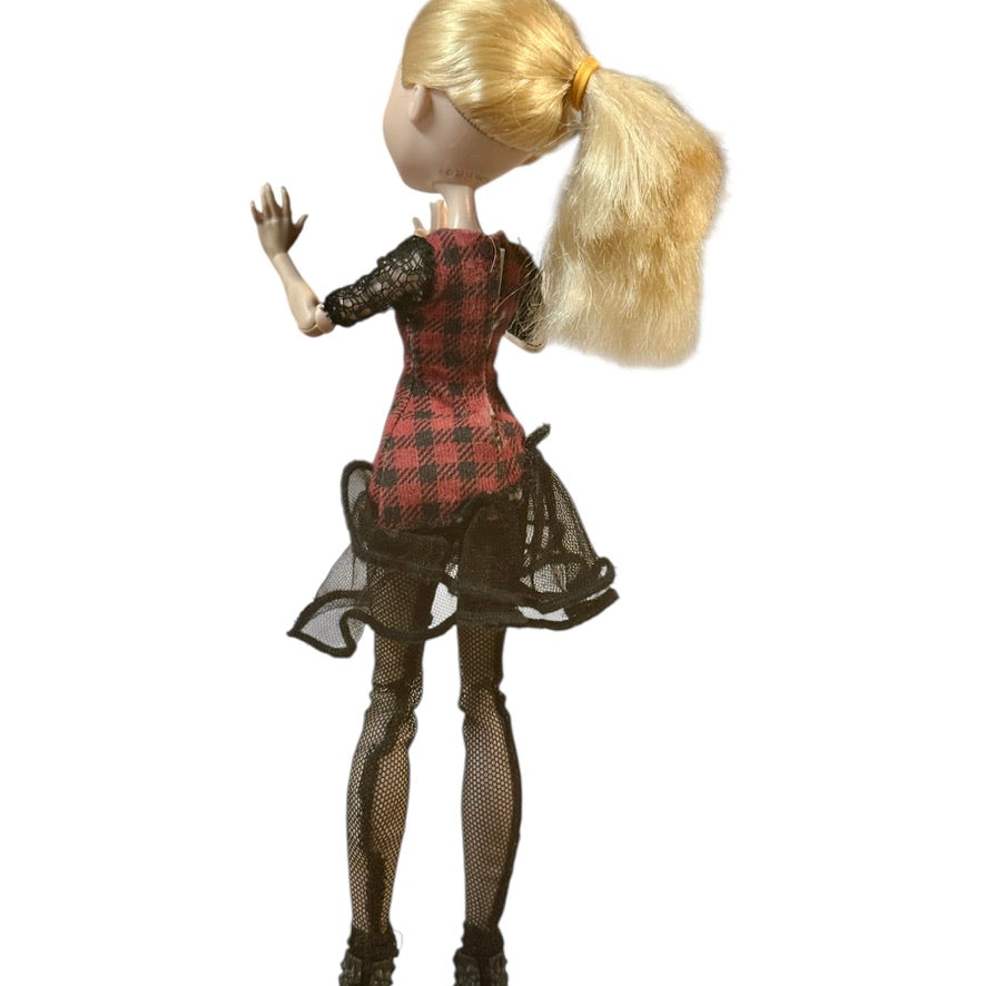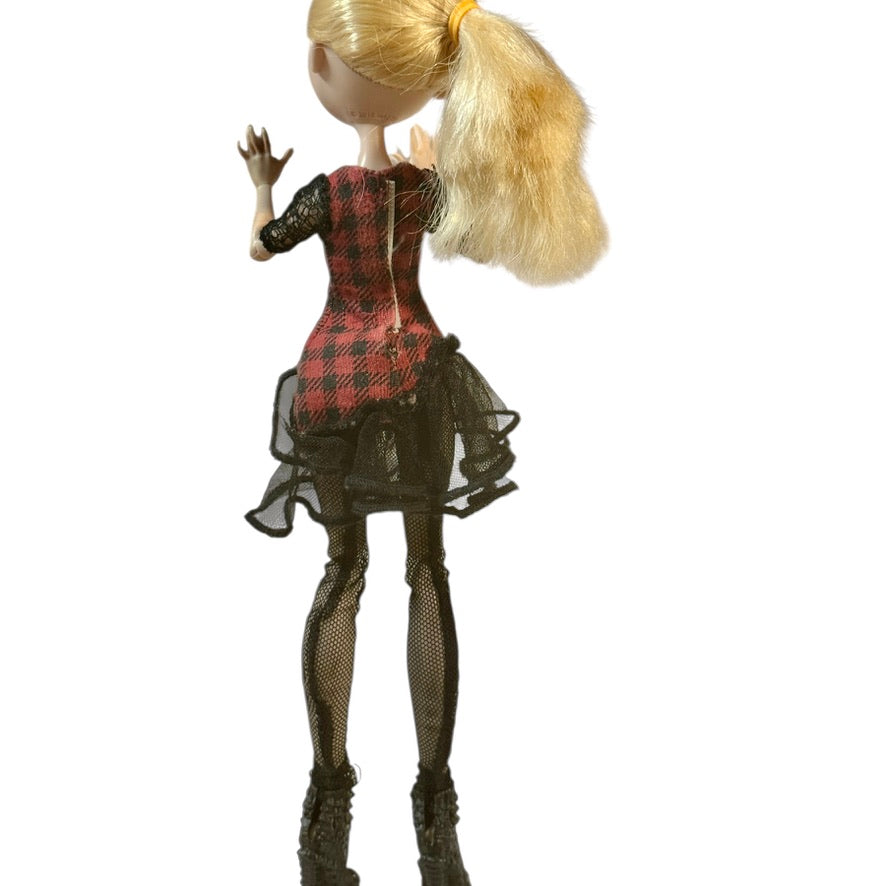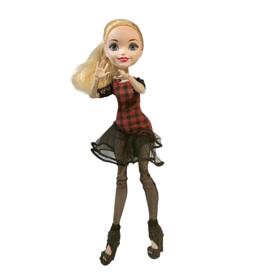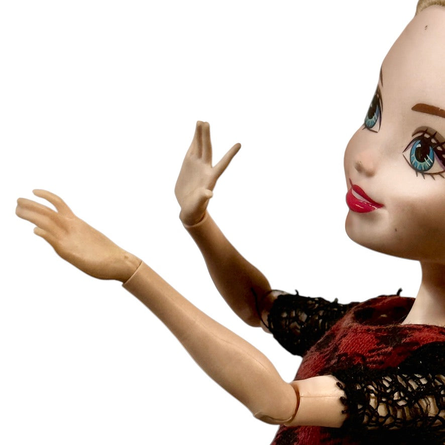 This Beautiful Ever After High First Chapter Doll is in very good preowned condition with articulated arms, hands and legs. Great black net stockings with a back seam. Collectible.