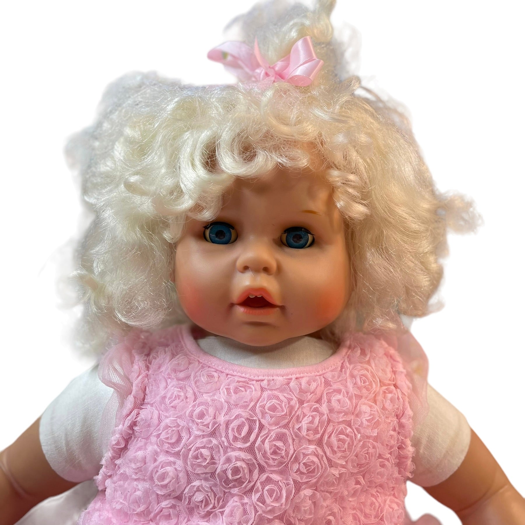 Exquisite 20" Blond Blue Eyed Toddler Doll in Pink Ruffled Tulle Dress with Satin Bow