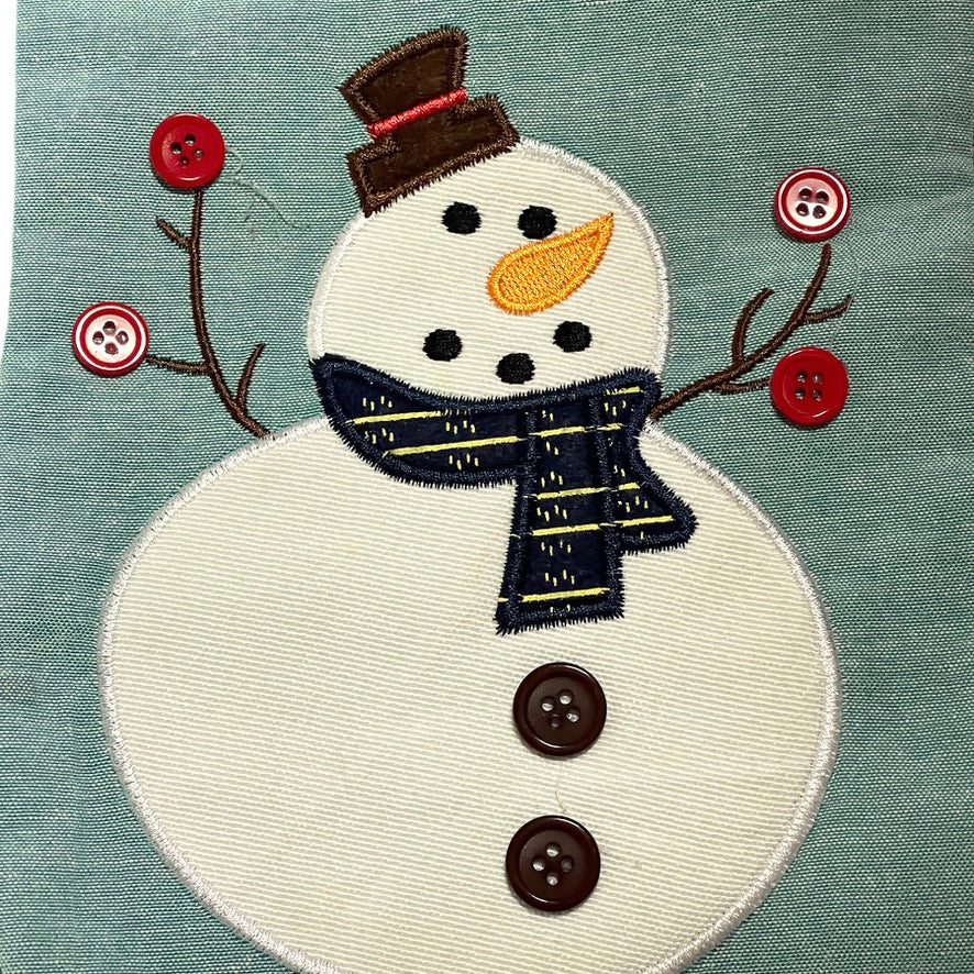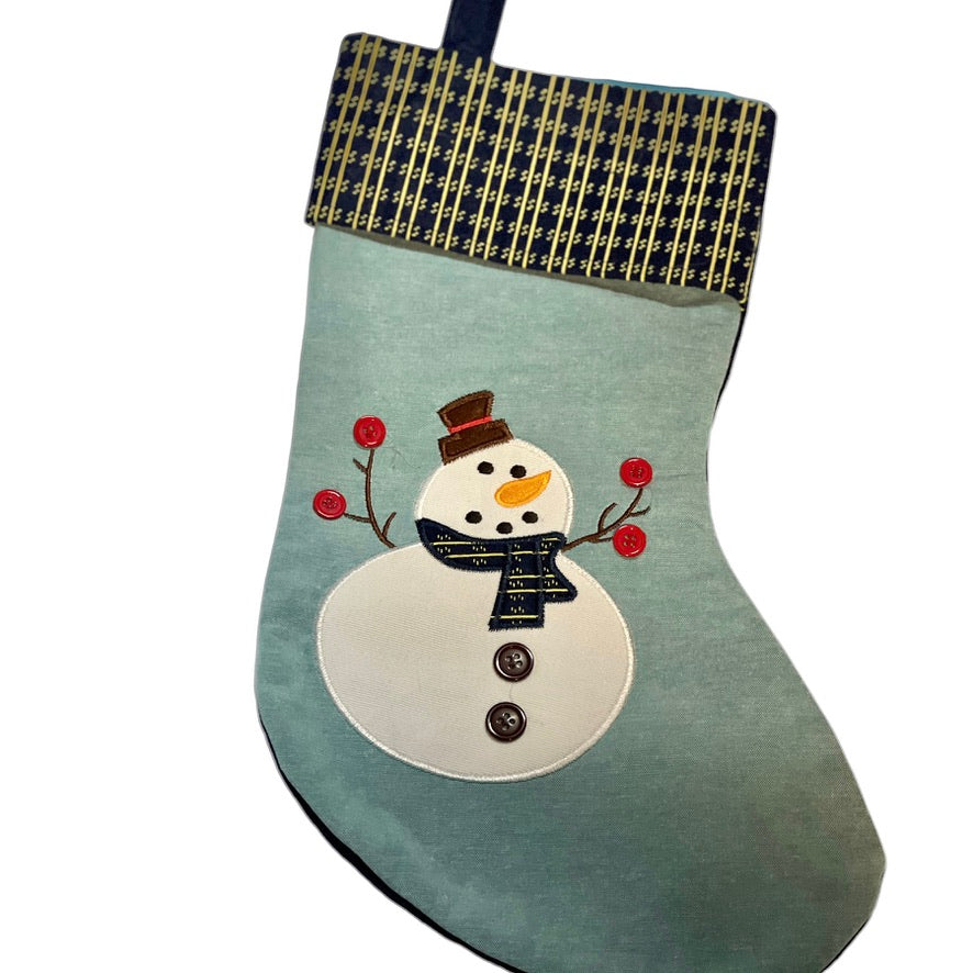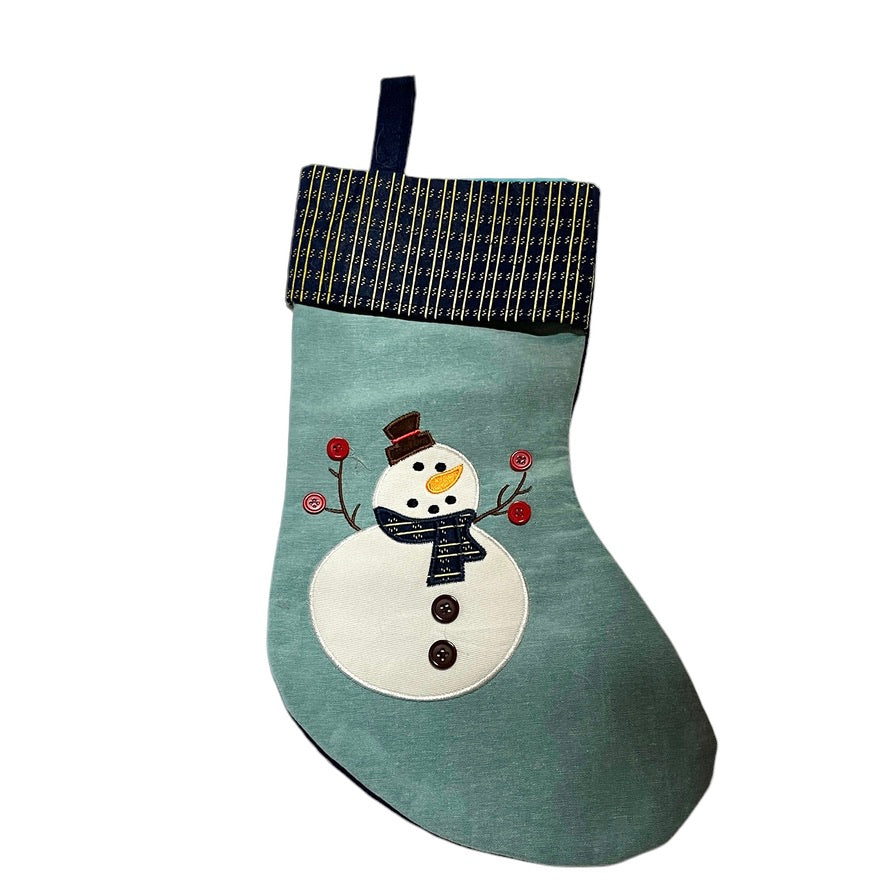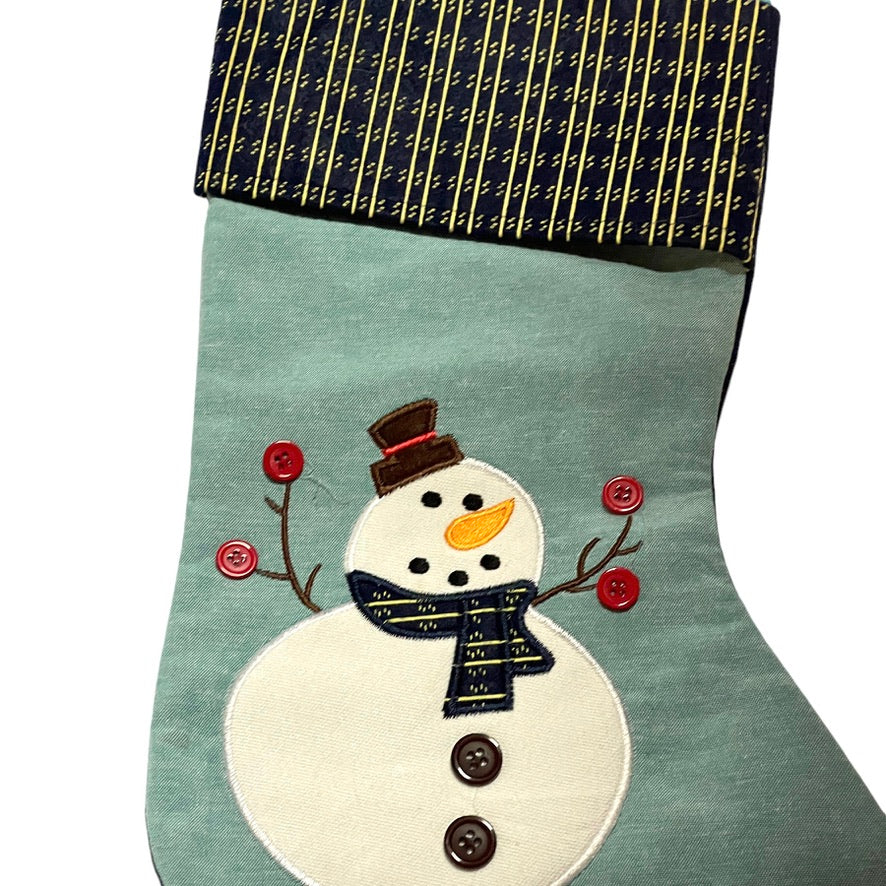 Fabric Christmas Stocking with Appliqued Snowman Complete with Button Accents