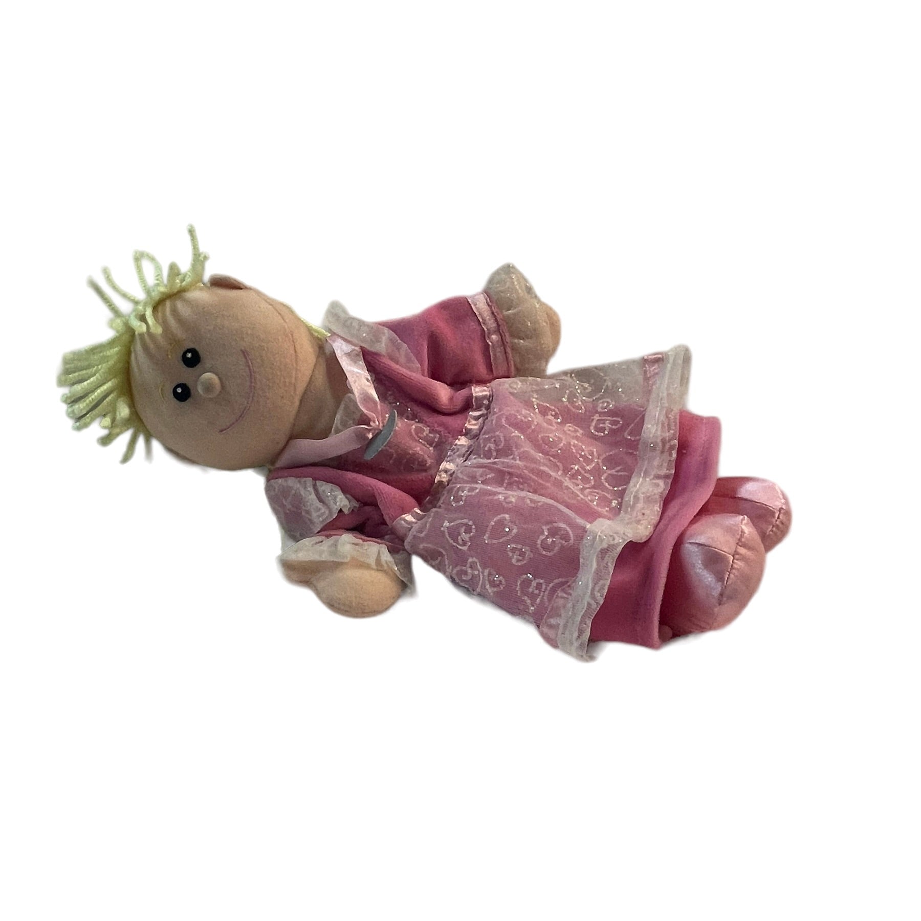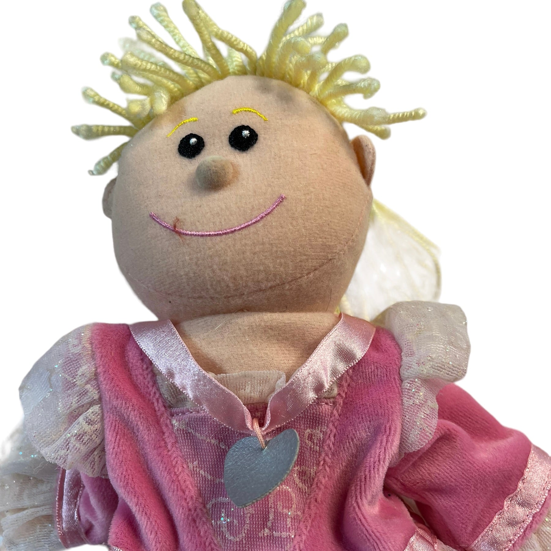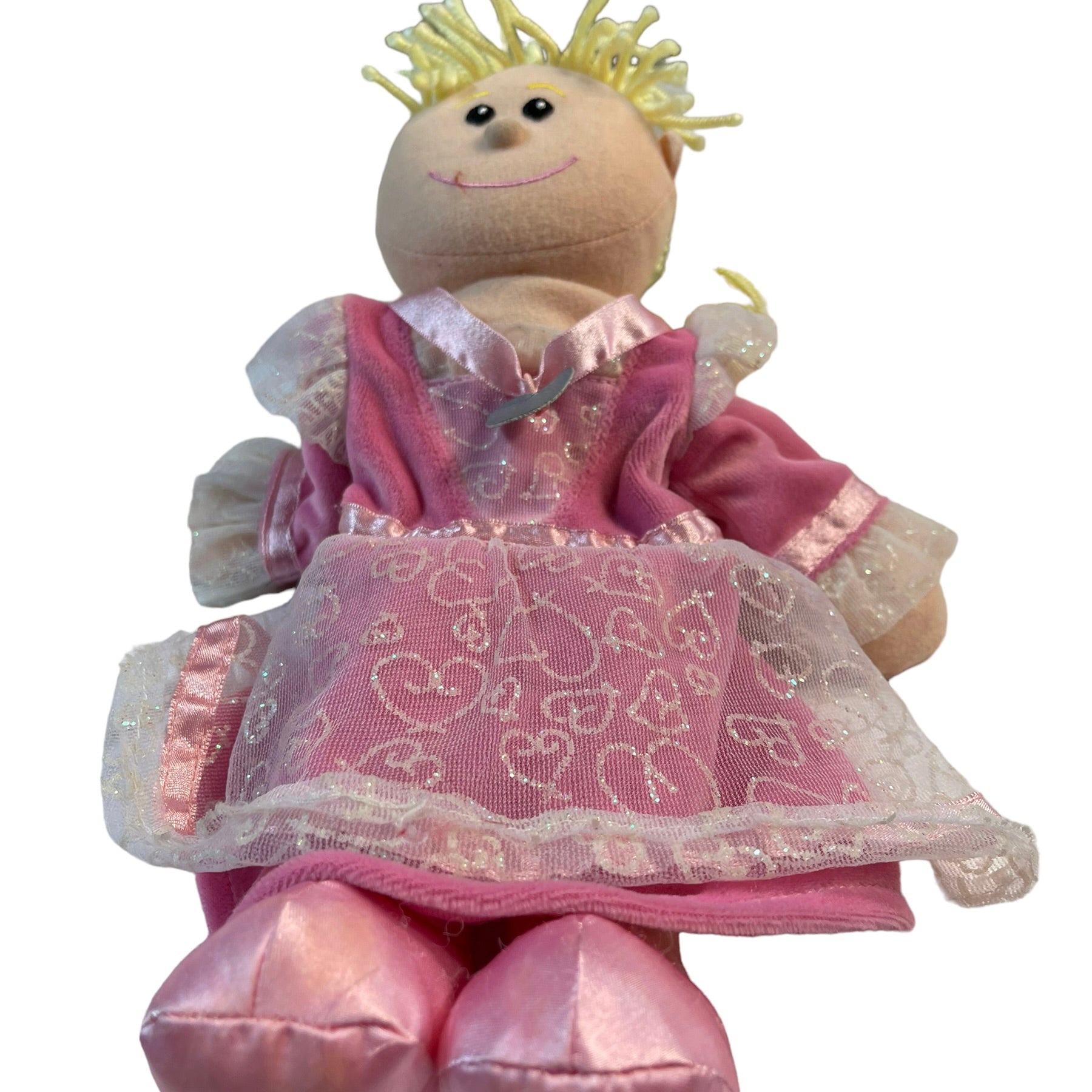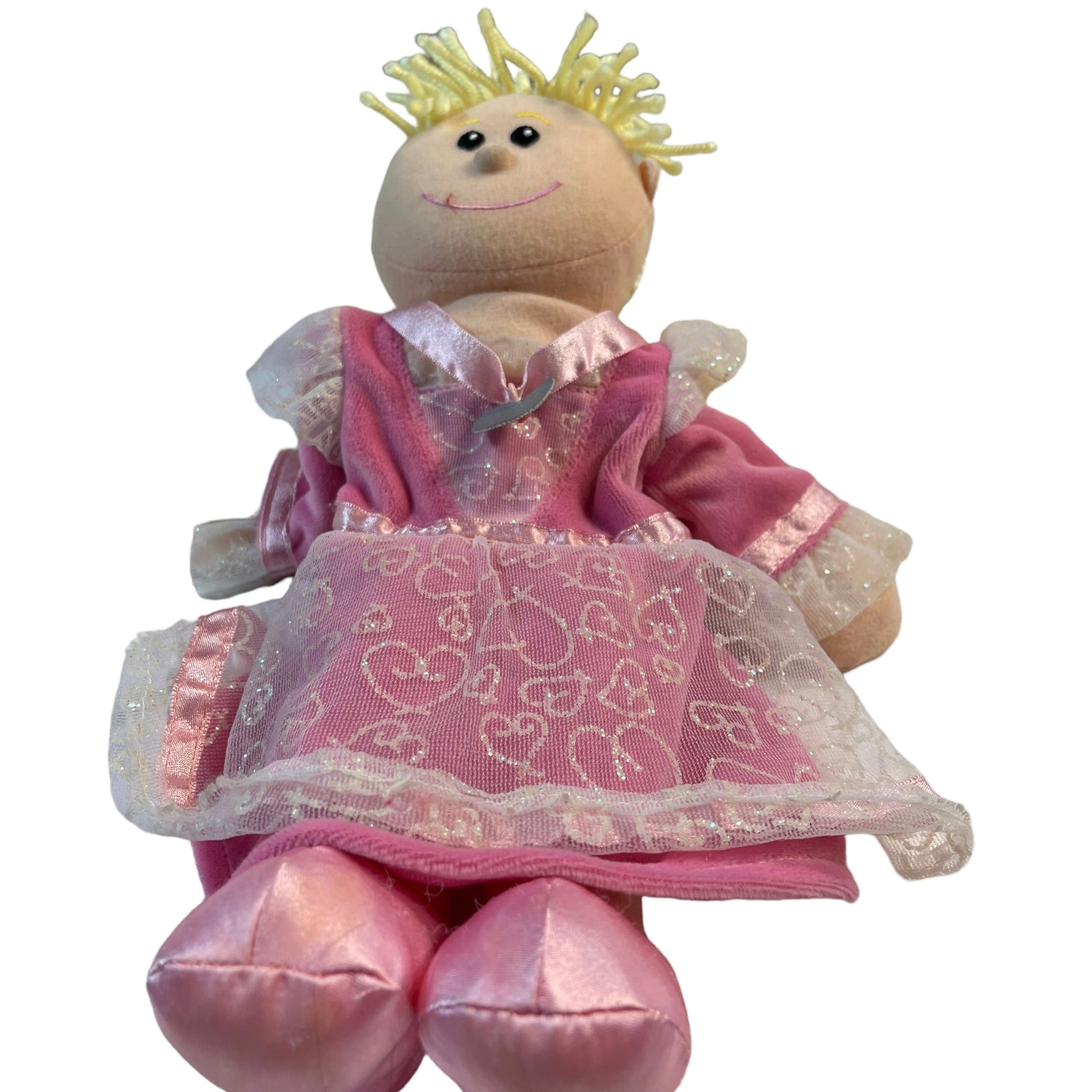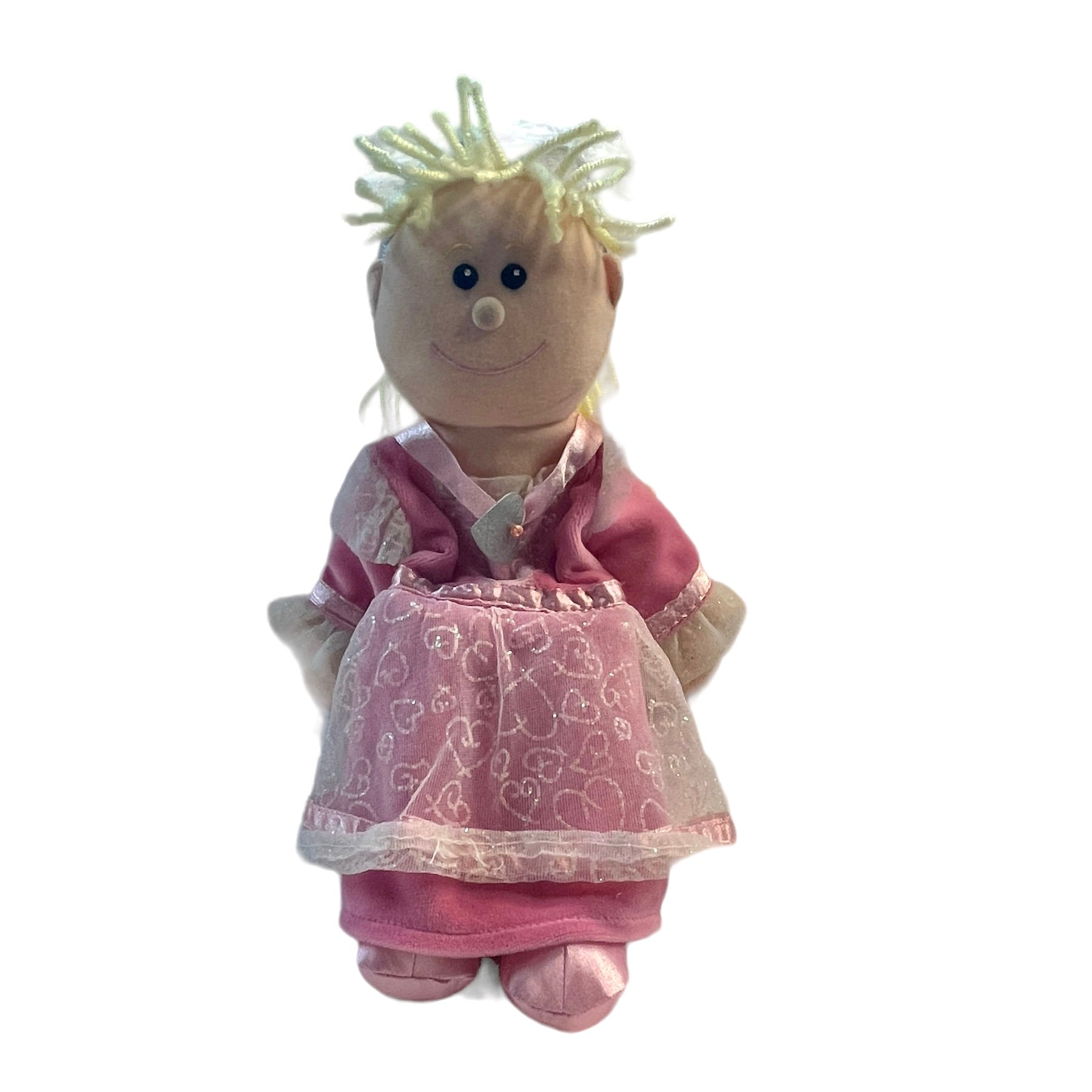 Fiesta Craft Princess Puppet in Pink with Embroideed Face & Yellow Yarn Hair EUC