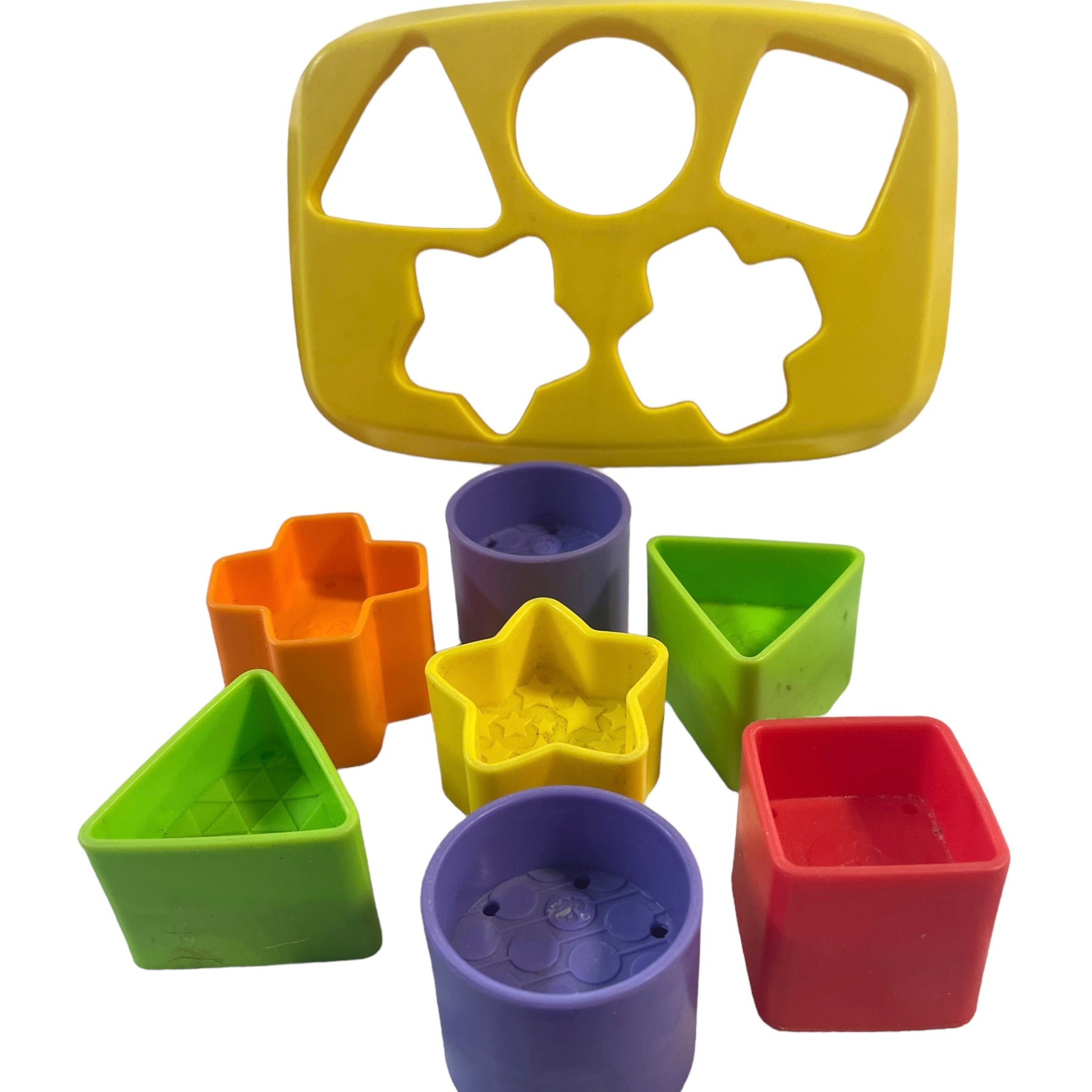 Classic Shape Sorter fosters eye hand coordination and shape and colour recognition in babies & toddlers. A sturdy, engrossing toy that has definitely stood the test of time. Good preowned condition with some wrinkling of the sticker.