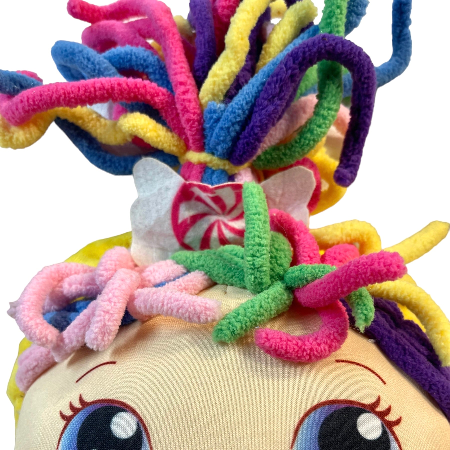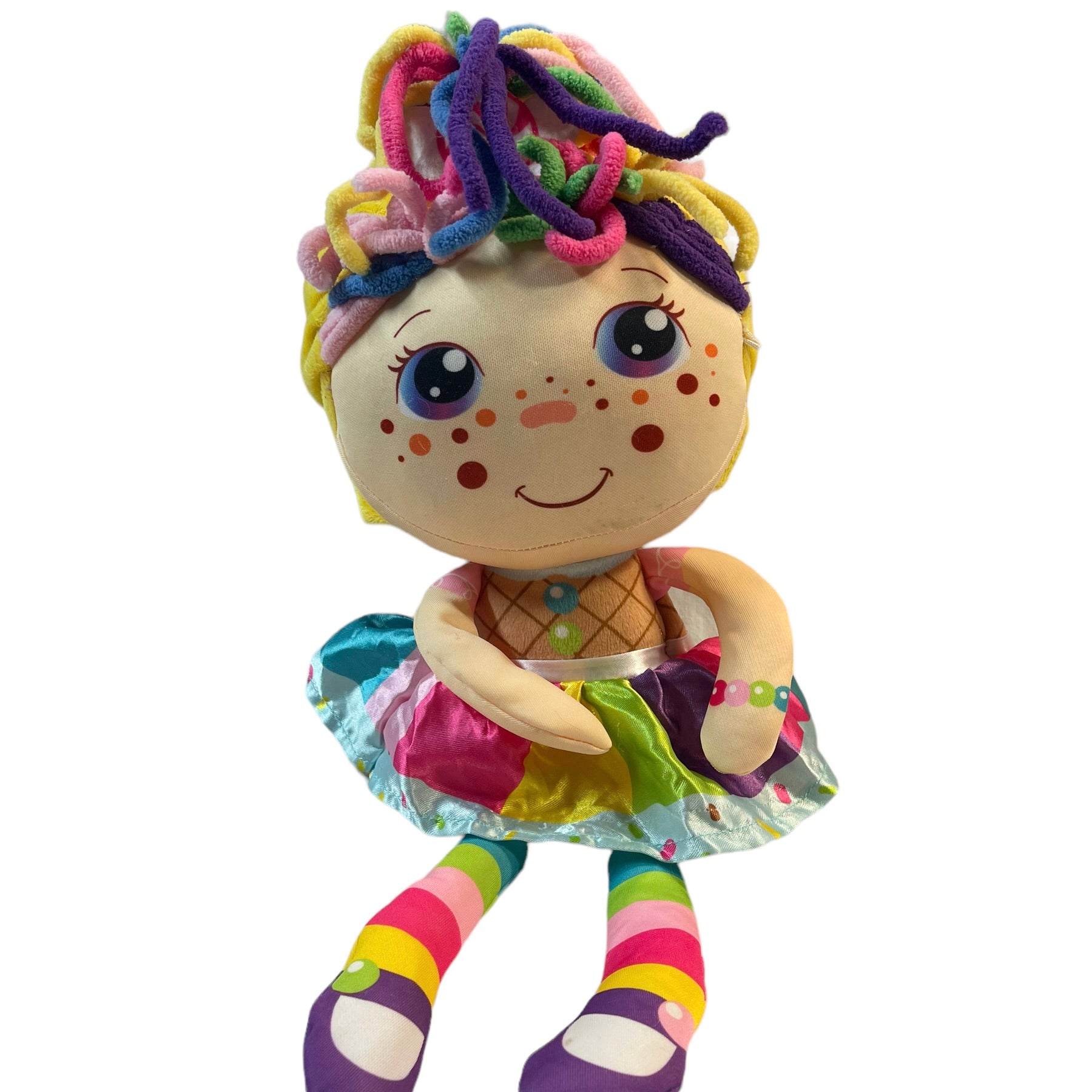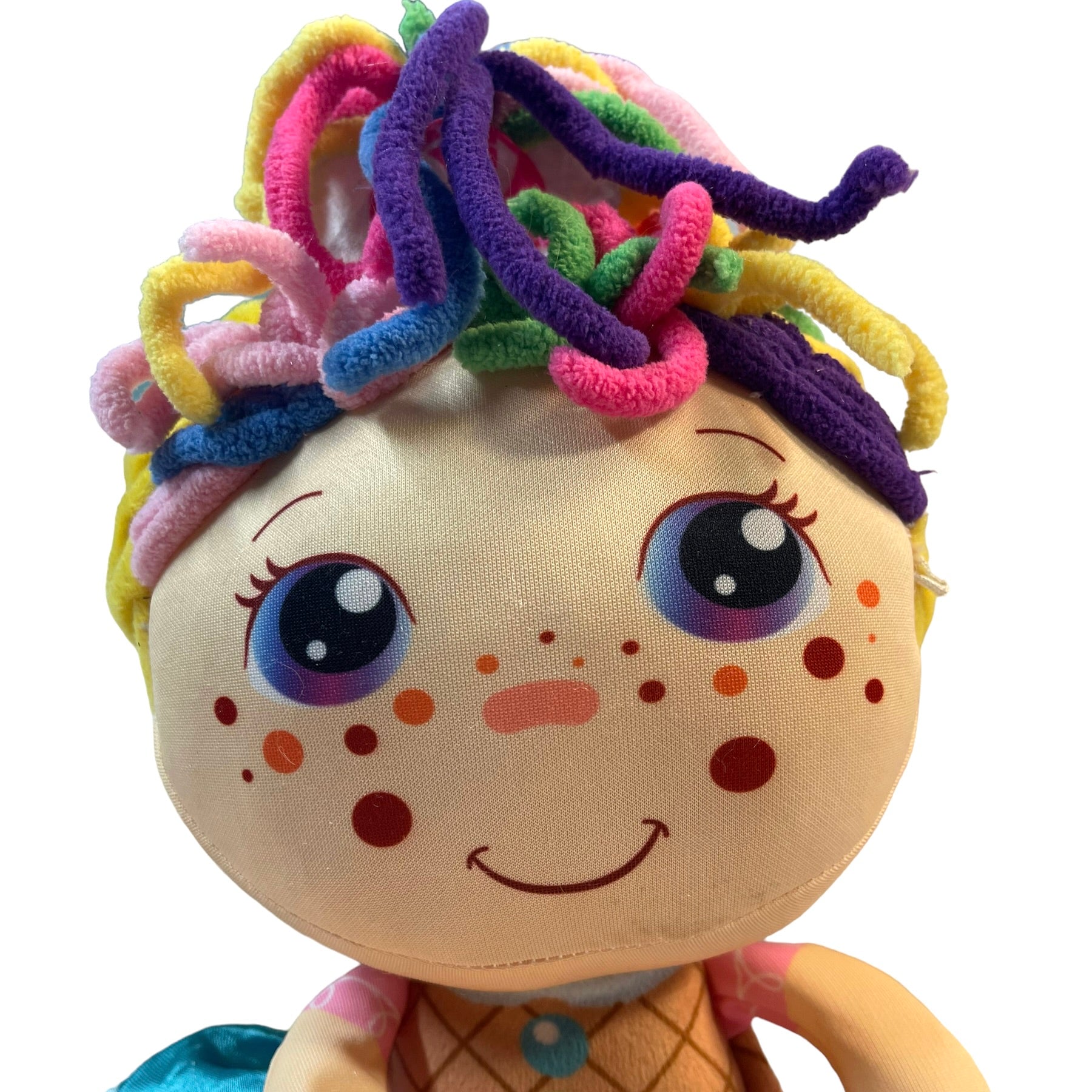 This Sweet Dolly is a Riot of Colour and Fun. Bright Freckles and Rainbow Hair & Clothing make this versatile Stuffed plush Doll a Wonderful Addition to your Doll Family!