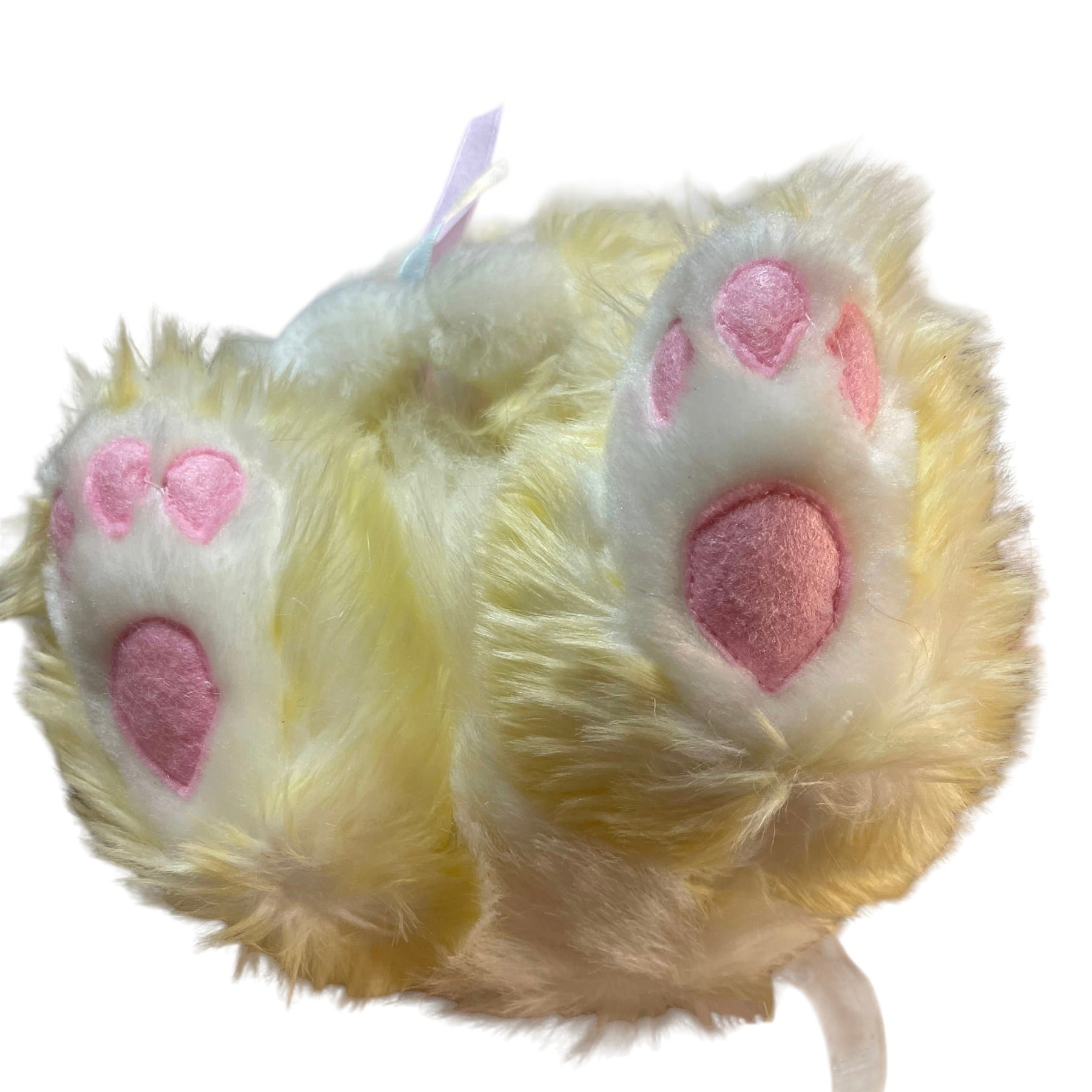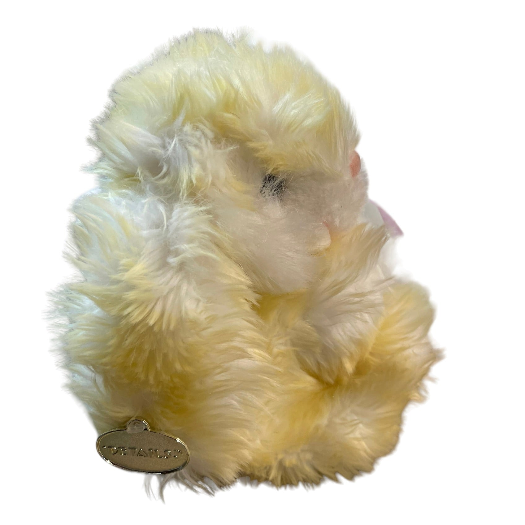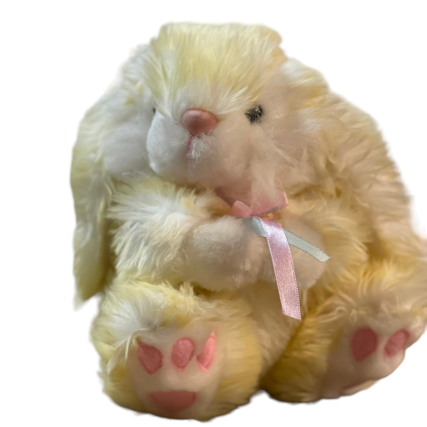 Comet Strip Preowned 9" Adorable Fluffy Easter Bunny Plush with a medallion with 'Details' affixed to one ear. Accented with ribbons around the neck and soft pink pads on big fuffy paws!