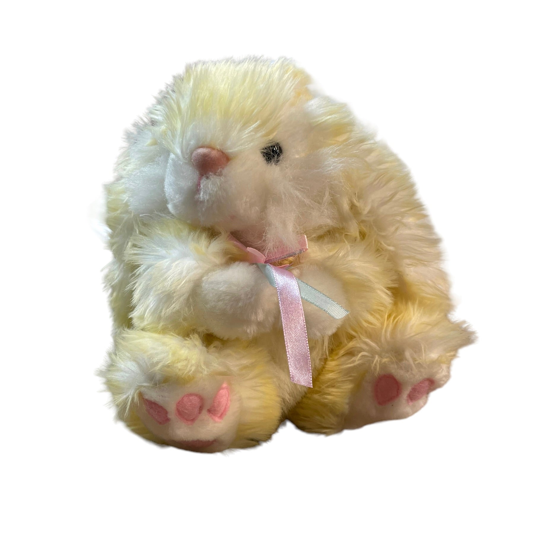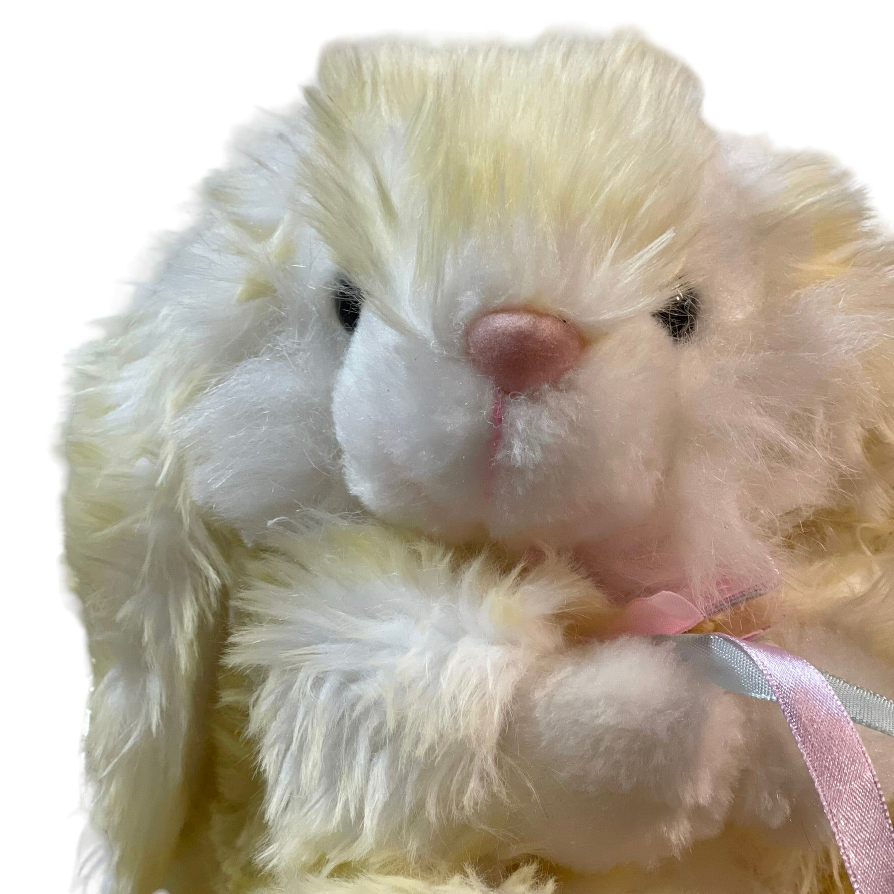 Fluffy Yellow Bunny Stuffed Animal Easter Plush Pink Accents, Ribbon Streamers EUC