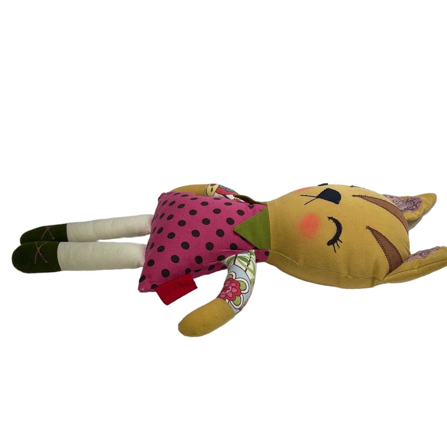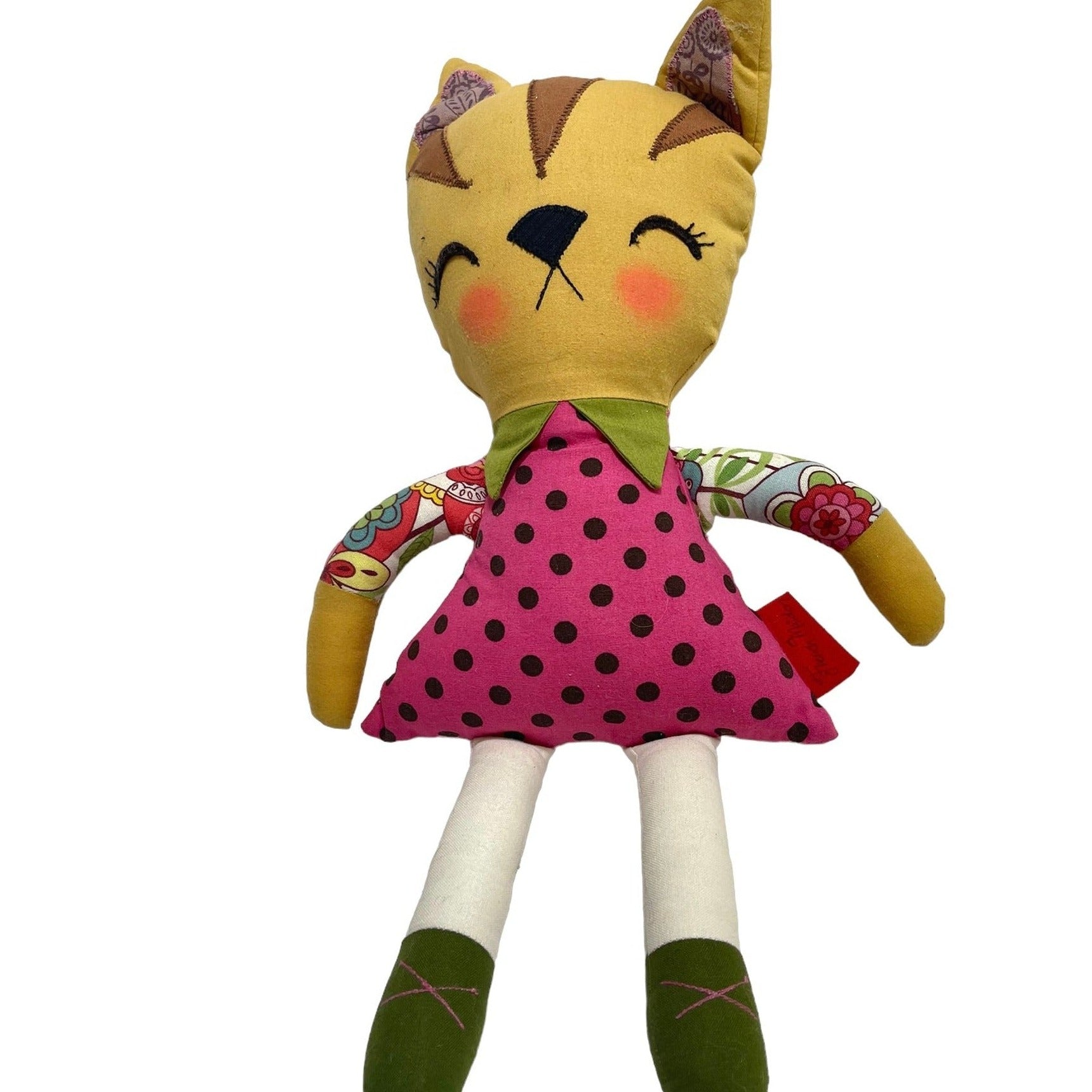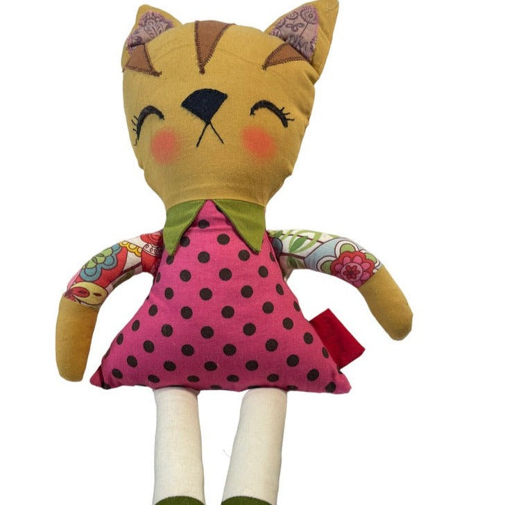 This adorable French Maiden Kitty has a delightfully haughty expression that screams her superiority over lesser stuffed toys. Exquisitely handmade with embroidered and appliqued face and hair. A stuffy with attitude!
