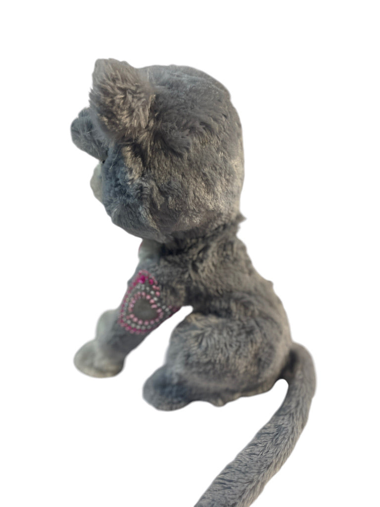 Absolutely adorable, purring, meowing interactive grey and white kitten. This animated toy has a full range of kitten reactions, even snarling when it gets annoyed! Bootsie has moveable ears and the most expressive eyebrows over enormous blue eyes. A truly amazing toy, in good, preowned, working condition.