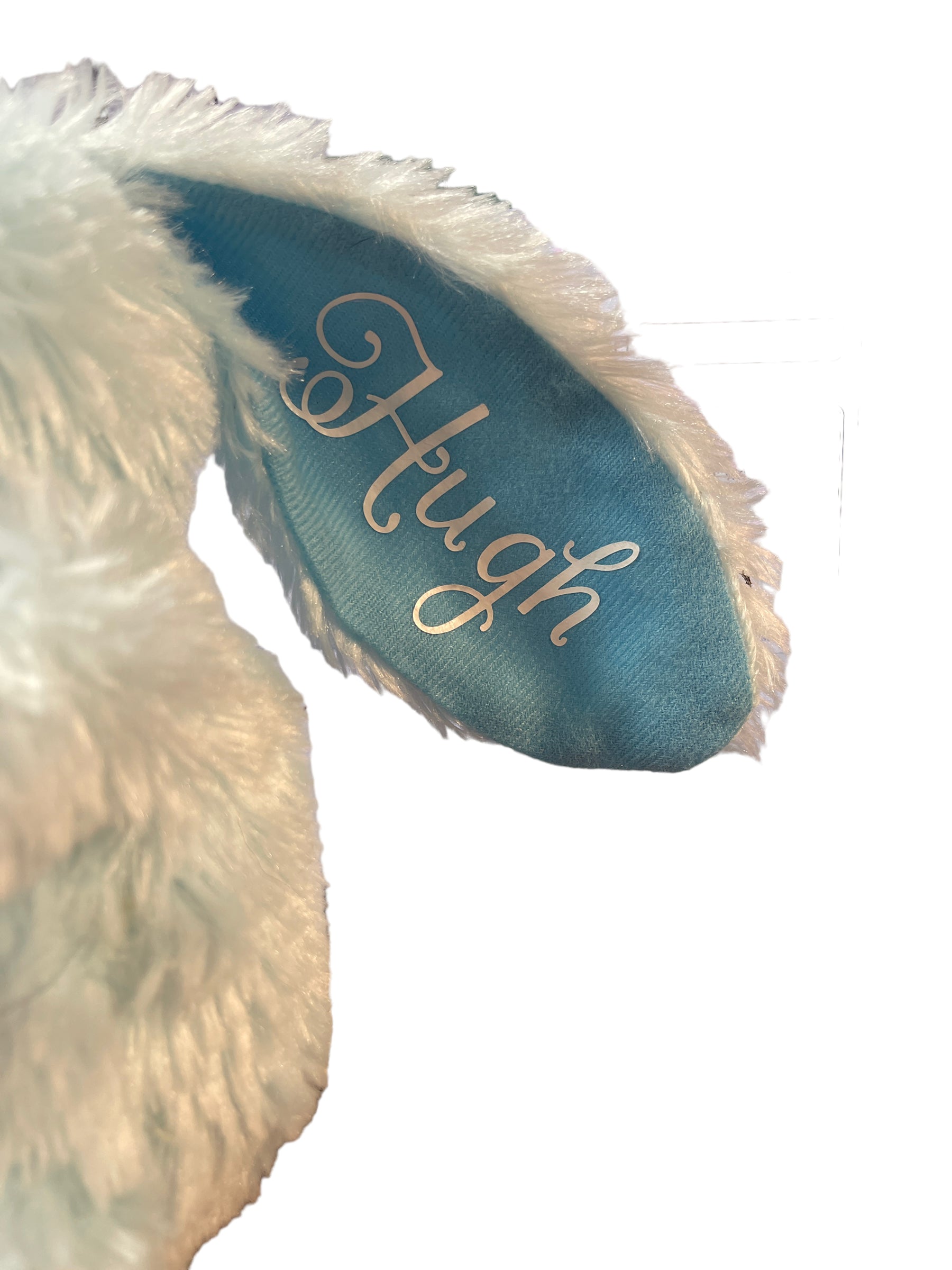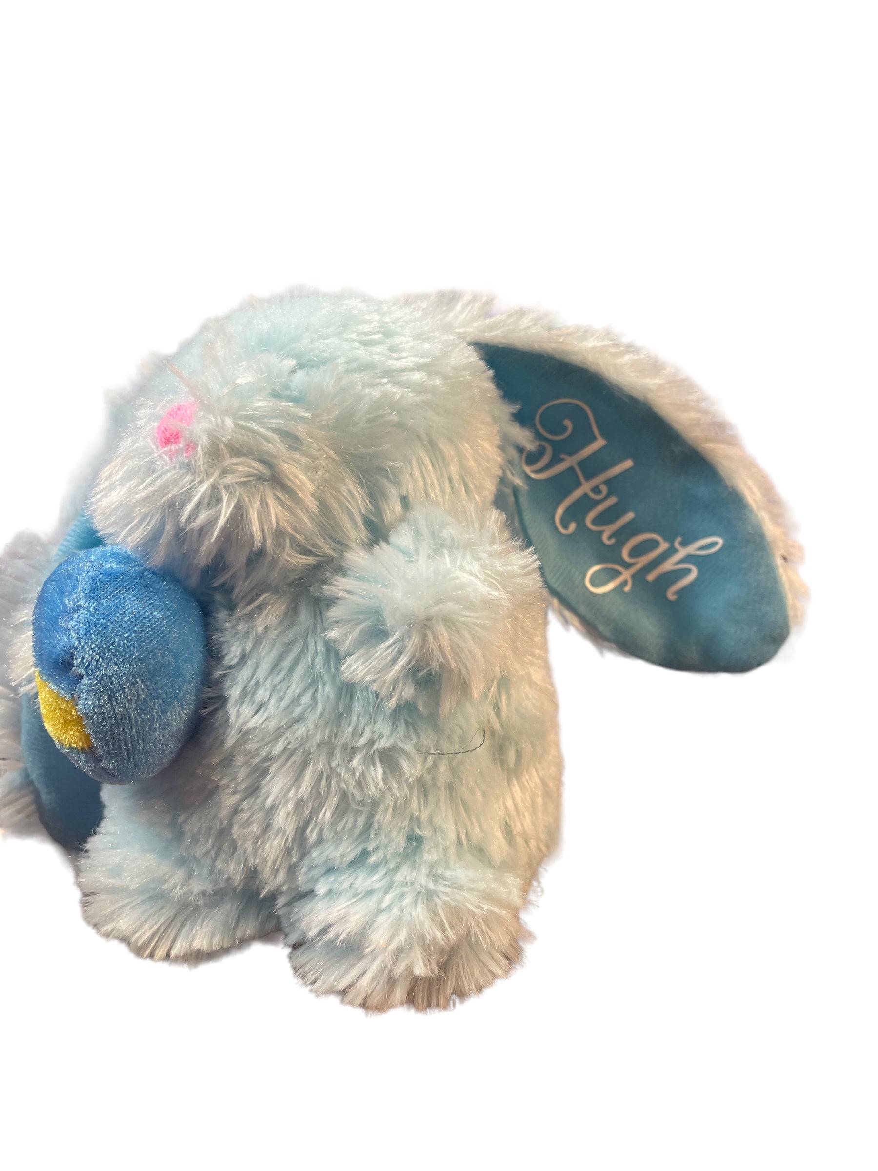 This Sweet Easter Bunny has a plush egg tucked under his arm and 'Hugh' written in left ear. A lovely Easter Gift.