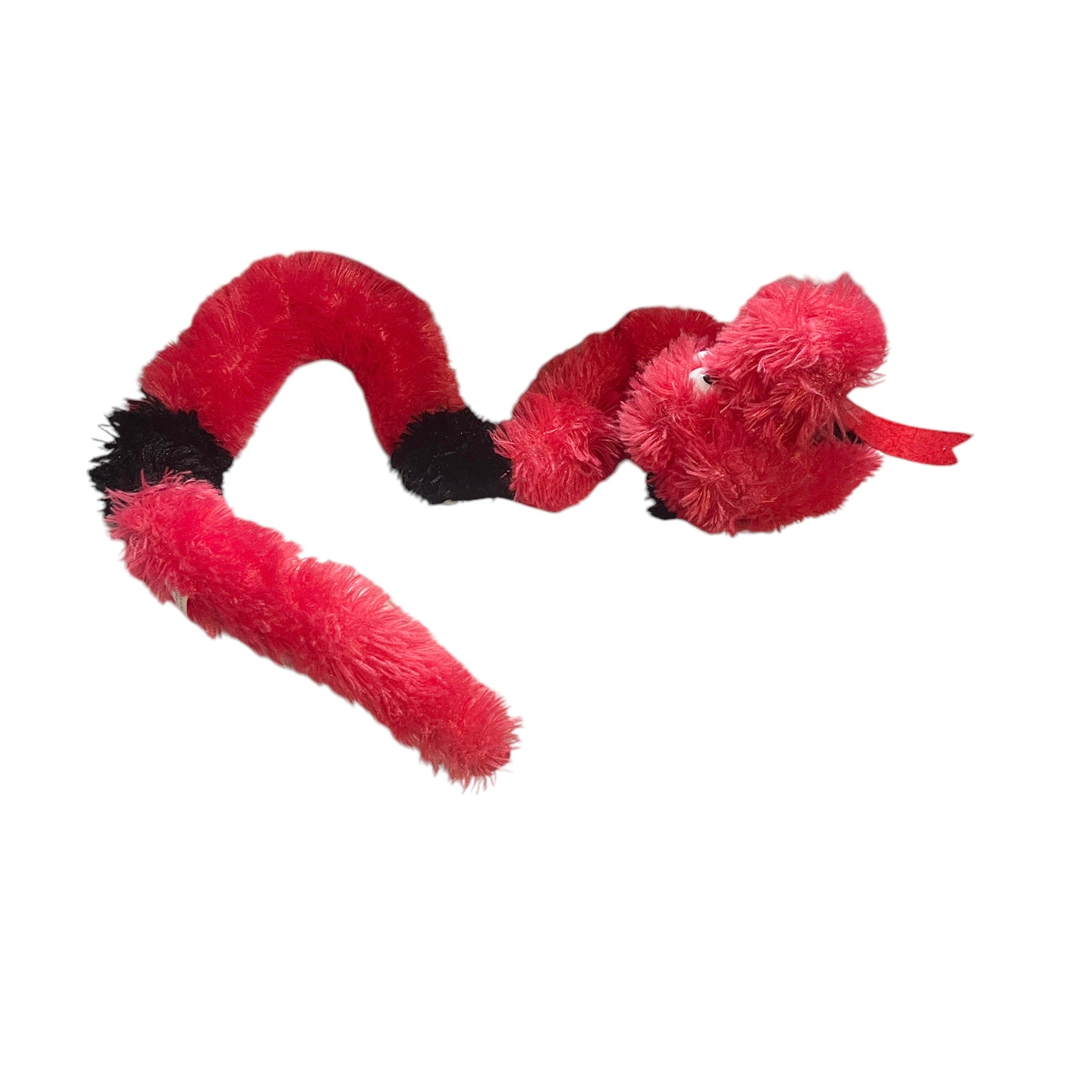 Fuzzy Red & Black 38' Snake by Specialty Toys, with Big Googly Eyes & a Red Forked Tongue!