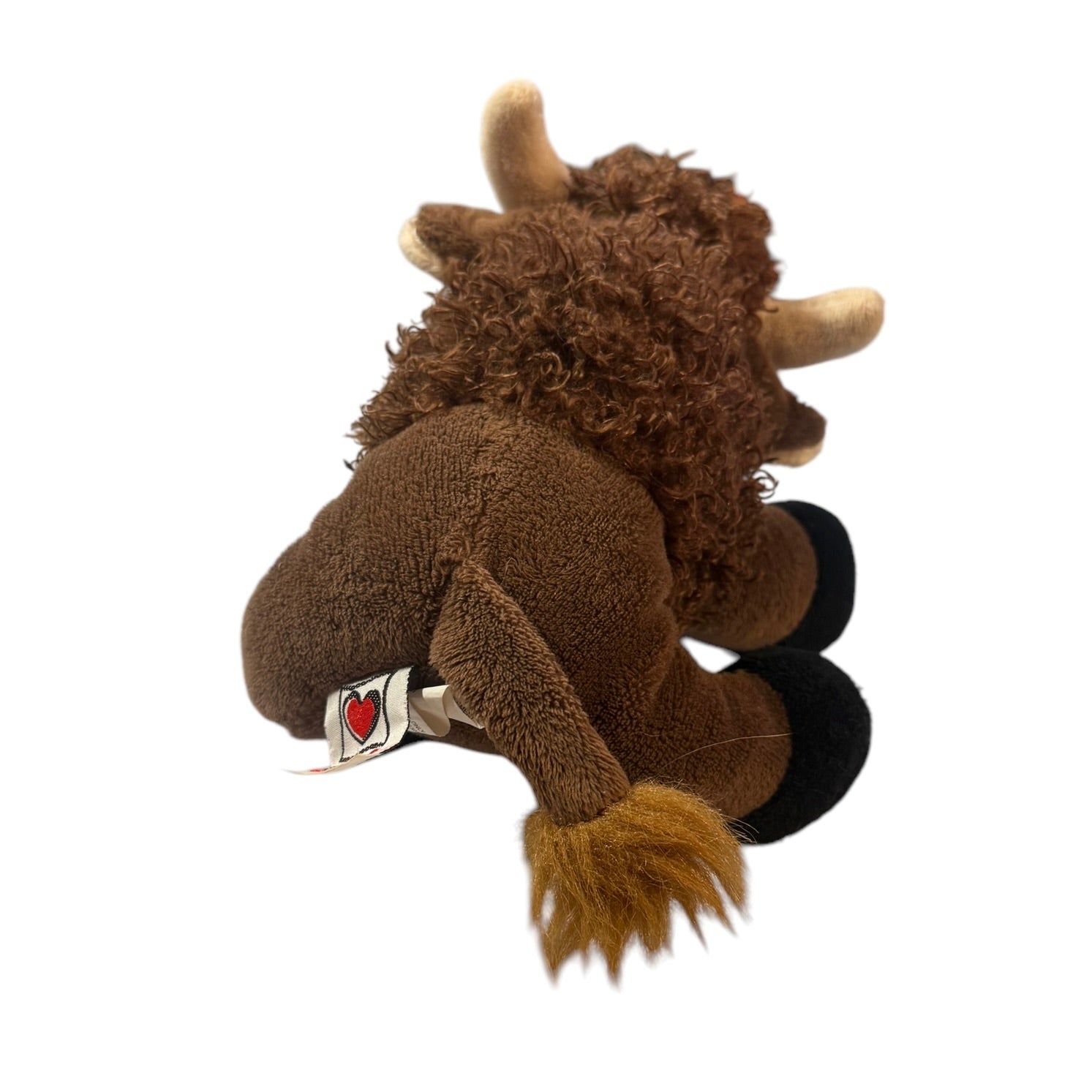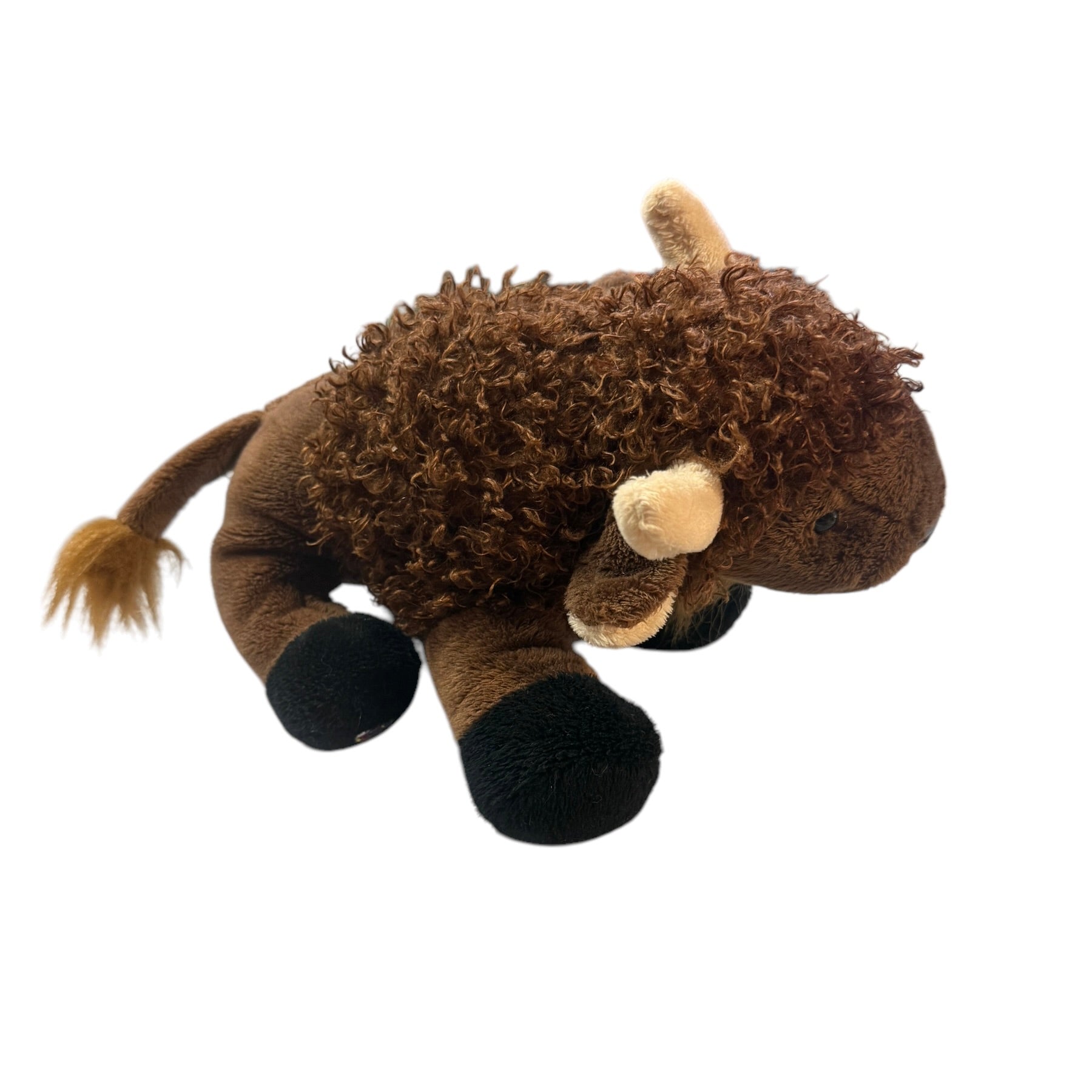 disney animators This detailed Stuffed Buffalo plush toy stuffed animal is a rich chocolate brown with cream coloured horns and a tufted tail. With both a rough and smooth coat, this little toy provides different textures to explore. Very cuddly and sweet! Sorry, No Code.