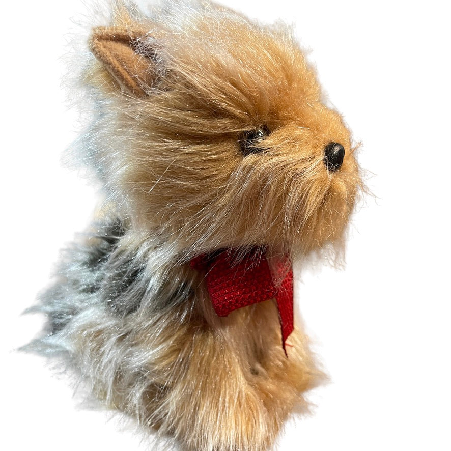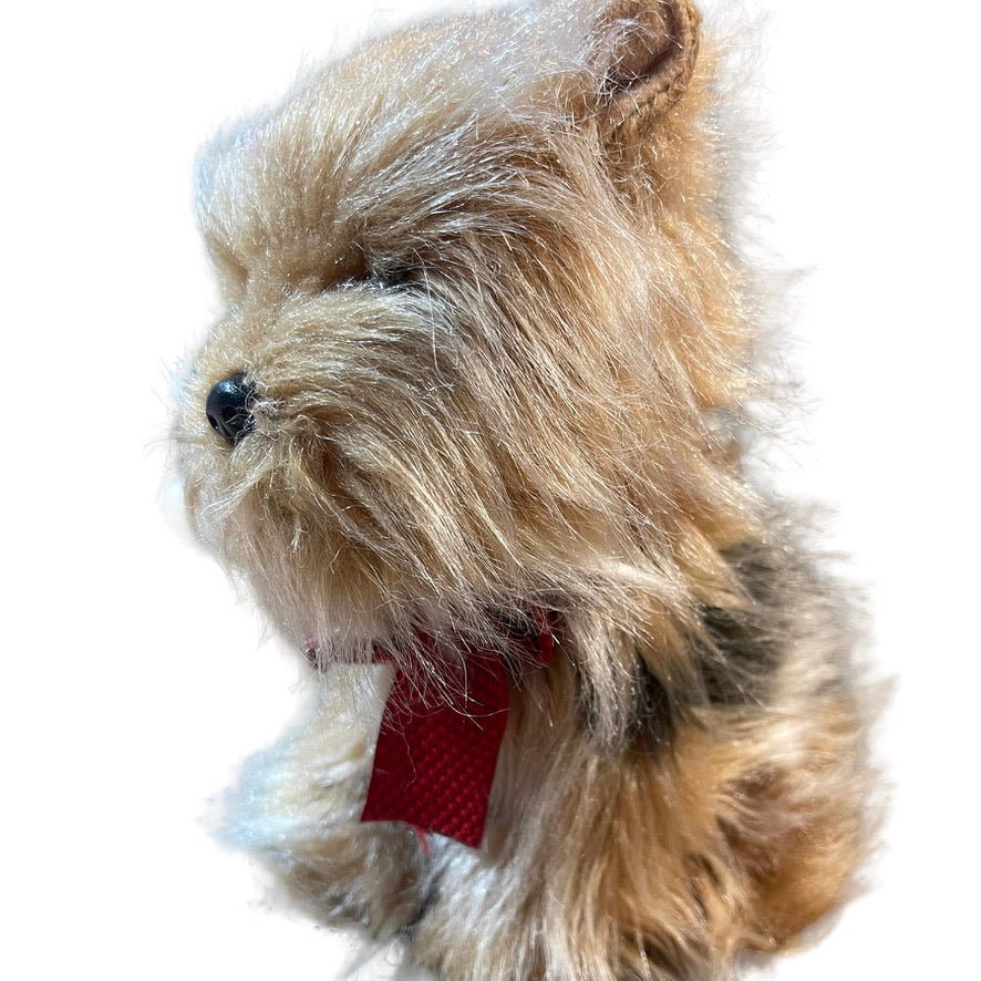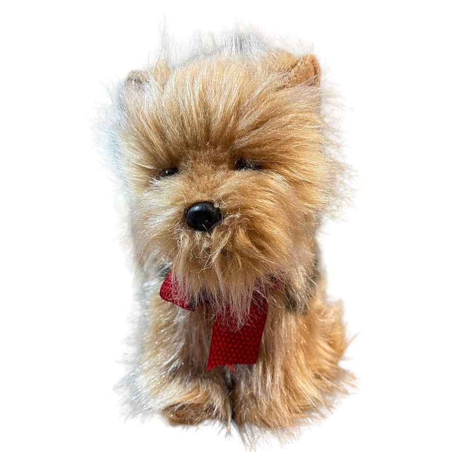 Russ Berrie, Yorkshire Terrier, Ghengis, Realistic Plush Dog with Red Bow in EUC