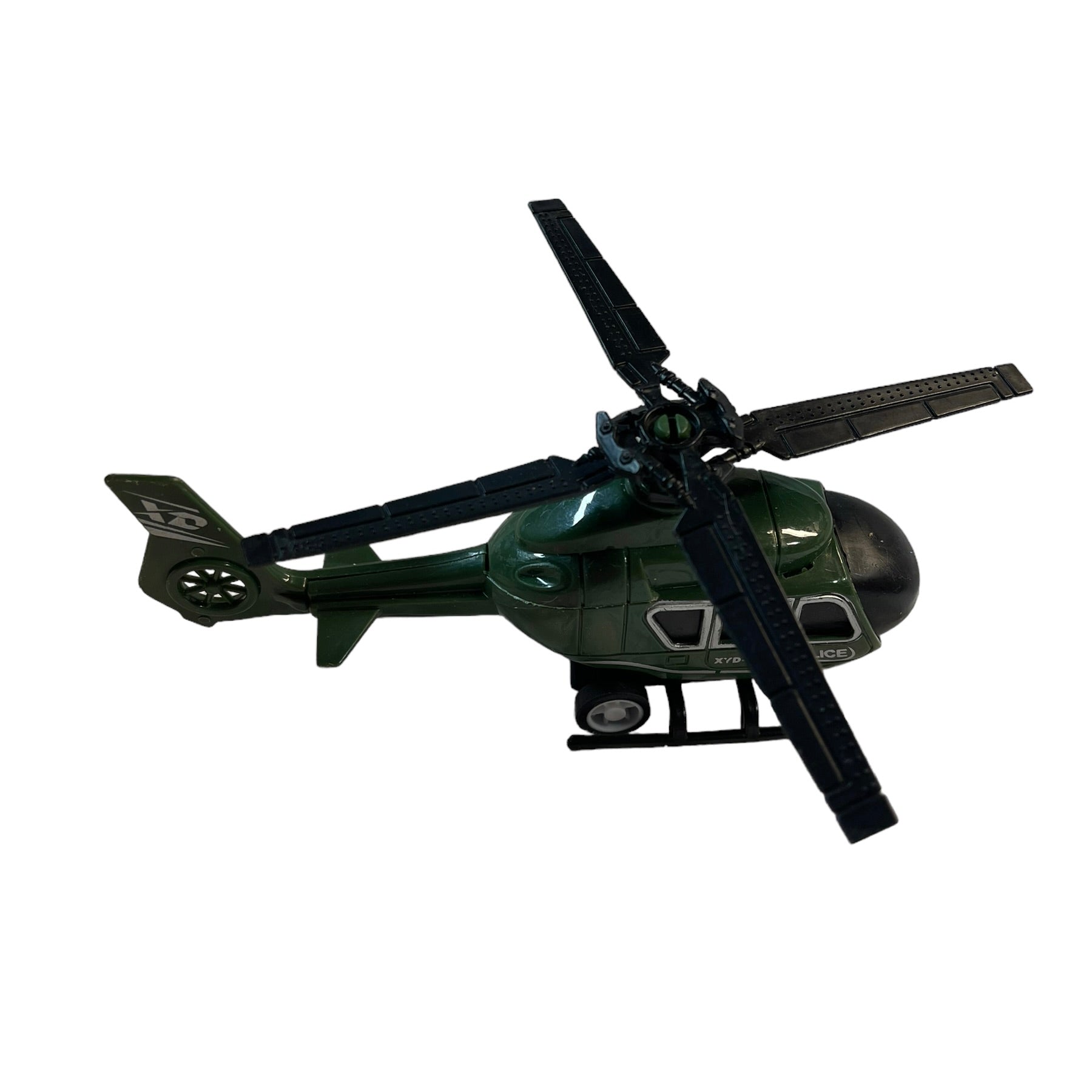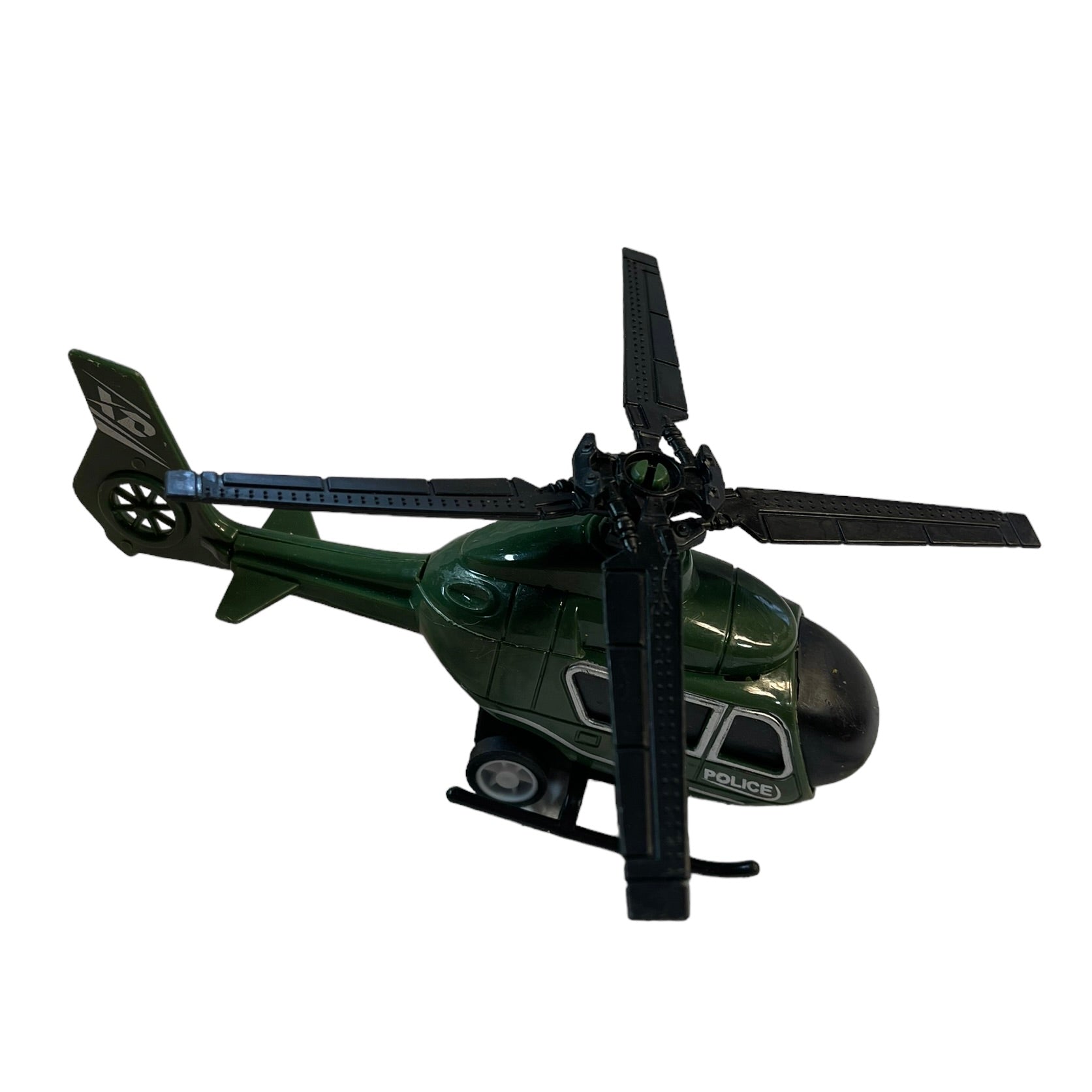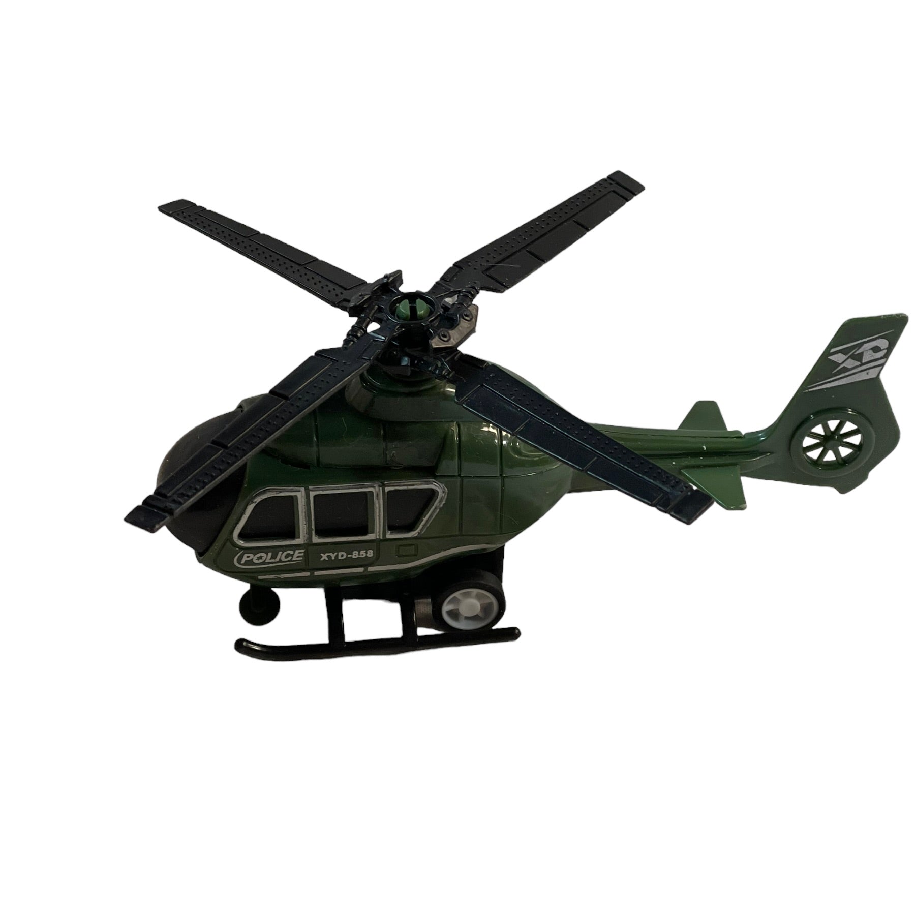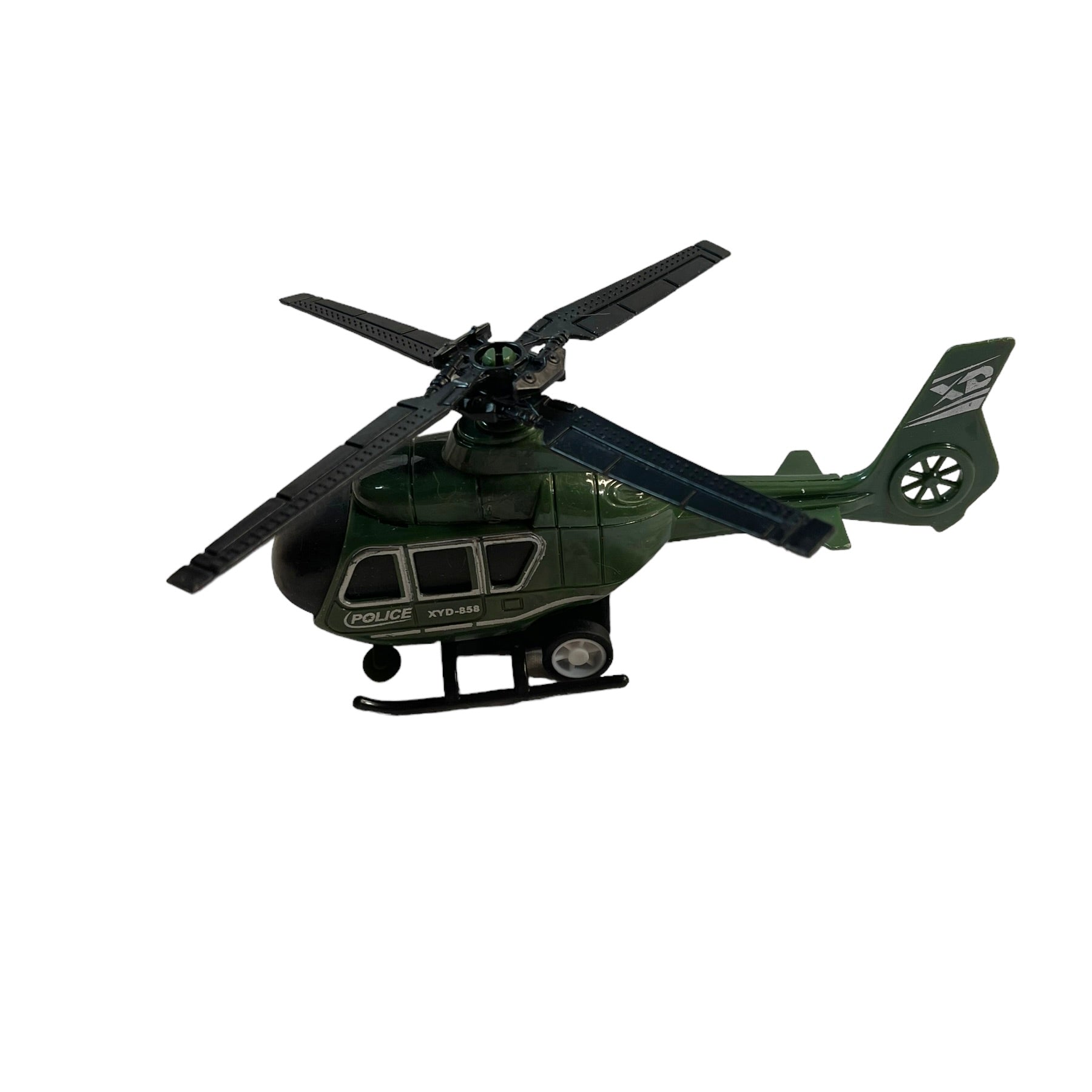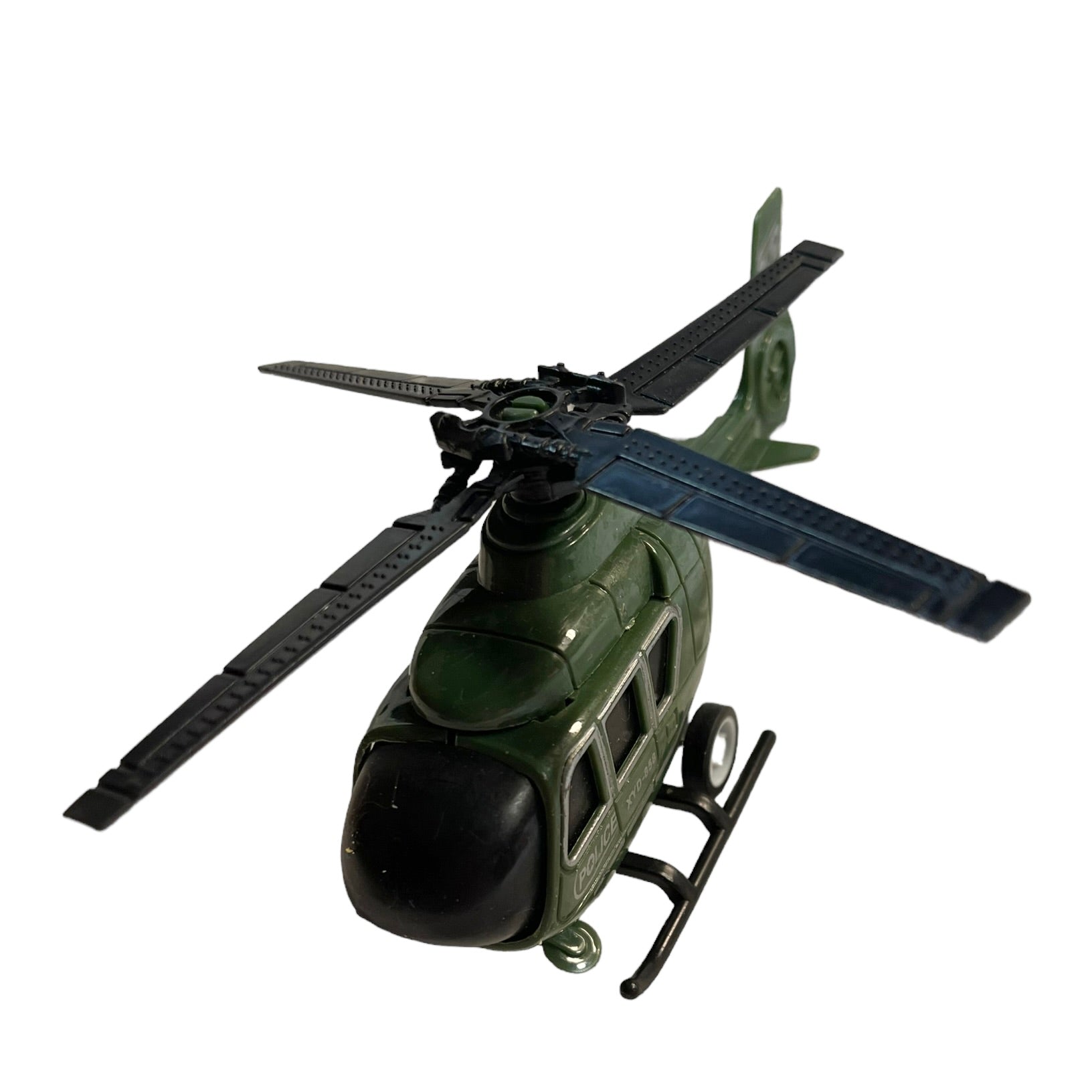XYD 458 Police Helicopter toy in good preowned condition. Army Green 5.5 "