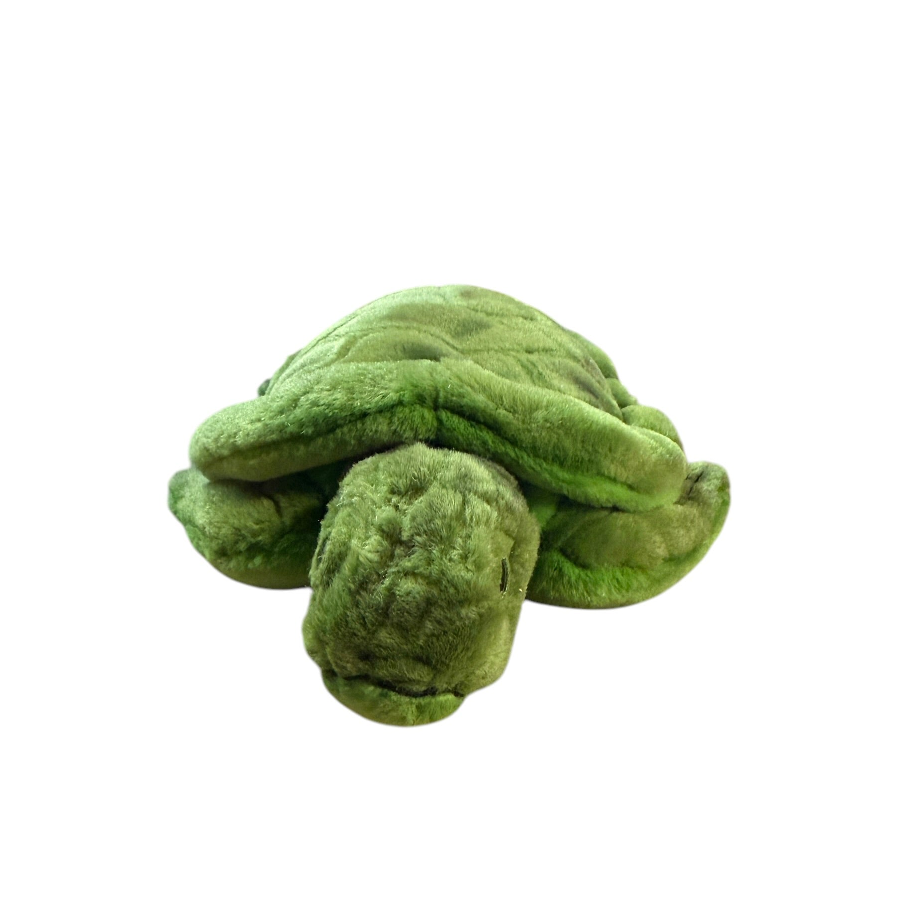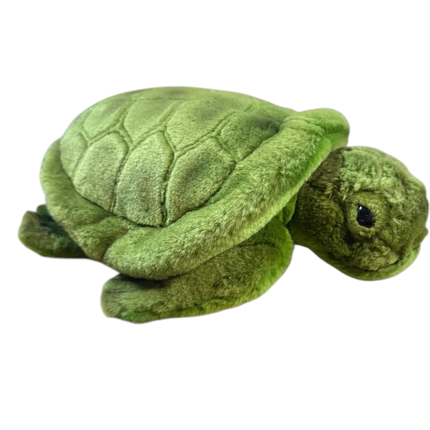 Realistic soft plush stuffed green sea turtle is deep green with black bead eyes. Ultra soft sculpted shell and fins contribute to its realistic look. A really special toy.