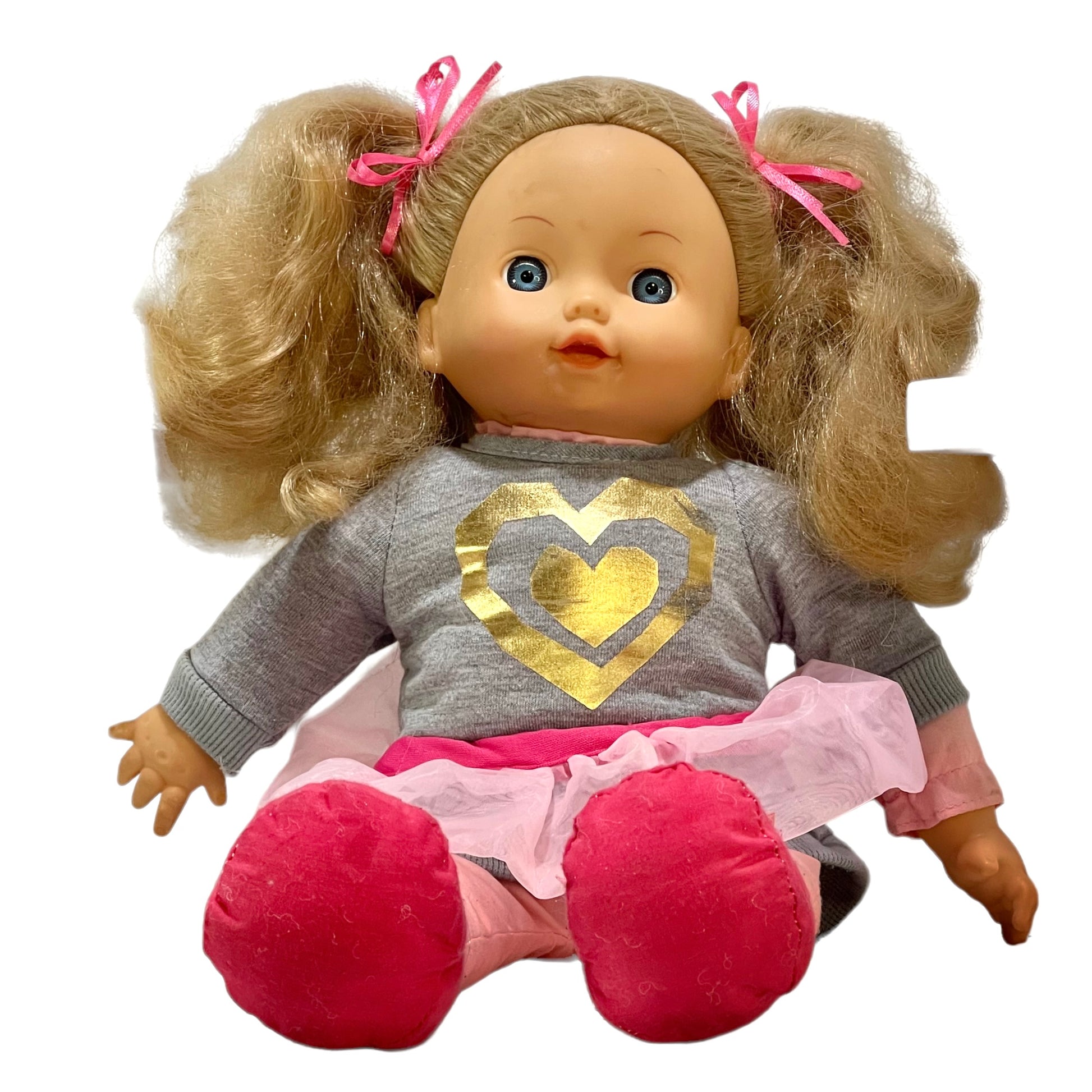 2014 City Toys soft bodied doll with vinyl head and hands. This lovely blue eyed doll has luxuriant honey coloured hair suitable for styling. A really pretty doll in great, played with condition