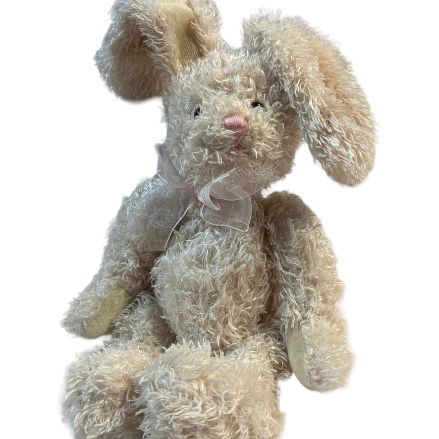 Gund 11" Shaggy Lop Eared Rabbit, Bead Eyes, Pink Satin Nose, Silky Ears and Paws. This sweet Bunny, Breezy, is super cuddly and made to be loved. Tulle Bow, worn tag, great preowned condition.