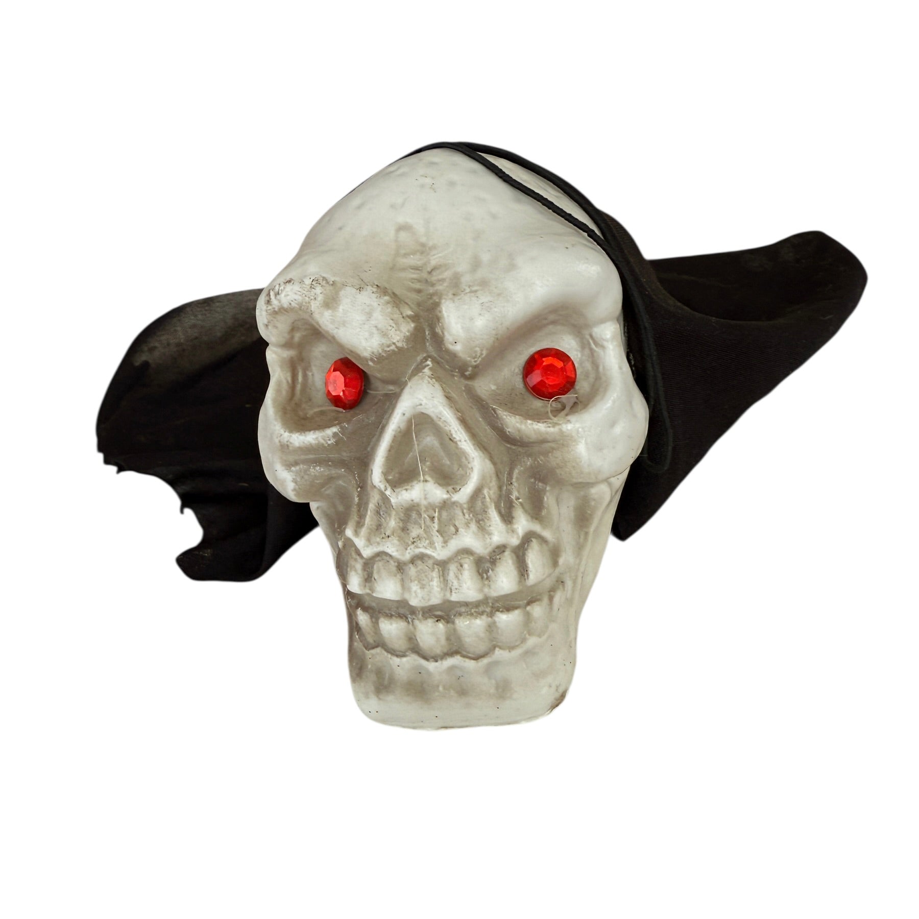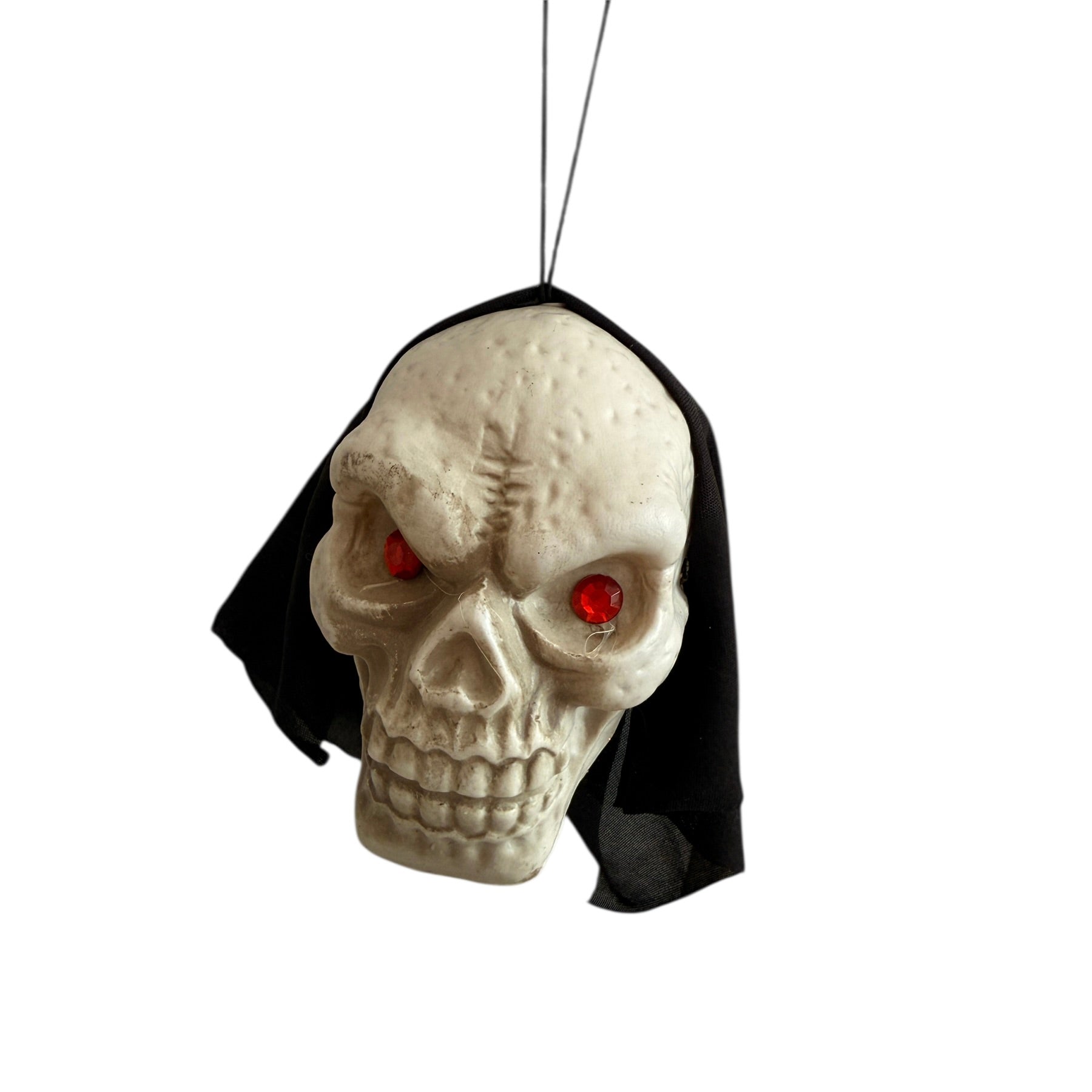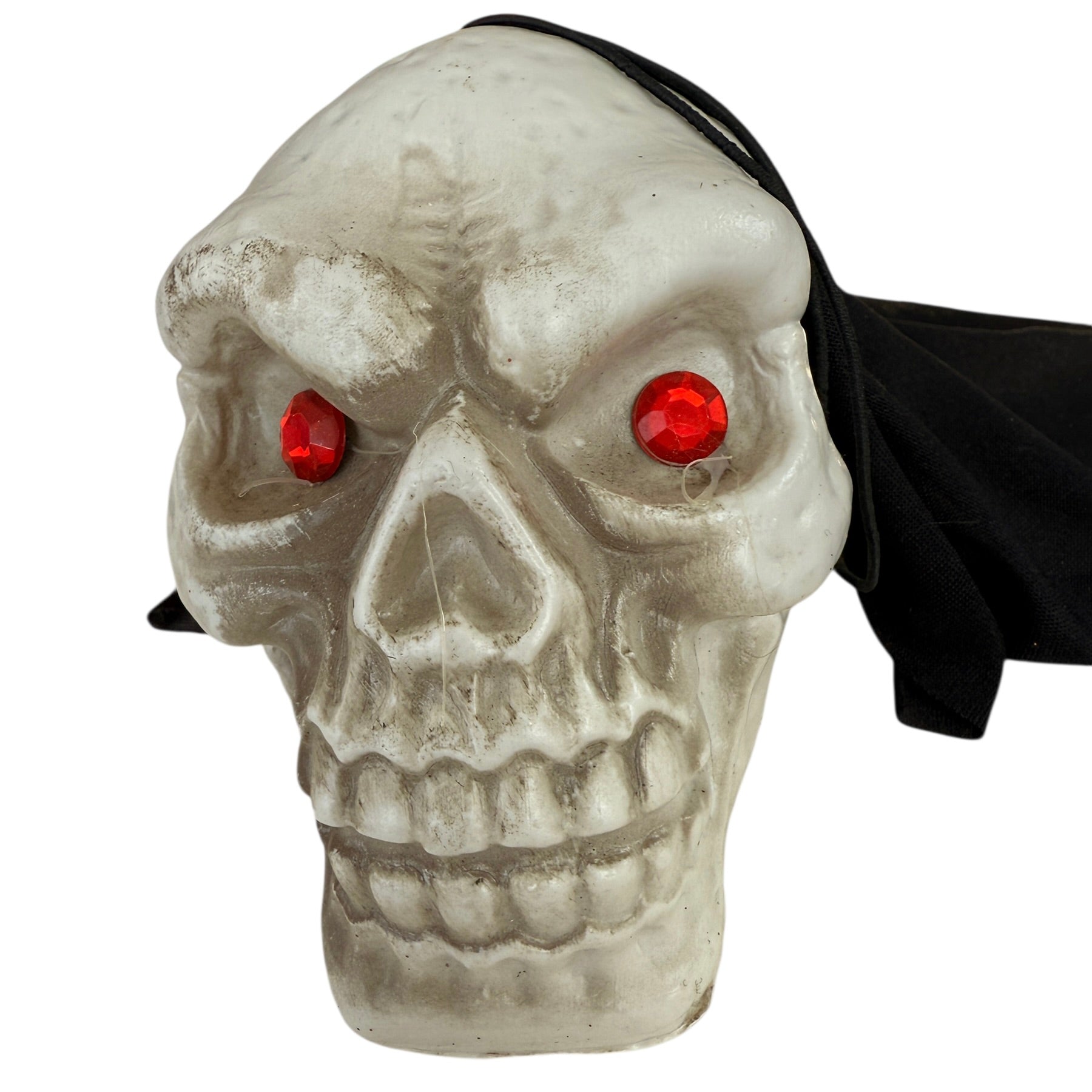 Jewel Eyed Skull with Black Filmy Head Cover & Hanging Loop in Good Preowned Condition