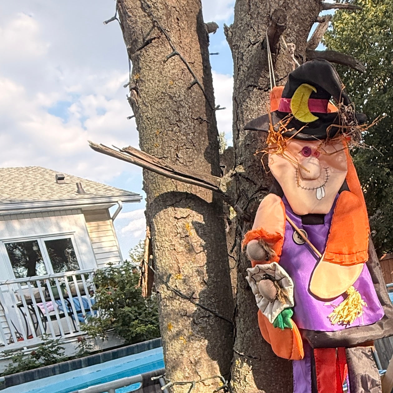 Such a cute Witch! Dandee Halloween Nylon Windsock, complete with Spider web and pumpkin embellishments, in good preowned condition