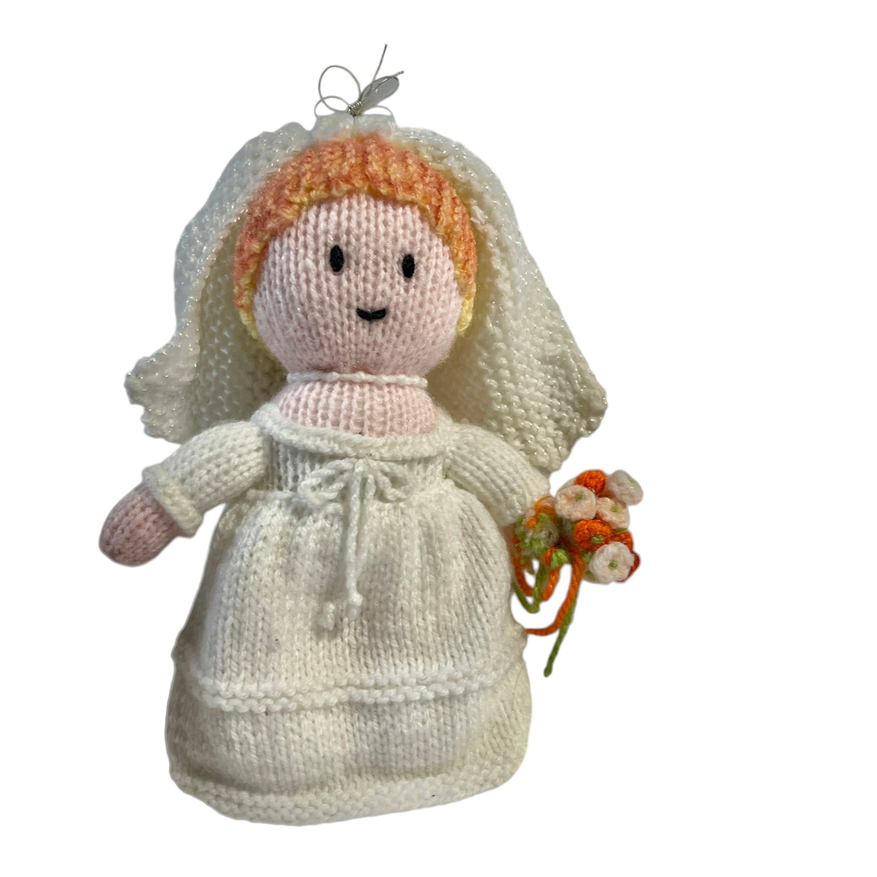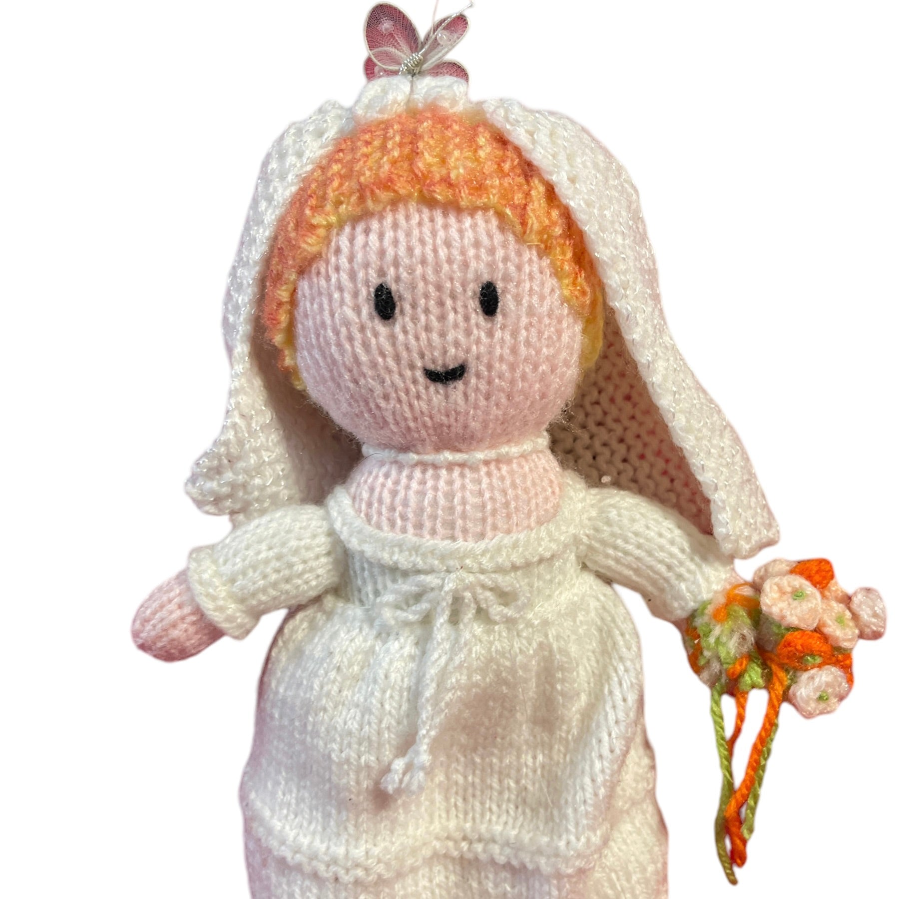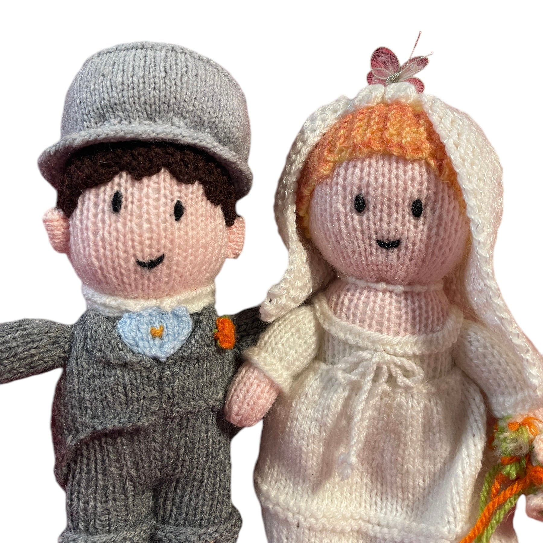 Hand Knit Bride & Groom 9-9.5" Dolls Designed by Jean Greenough , Beautifully Made and in excellent preowned condition.