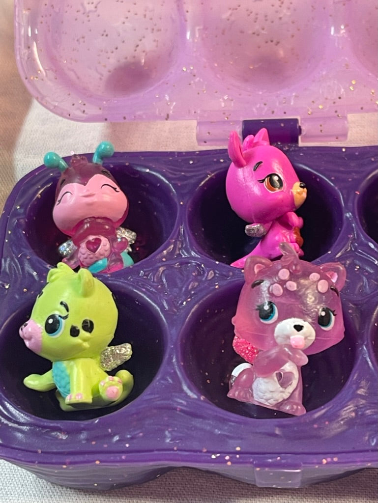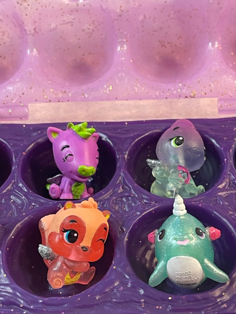 Fun Collection of amazing Hatchimal Toys in a sparkly purple plastic egg carton. Mixed lot of 12 Hatchimals in great preowned condition. So Fun!