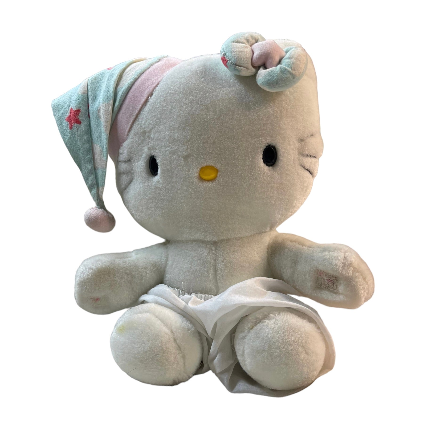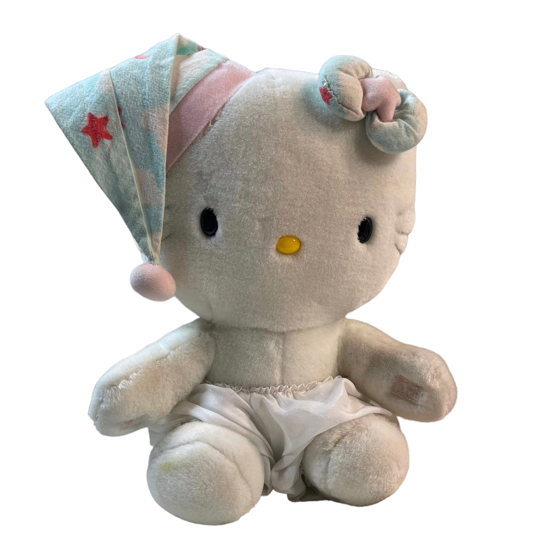 Hello Kitty Seated 12" Plush with Night Cap and Matching Bow in Good Preowned Condition.