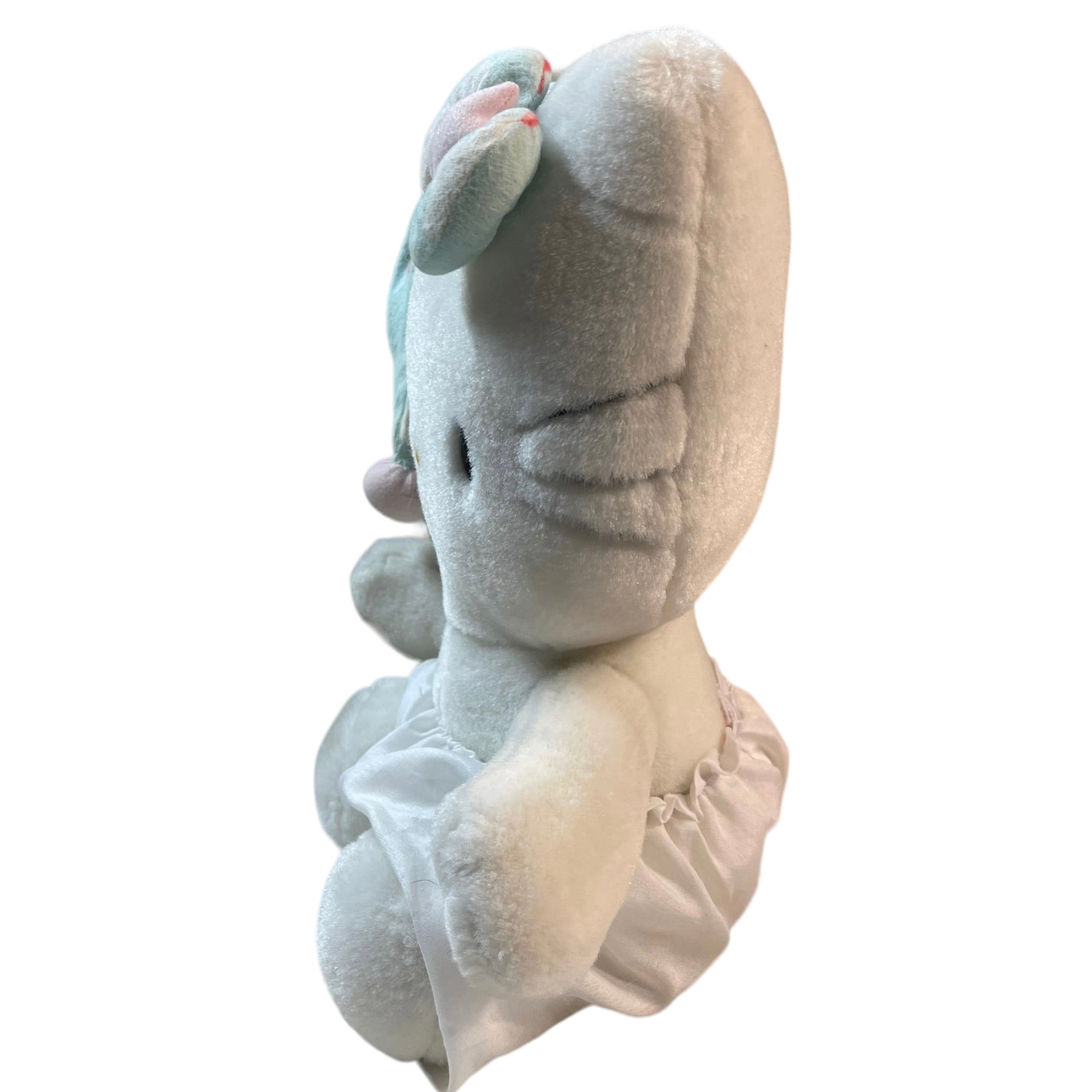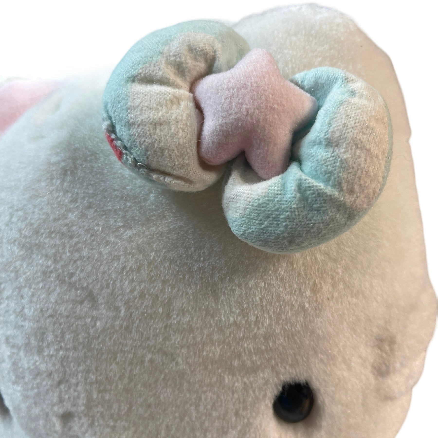 Seated 12" Hello Kitty Pastel Plush in aqua nightcap and bow, both with star motif. A sweet plush in good preowned condition.