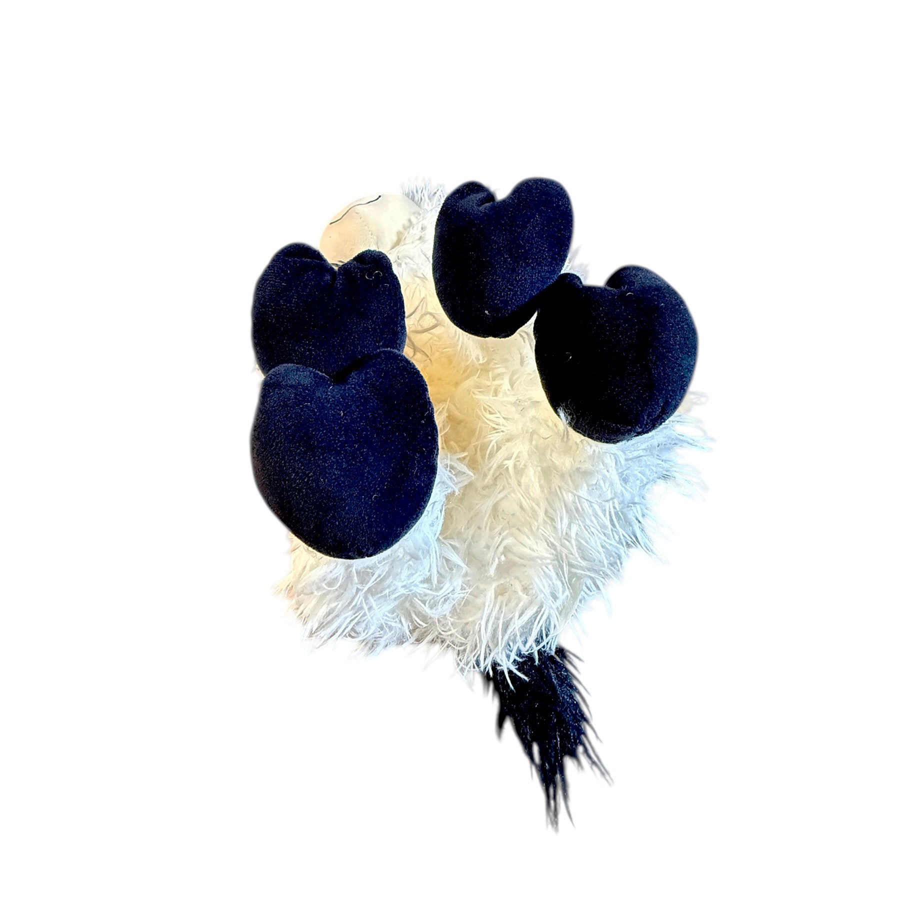 Delightfully shaggy, with a black & white coat, this sweet Highland cow is just right for hugging , make believe, or display, and is in very good preowned condition.