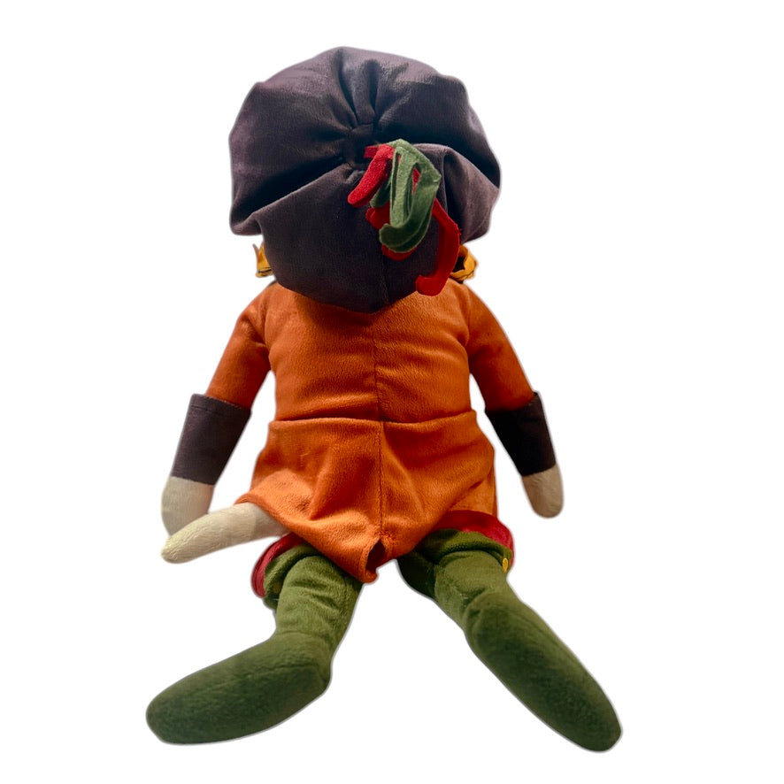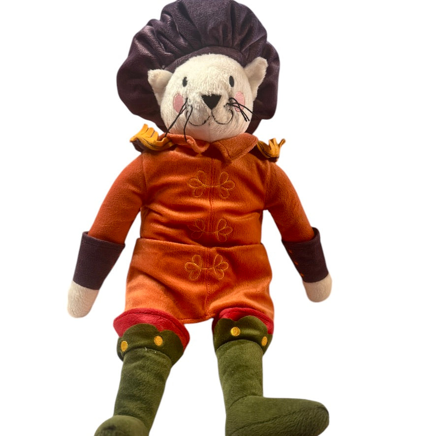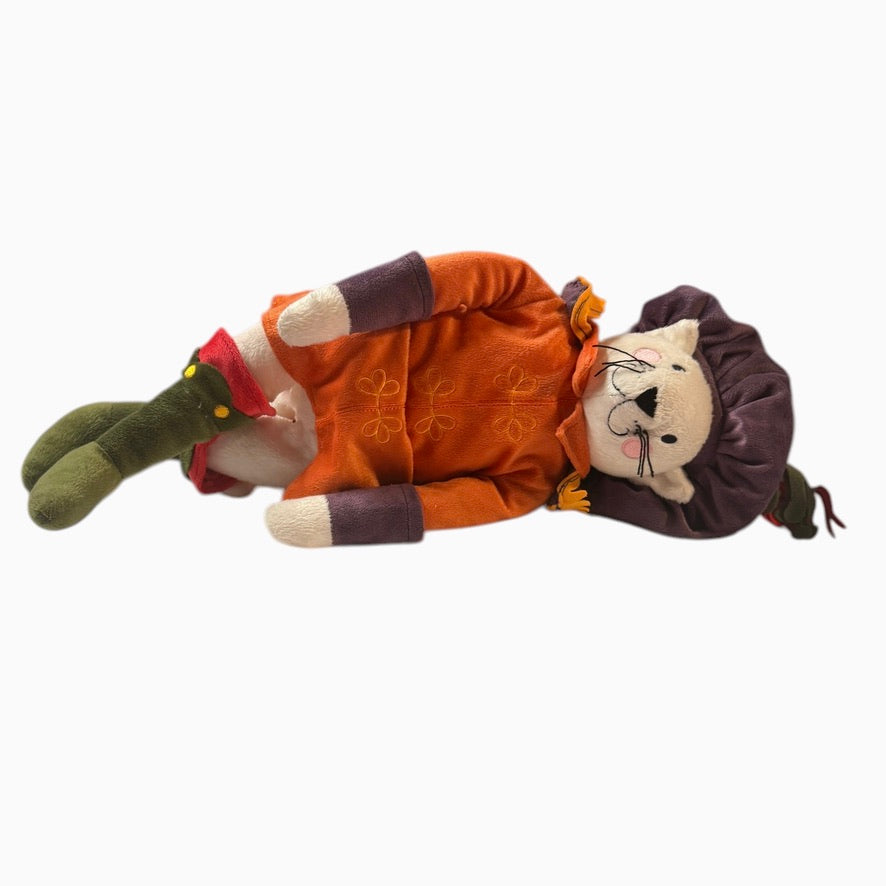 Make the FairyTale come to life with this 18" Puss 'n Boots White Cat in Royal Garb. This Retired Plush by Ikea, Has a lovely Orange Velvety Tunic with a Fabulous Purple Hat & Deep Green Boots Boots! In Excellent Preowned Condition. Tags removed.