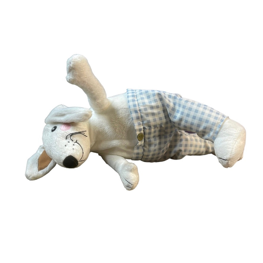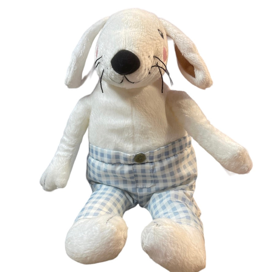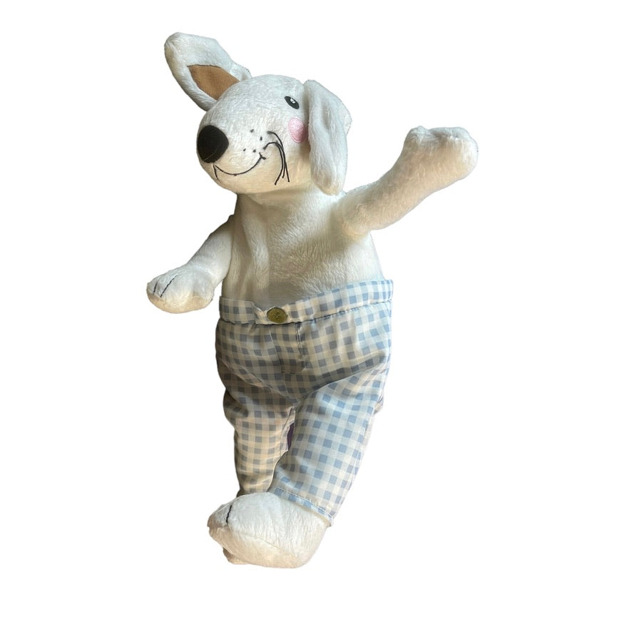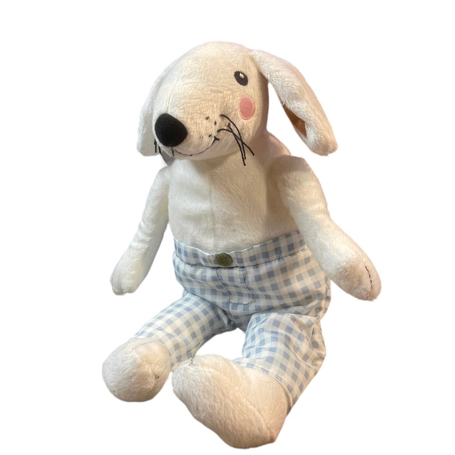 Ultra Squishy Ikea white rabbit stuffed animal plush with cute checkered nylon pants and a sweet embroidered face. Excellent Preowned condition.