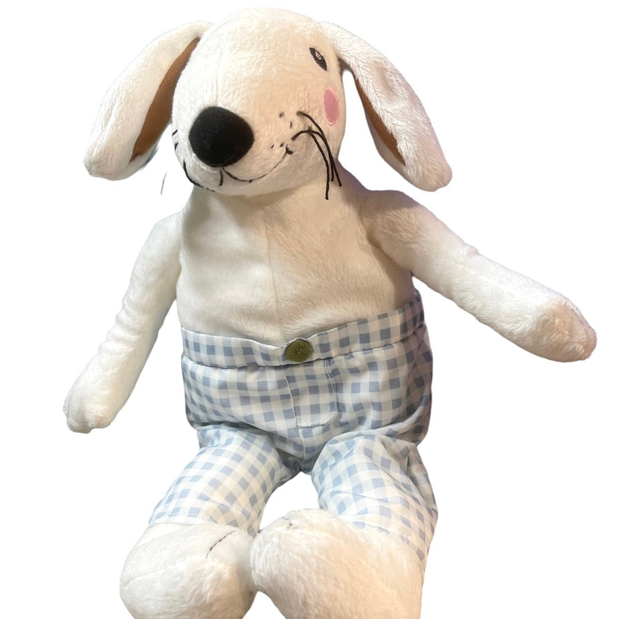 Ikea Skogshare White Rabbit Plush Blue Checked Pants, Long Black Whiskerss