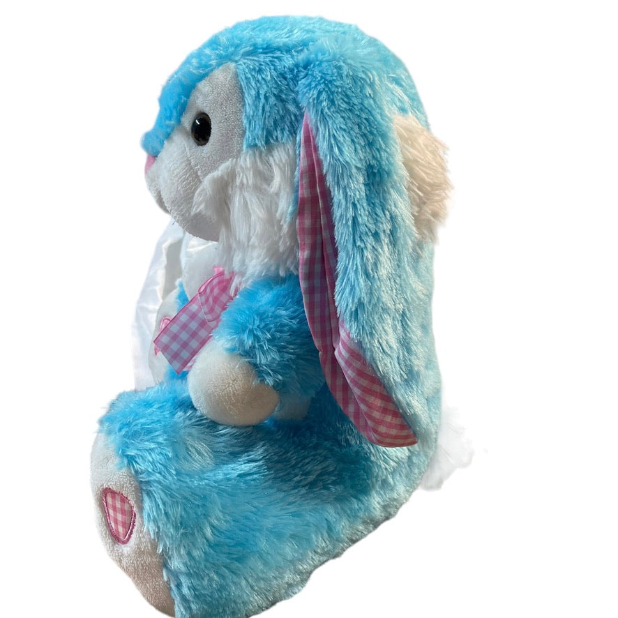 Irresistible 15" Lop Eared Blue/White Bunny with Pink Gingham Bow & Foot Pads EUC No Tags.