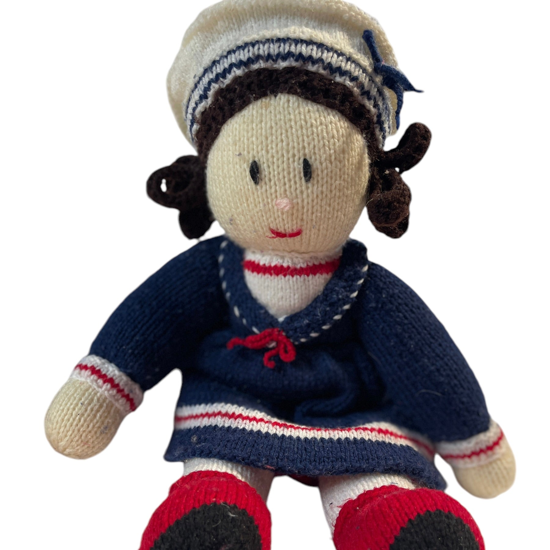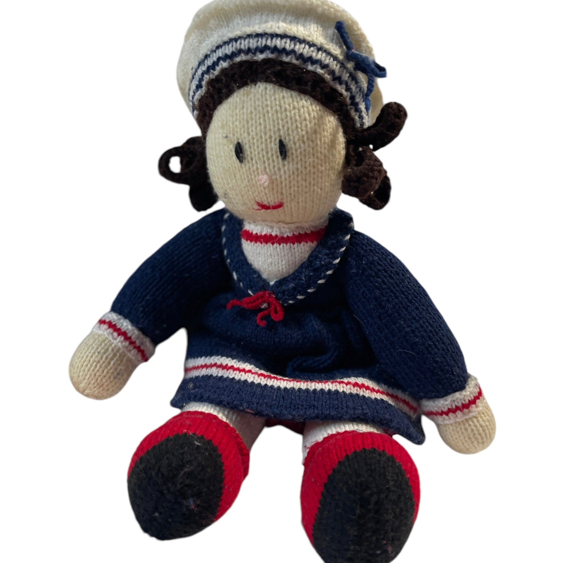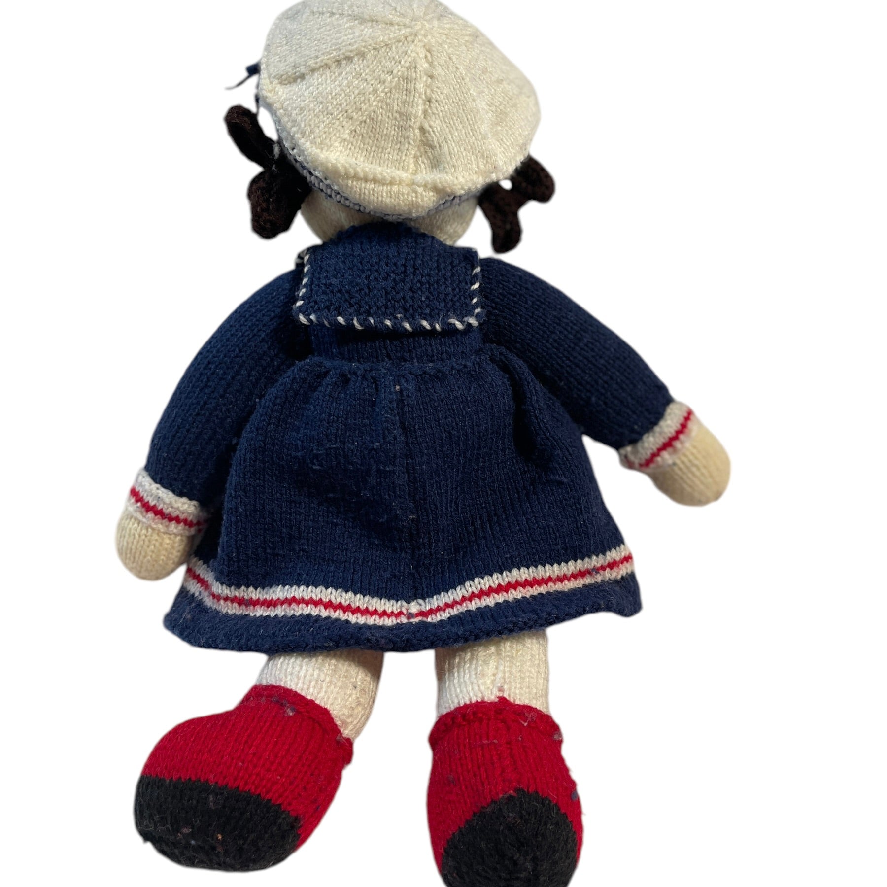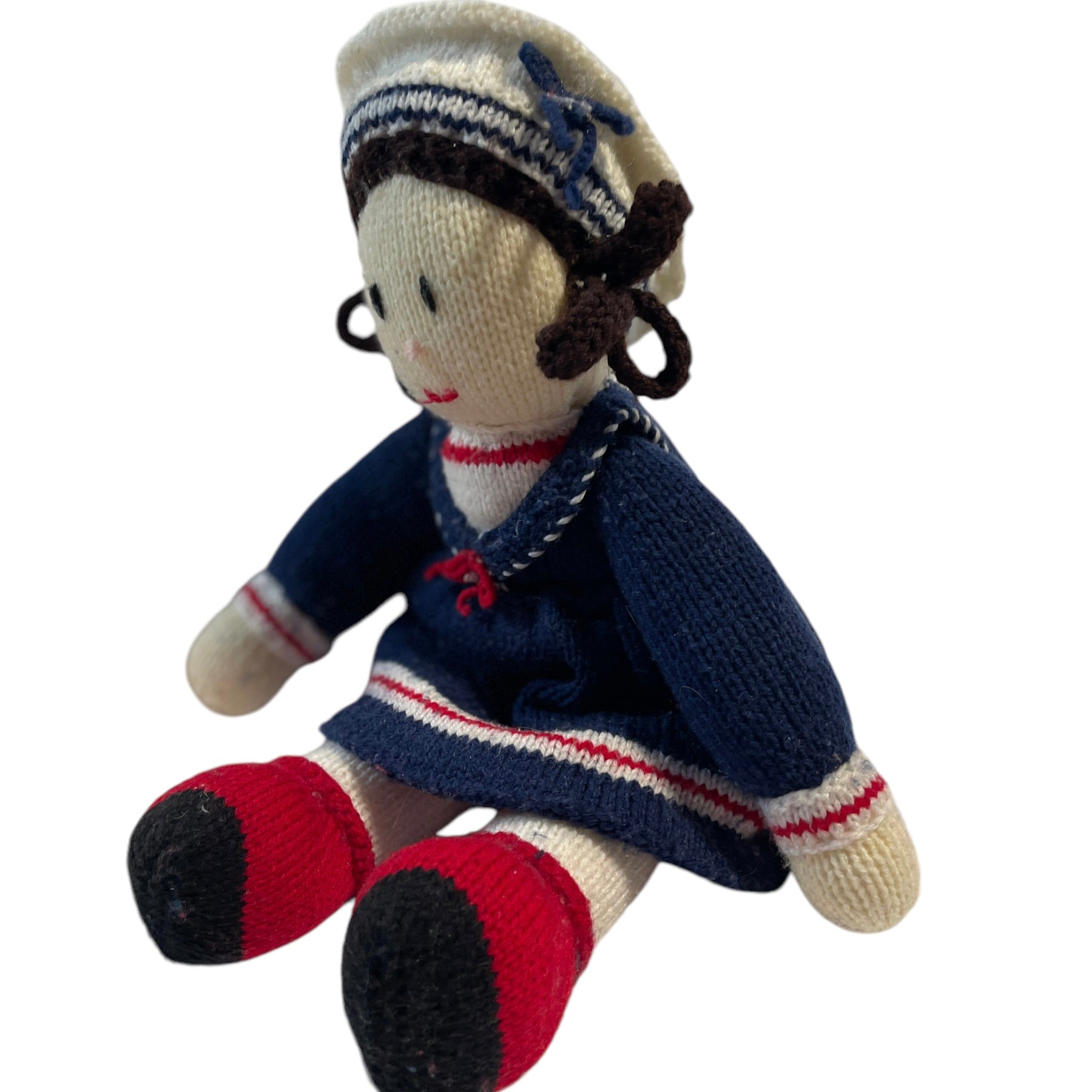 Jean Greenough Designs Vintage Hand Knit/ Crocheted 17" Sailor Girl Doll Preloved in Good Condition