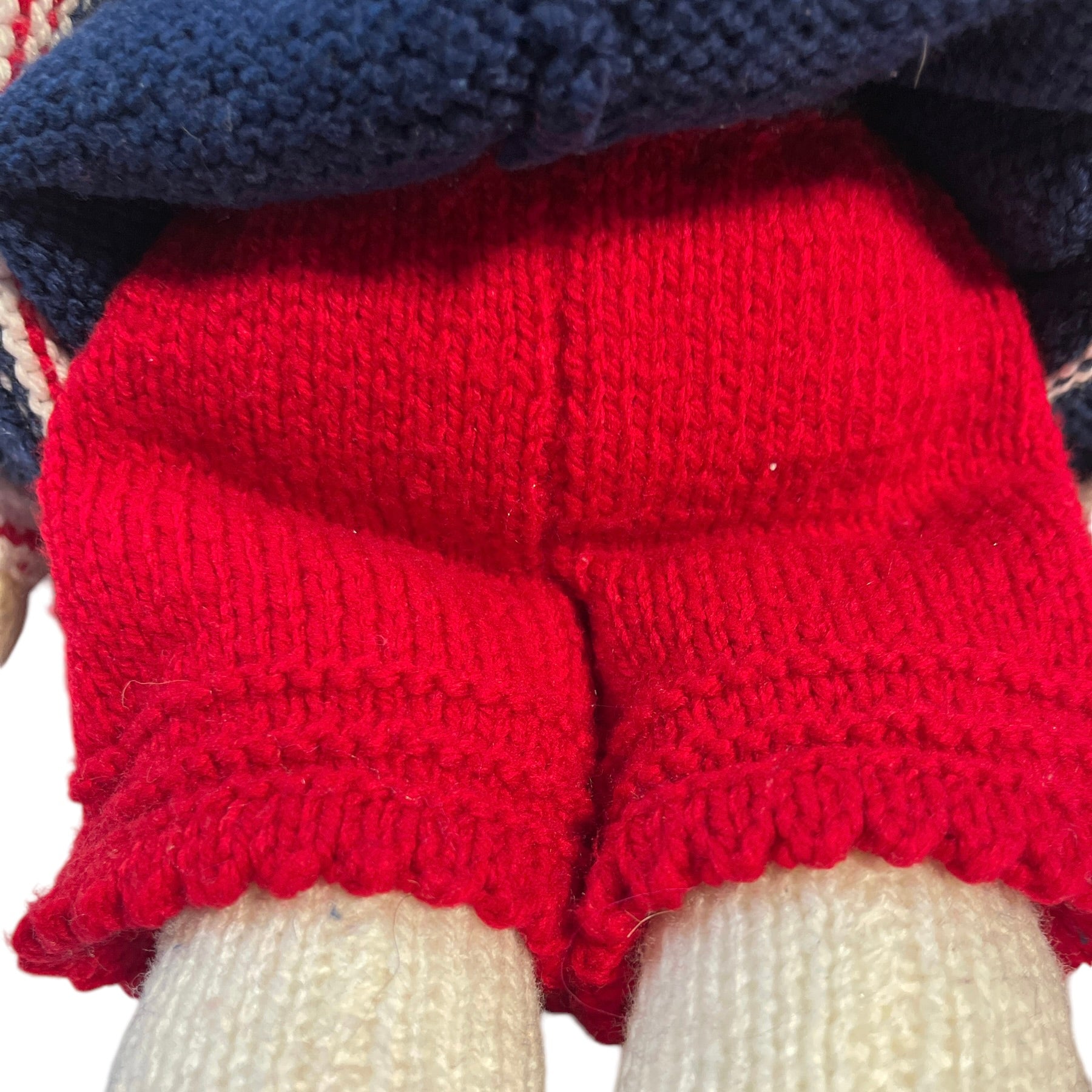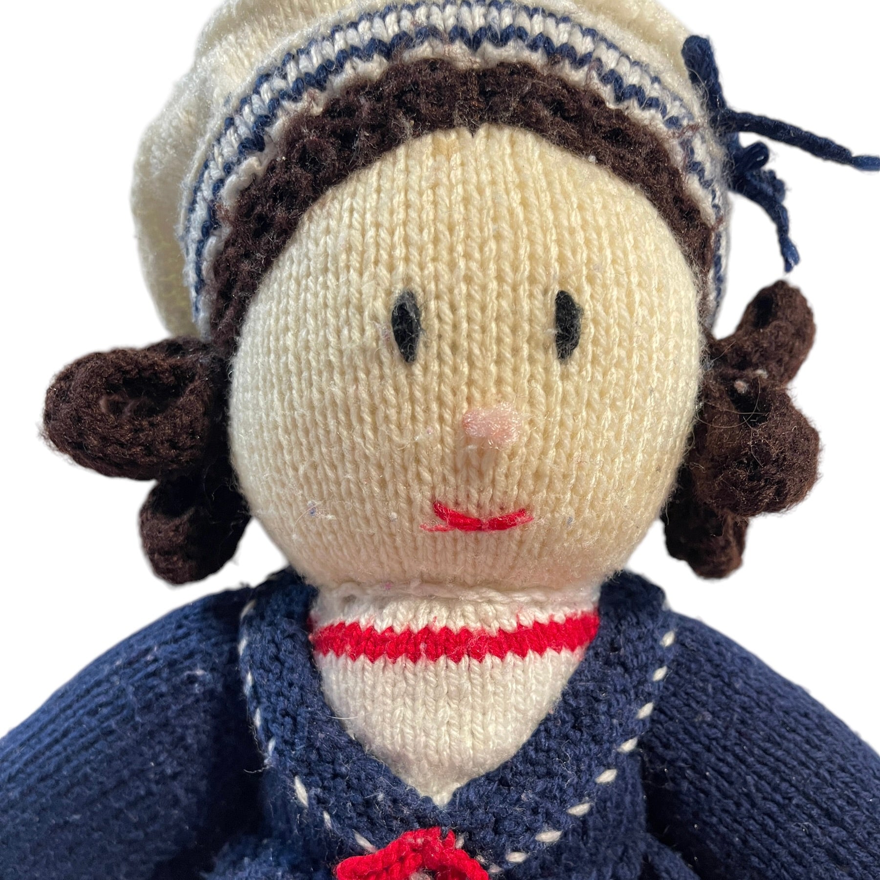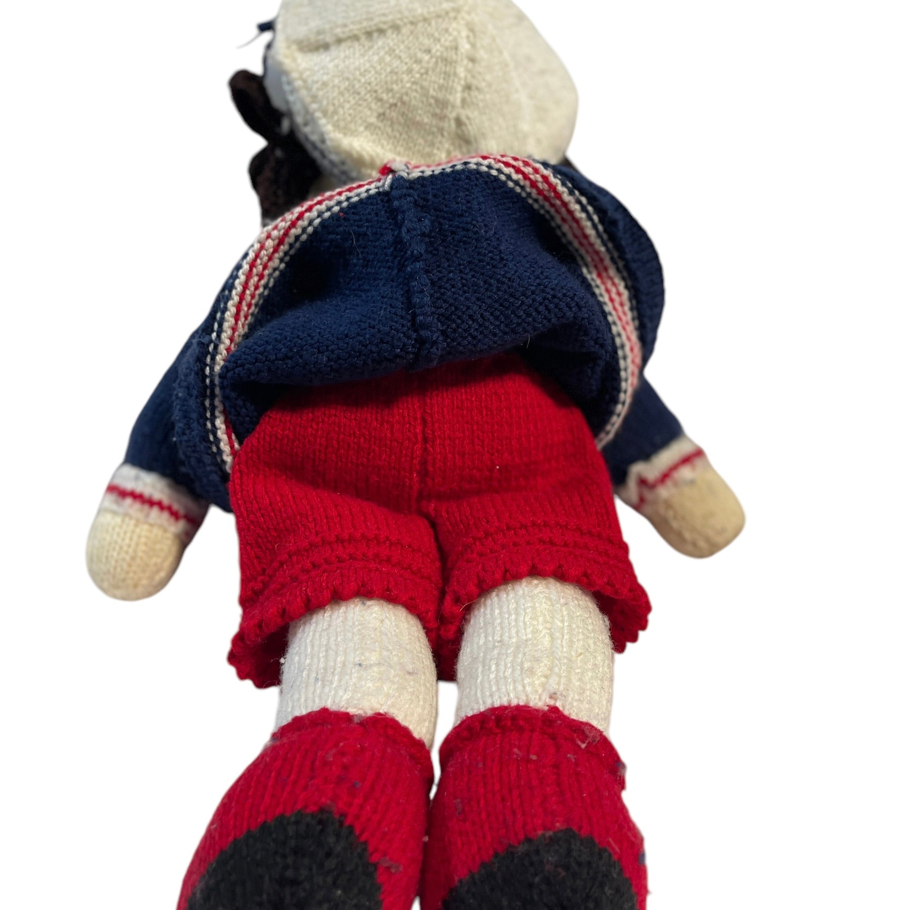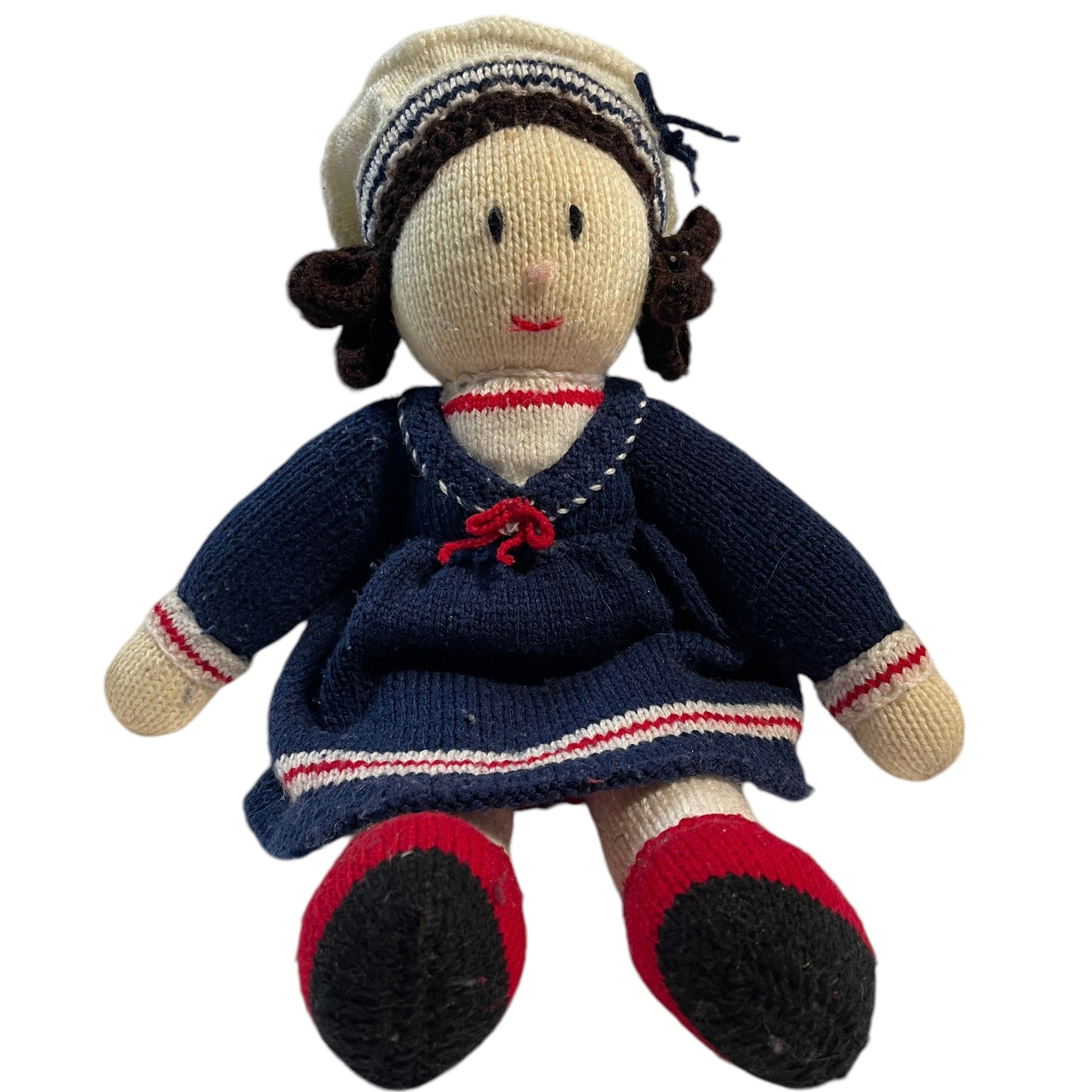 Jean Greenough Designs Vintage Hand Knit/ Crocheted 17" Sailor Girl Doll Preloved in Good Condition