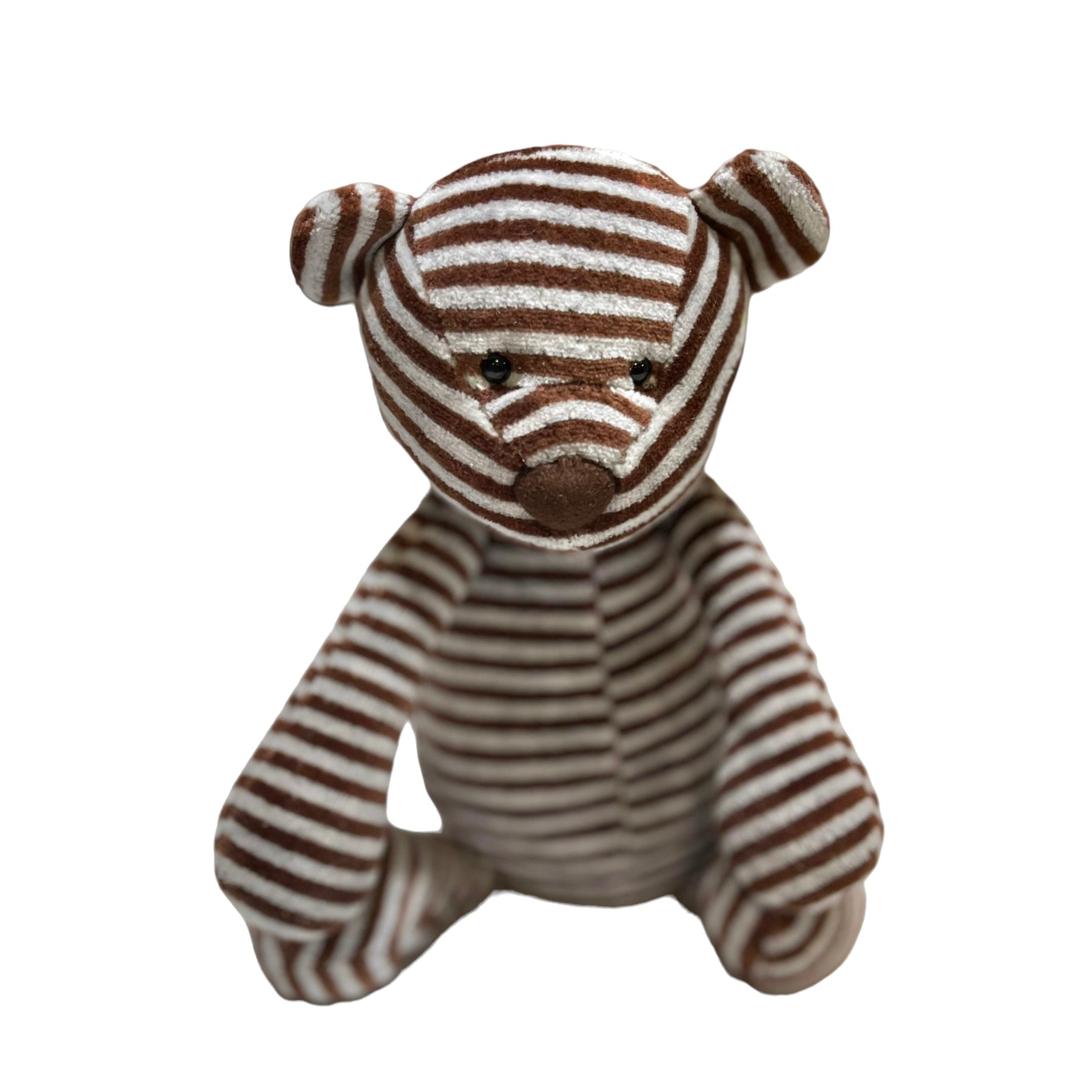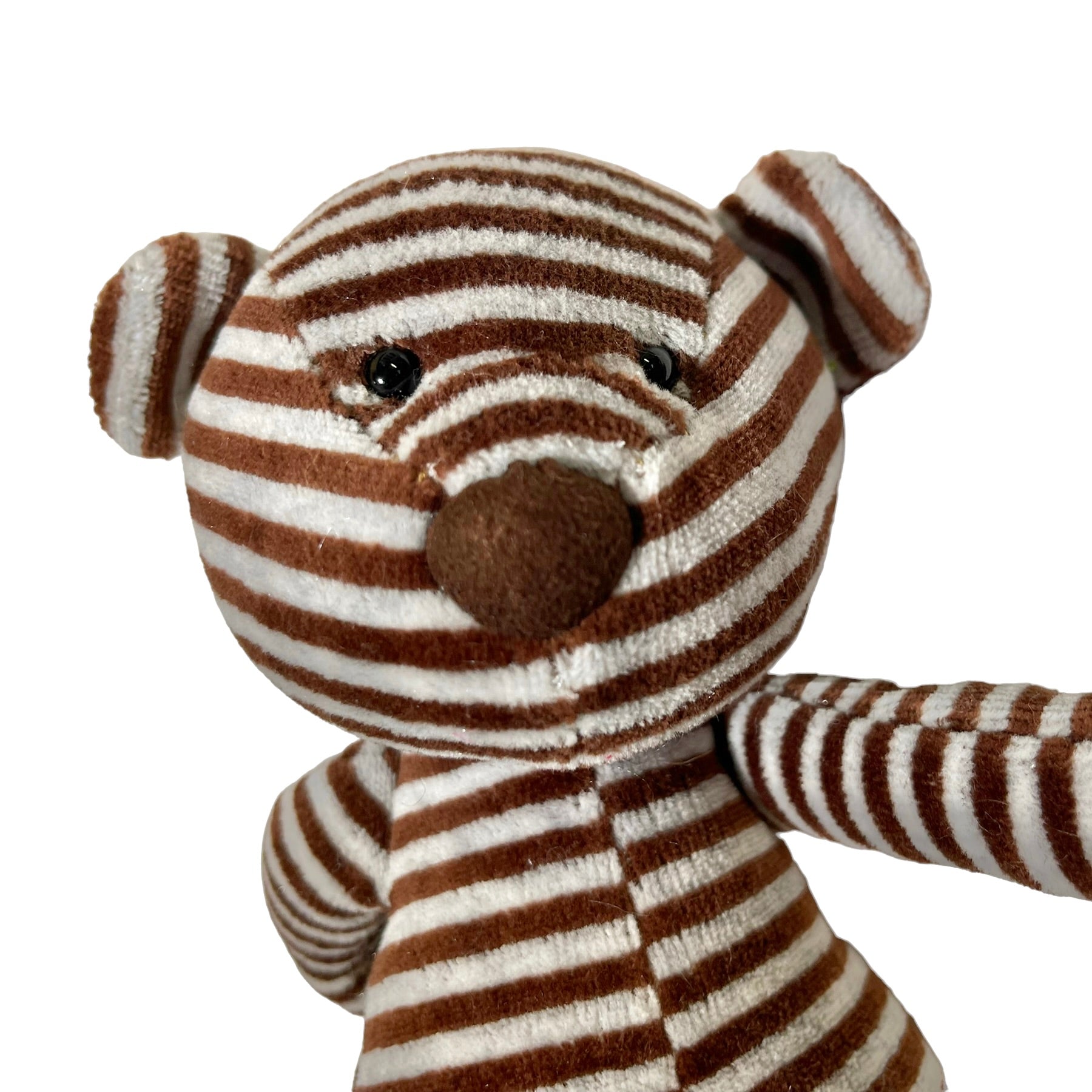 Hard to Find JellyCat Striped Plush BonBon Bear 10" Blue & Brown Stripe, Missing Tag. A soft, sweet little bear for your JellyCat collection!