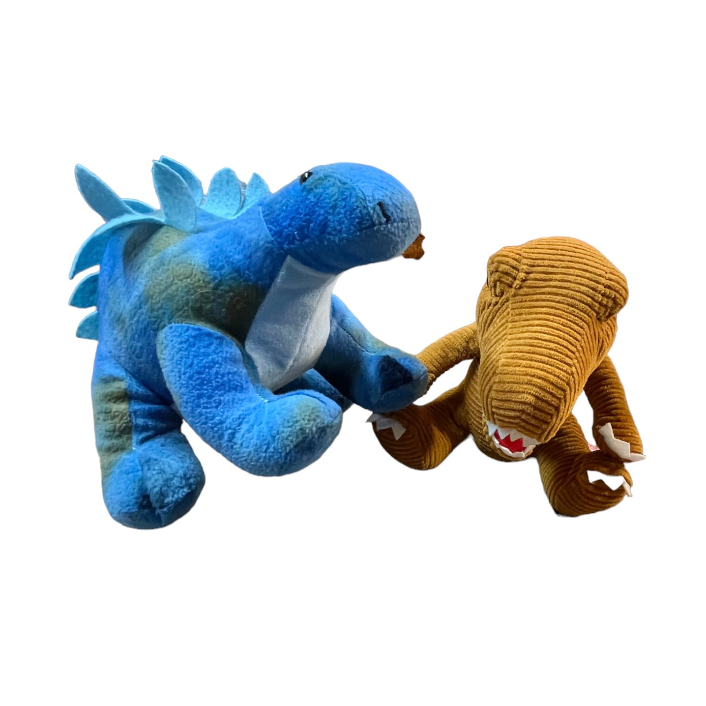 Kid's Connect 14" Blue Stegosaurus AND his Best Friend,9" Corduroy Plush Naturally Kids Soft Toy T-Rex in GUC