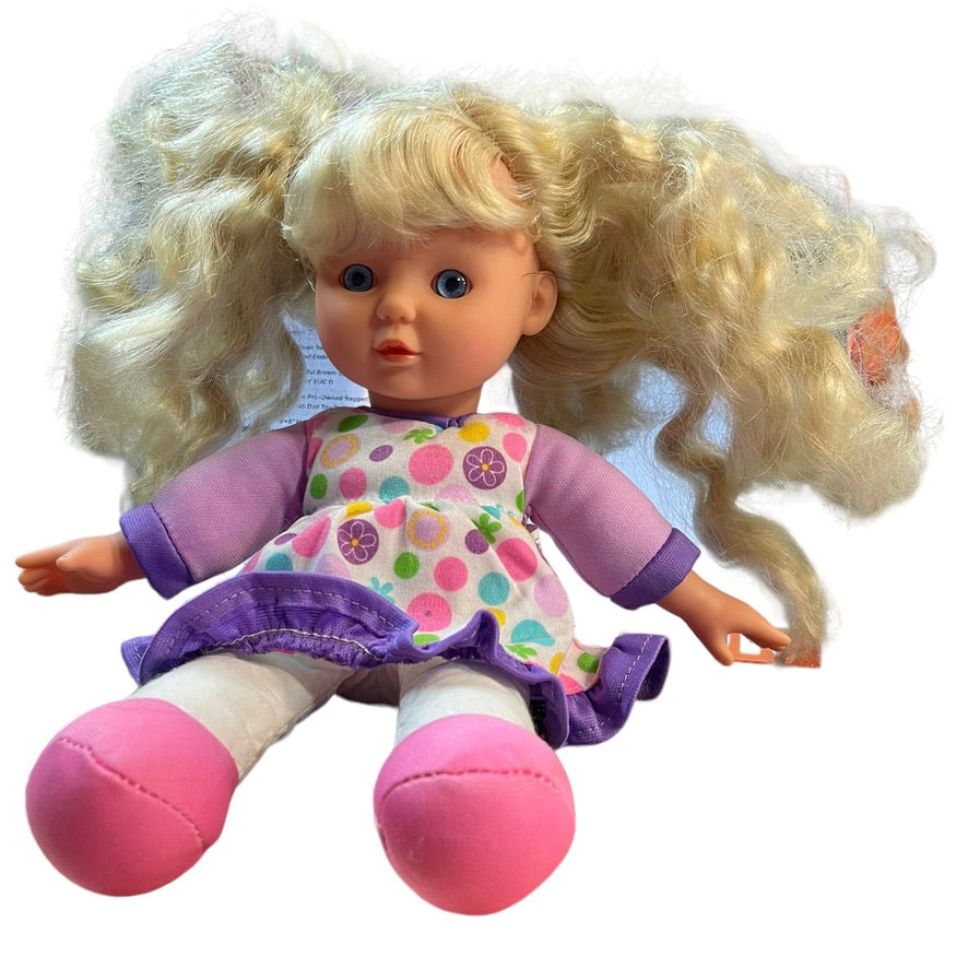 Kids Connection 12" Soft Bodied Long Blond Hair/Blue Eyed Doll with Fabric Dress & Shoes.