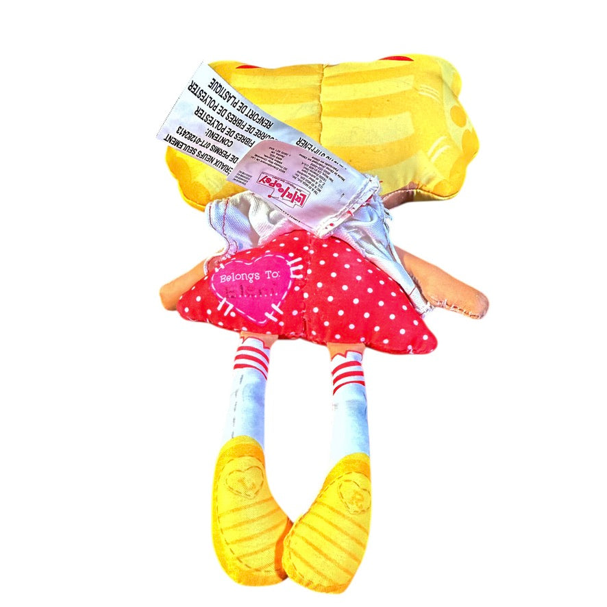 Absolutely sweet, this LalalooPsY Doll is a sweet addition to any collection or playroom. Brightly coloured in red, white and yellow, this charming girl is sure to be a very welcome gift. Good preowned condition!