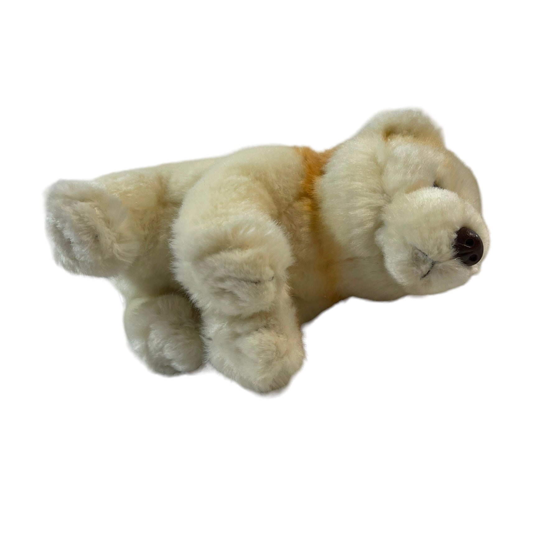 1986 World Wildlife Federation 9" Living Planet White & Caramel Polar Bear Plush, Black Bead Eyes, Plastic Nose. A lovely stufed animal toy.