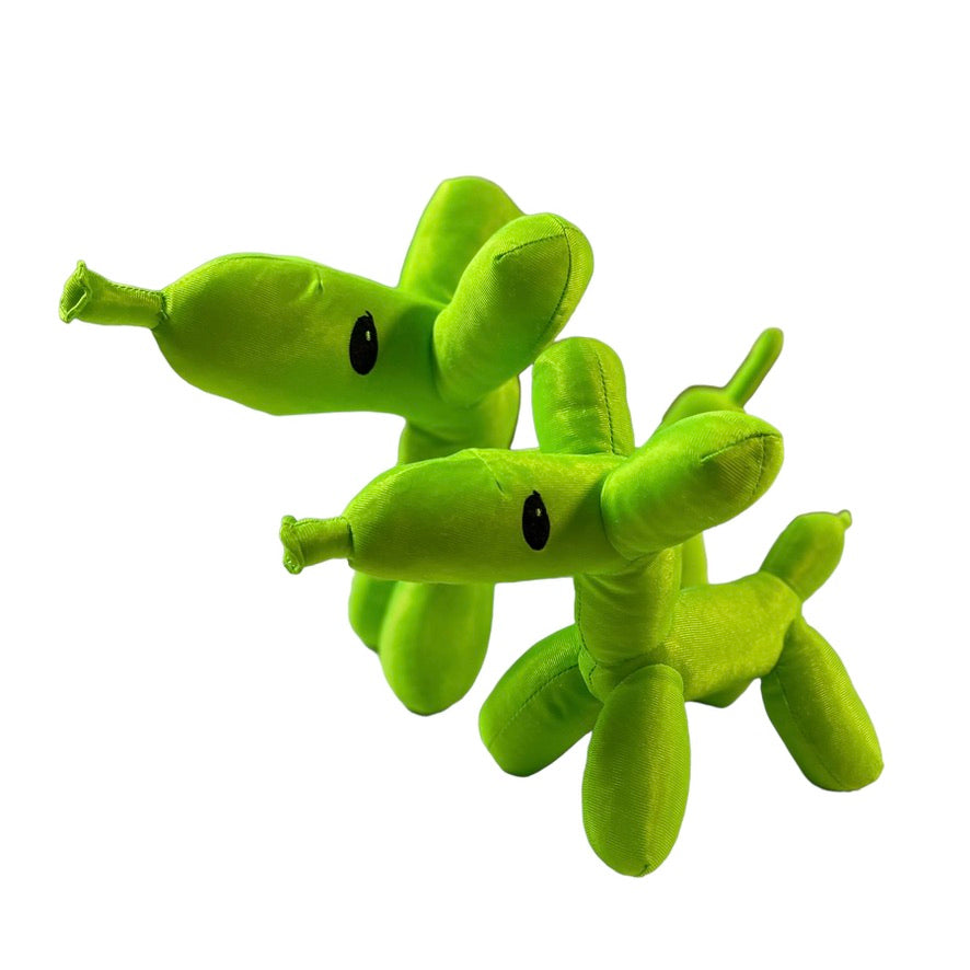 Balloon Animal Dogs, Lot of 2 Nylon NANCO Neon Green Plush Toys in EUC