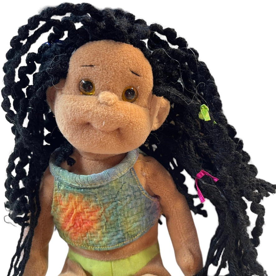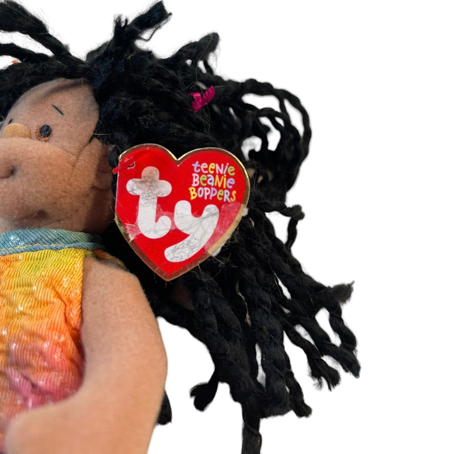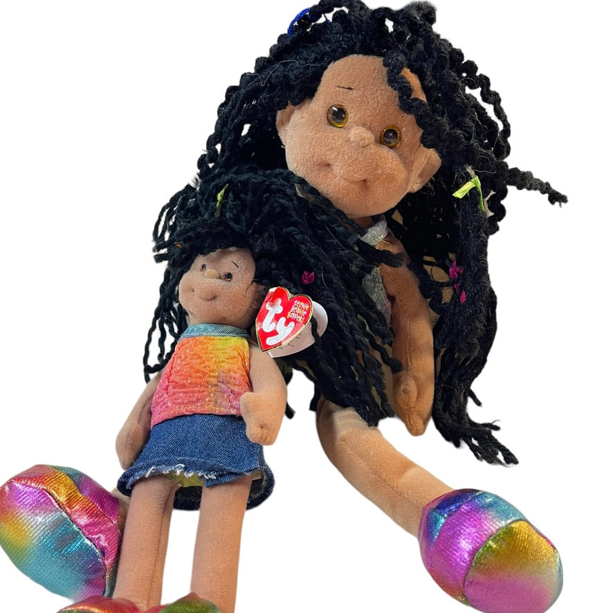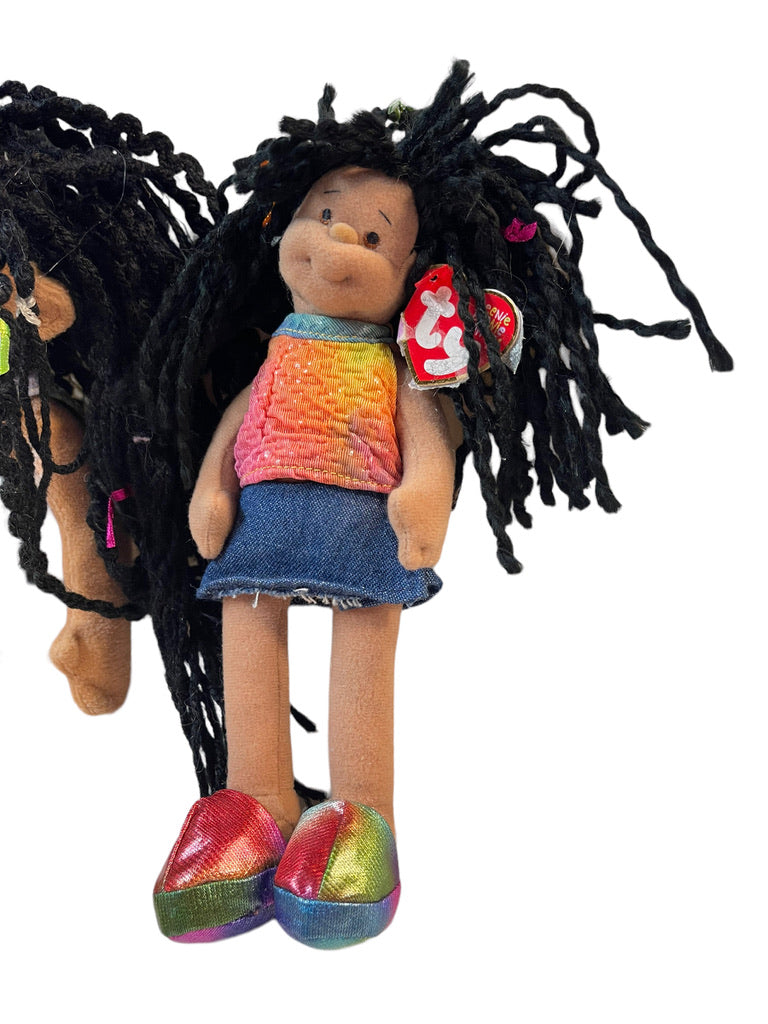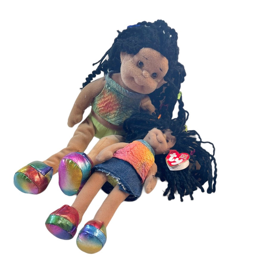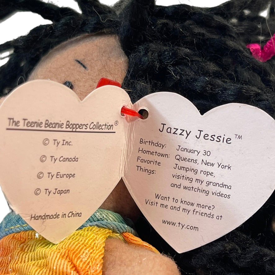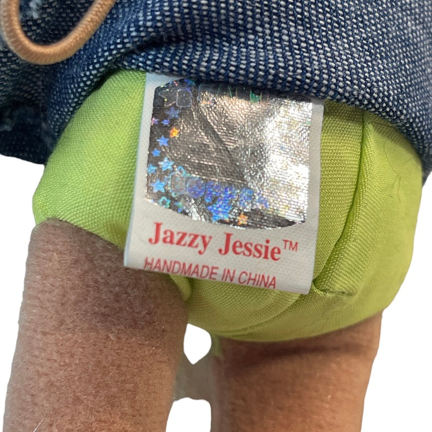 Jazzy Jessie TY Beanie Boppers , 13.5” & 9” Vintage Lot of 2, Long Black Wool Hair & Sparkly Slip-On Shoes