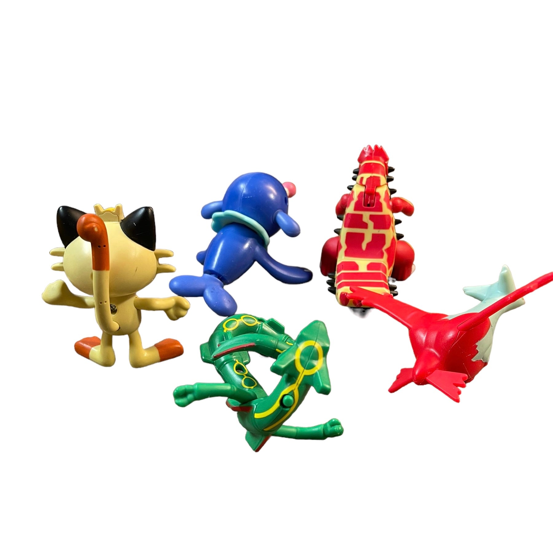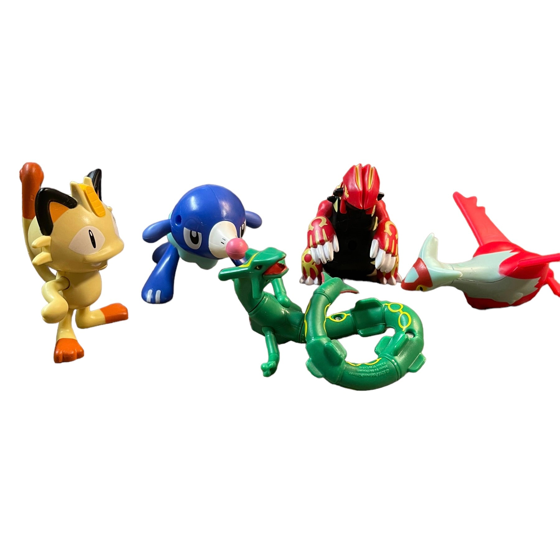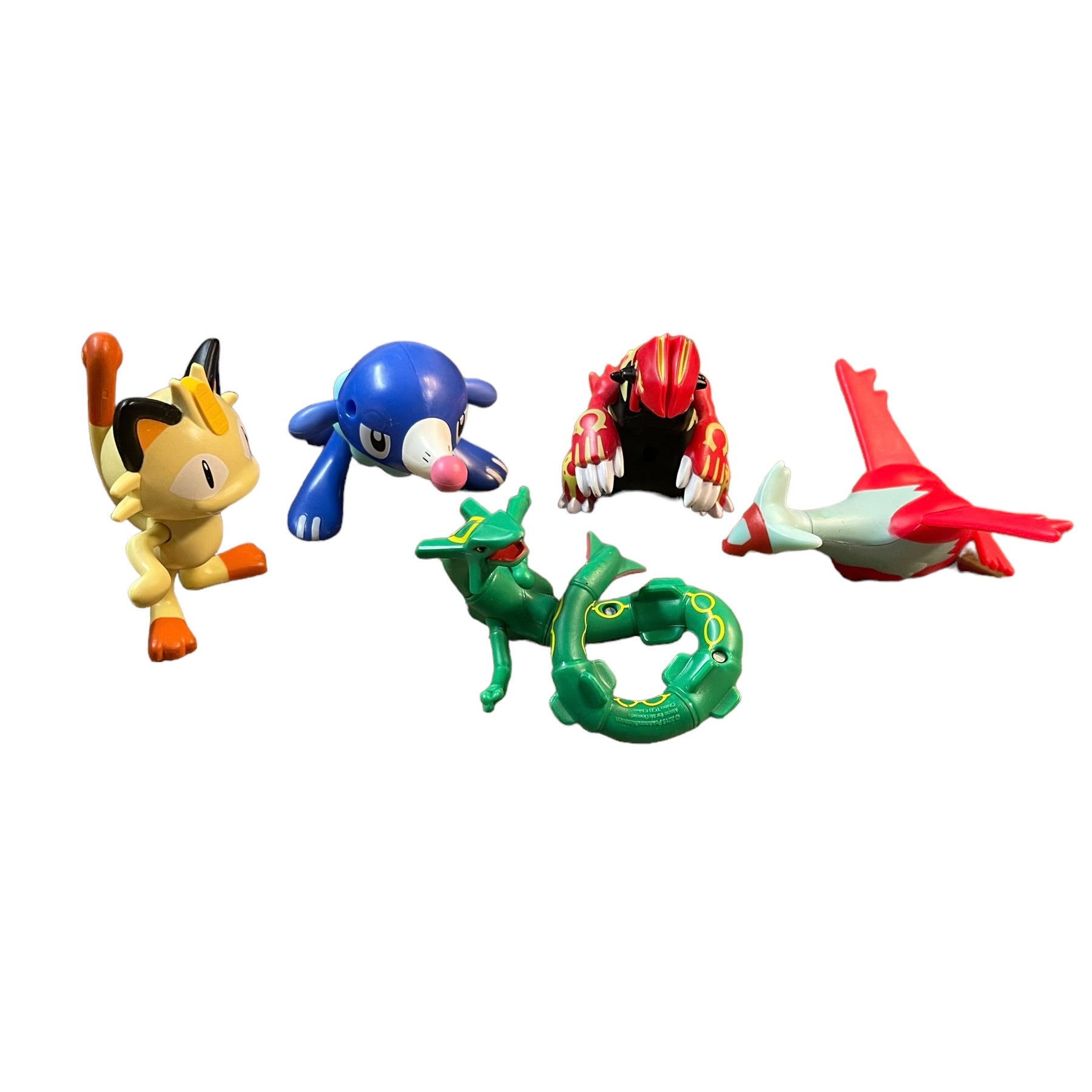 Pokemon Lot includes Meowth, Popplio Water Gun, Raquaza, Latias, and Ruby Alpha Sapphire, all in good preowned condition.